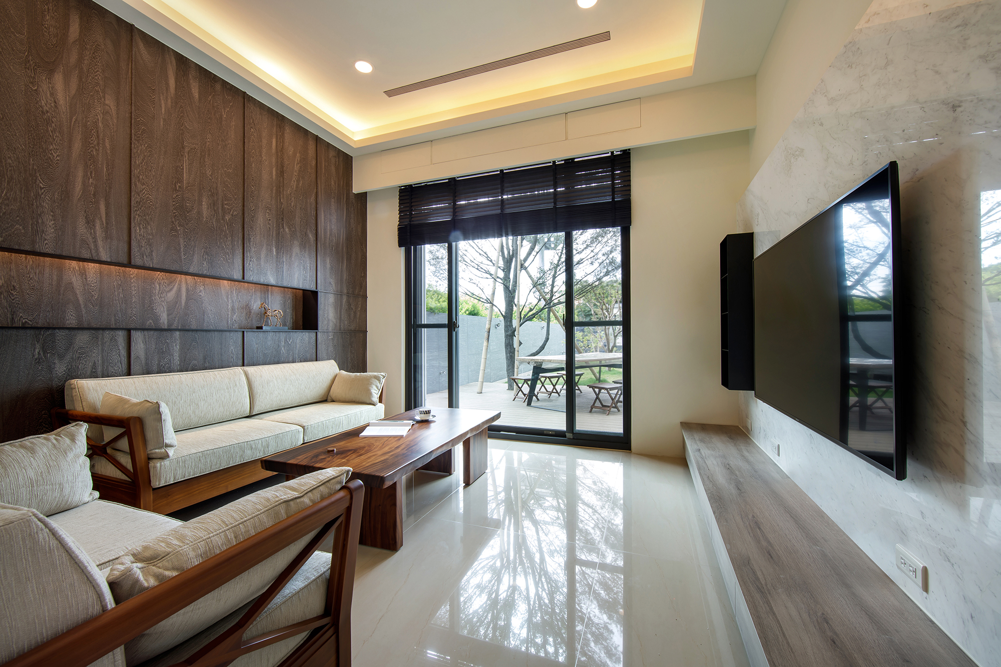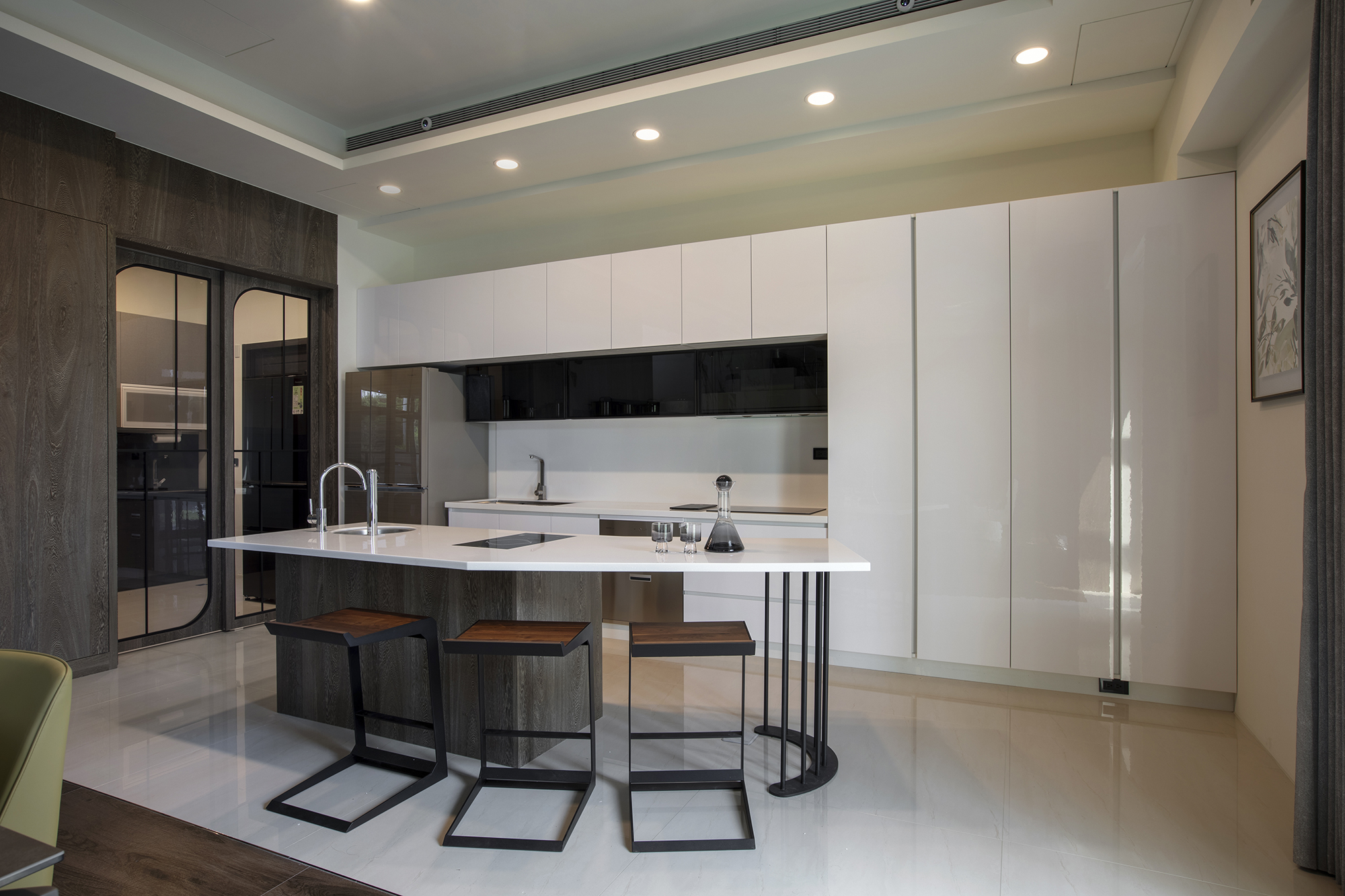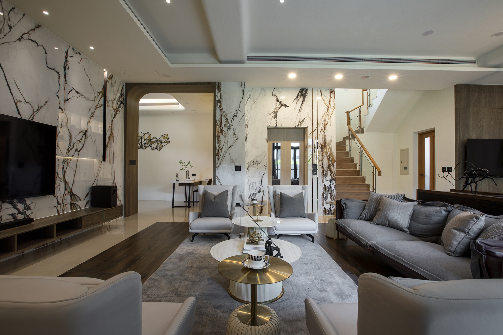 This residential house planning project is designed to create a harmonious and inviting living space tailored to the unique preferences and lifestyles of each family member. The team meticulously arranged the layout to optimize functionality while ensuring a seamless flow throughout the home. To enhance the overall aesthetic and comfort, carefully selected furniture was incorporated, fostering an environment that promotes relaxation and practicality. Notably, the inclusion of stylish storage and display cabinets not only maximizes organization but also contributes to the home's aesthetic appeal by maintaining a clean and tidy atmosphere. Furthermore, the strategic installation of elevators on every floor signifies a commitment to accessibility and convenience, providing homeowners with an exceptional barrier-free living experience. Ultimately, this project transforms the house into a comfortable sanctuary, balancing form and function while elevating the everyday lives of its residents. Upon entering the inviting public area on the first floor, one is immediately struck by the harmonious integration of the living room and dining room, which are expertly designed in an open floor plan. This thoughtfully executed layout not only bathes the space in natural light, but it also facilitates smoother circulation throughout the area. Moreover, it reinforces the connection between different functional zones, thereby fostering increased interaction and deeper emotional bonds among family members. The living room, distinguished by its elegant wooden flooring, effectively delineates the area while simultaneously alleviating safety concerns associated with height variations in the flooring design. Furthermore, the kitchen is cleverly enclosed by sleek glass sliding doors, serving to isolate cooking fumes and maintain a fresh ambiance within the home.