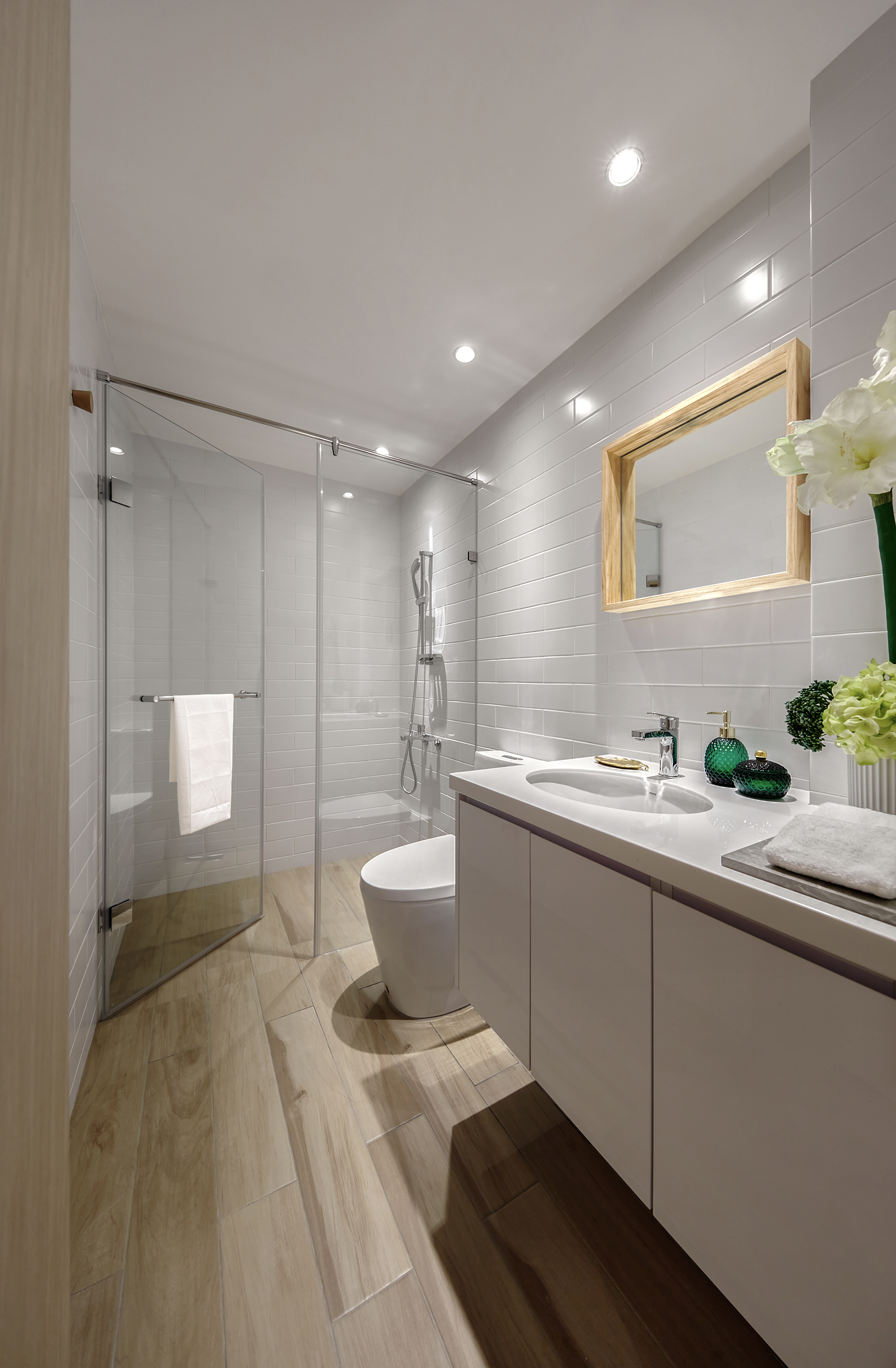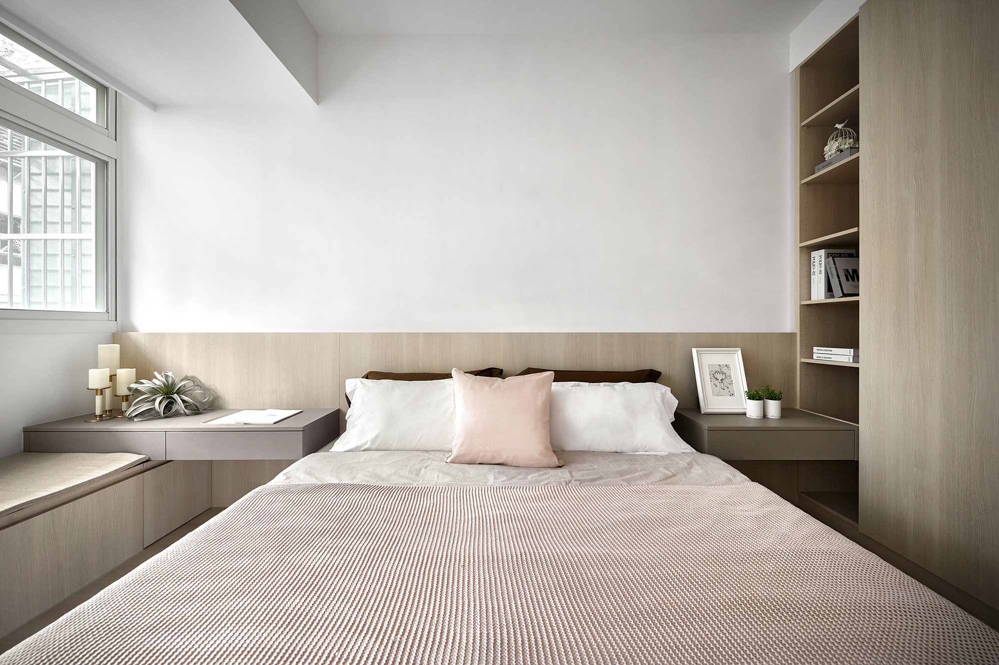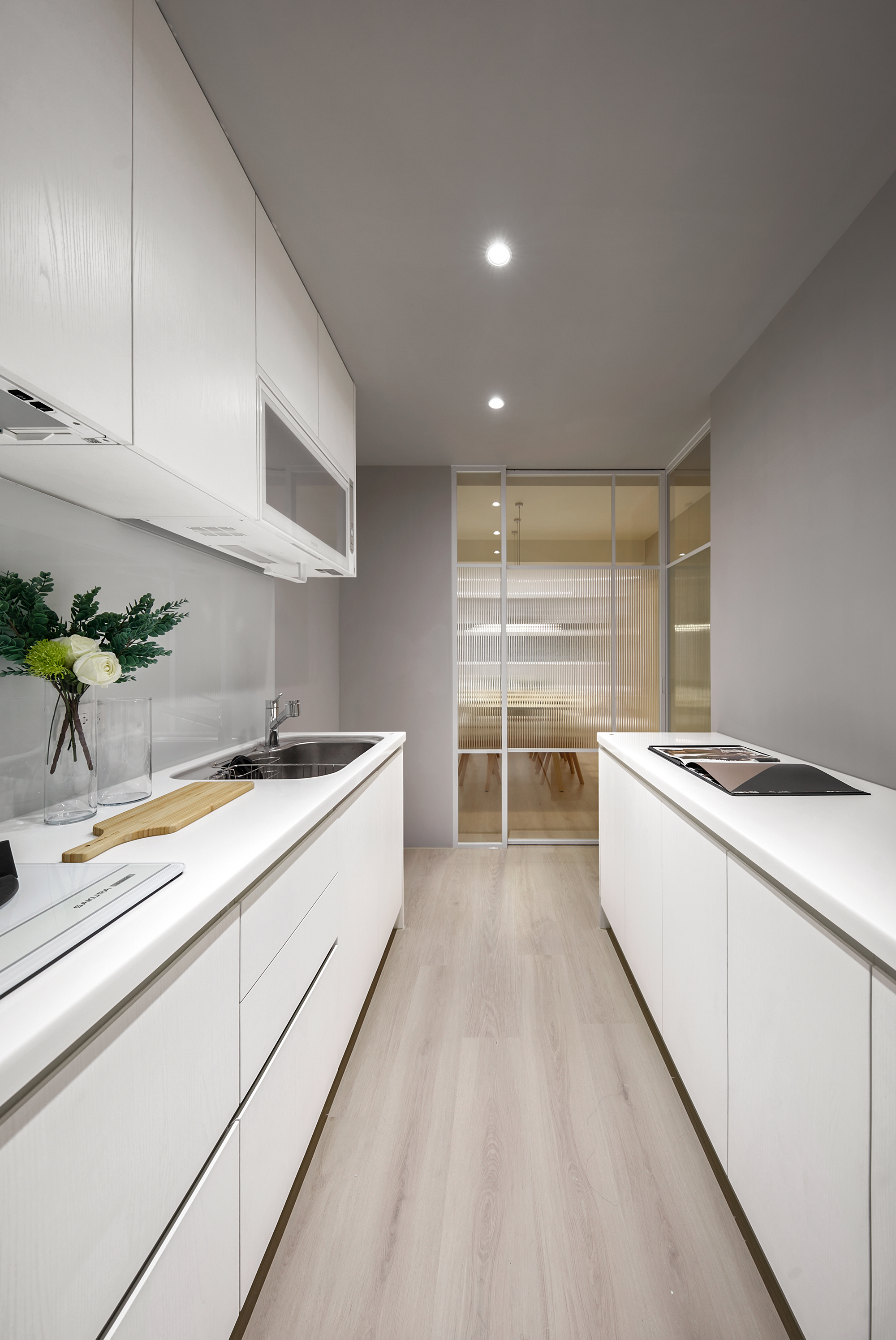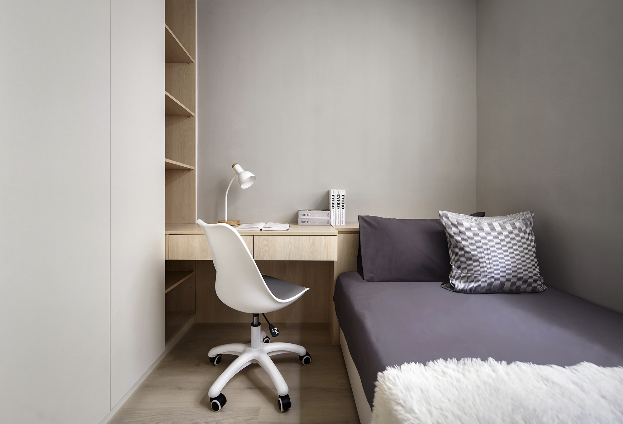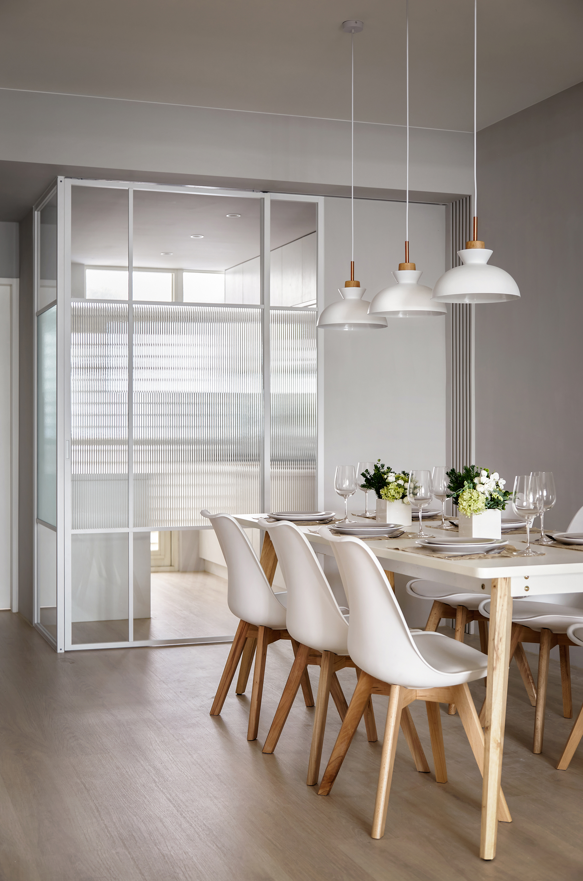 This design project centers around creating an inviting and functional living space for a family of three, comprising a couple and their young son. To begin with, the design is thoughtfully crafted with the family's unique preferences in mind. The color palette primarily features a warm log tone, which the mother adores, while skillfully incorporating a sophisticated gray shade that appeals to the father. Complementing these elements, we have chosen elegant beige furniture, which seamlessly balances the overall aesthetic of the space. Furthermore, the design emphasizes the importance of open areas, recognizing the children’s need for room to play and explore. By strategically integrating blank spaces, we not only provide a safe environment for their activities but also ensure there is ample opportunity for future furniture additions. This intentional flexibility enhances the overall functionality of the space. In conclusion, through this carefully curated design, the homeowners are poised to enjoy a living experience that is not only comfortable and relaxing but also exudes a high-quality, modern charm. Upon stepping into the room, one will be immediately captivated by how cleverly the team has utilized the uniquely shaped space, transforming it into a well-thought-out drop zone. This creative solution allows for a smooth transition into the home, giving individuals a welcoming buffer area. In the public area, the team has embraced an inviting open design, seamlessly merging the living room and dining room to create a sense of spaciousness and brightness. Notably, they have taken advantage of the generous ceiling height and the striking exposed beams to artfully delineate these interconnected spaces.