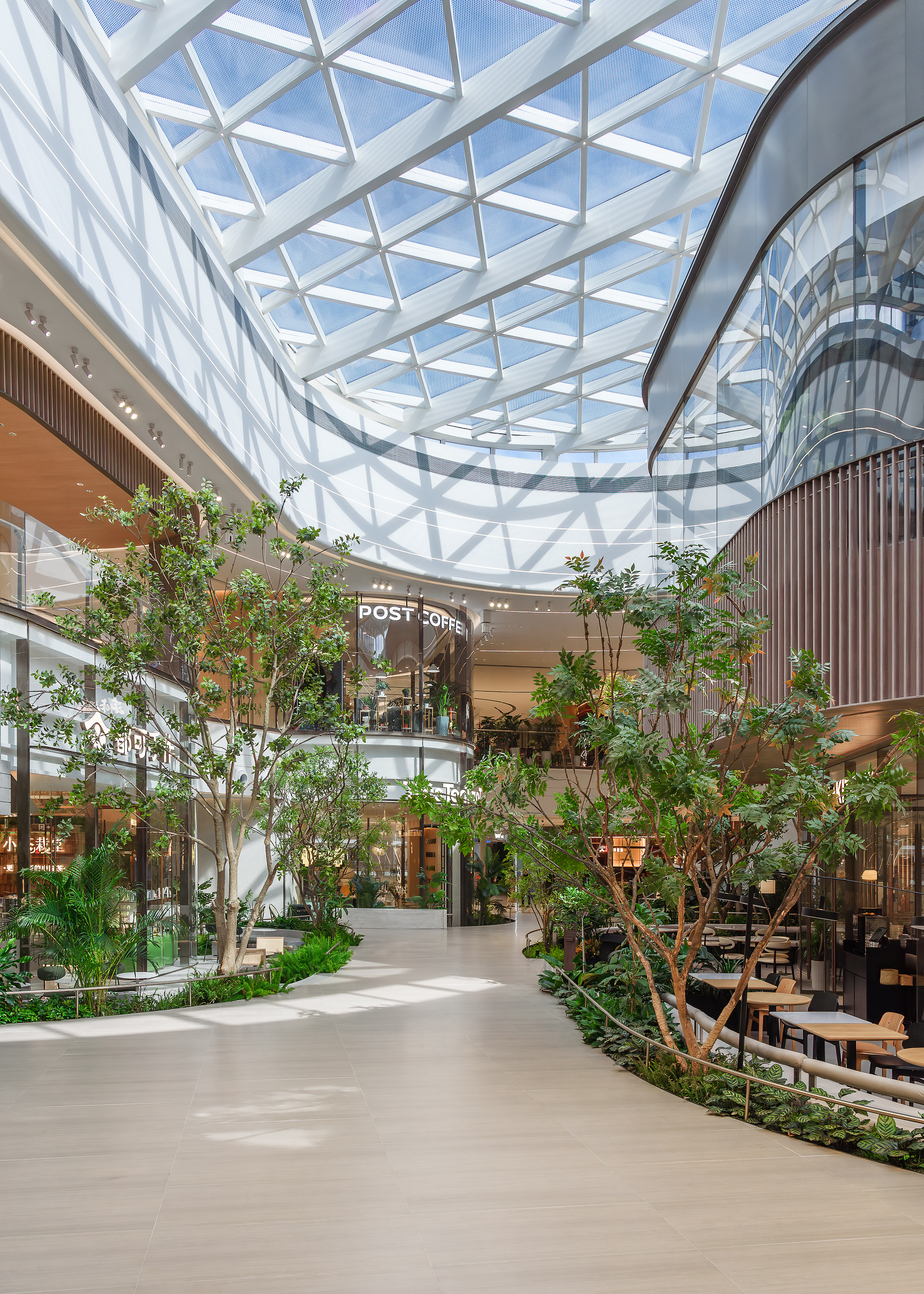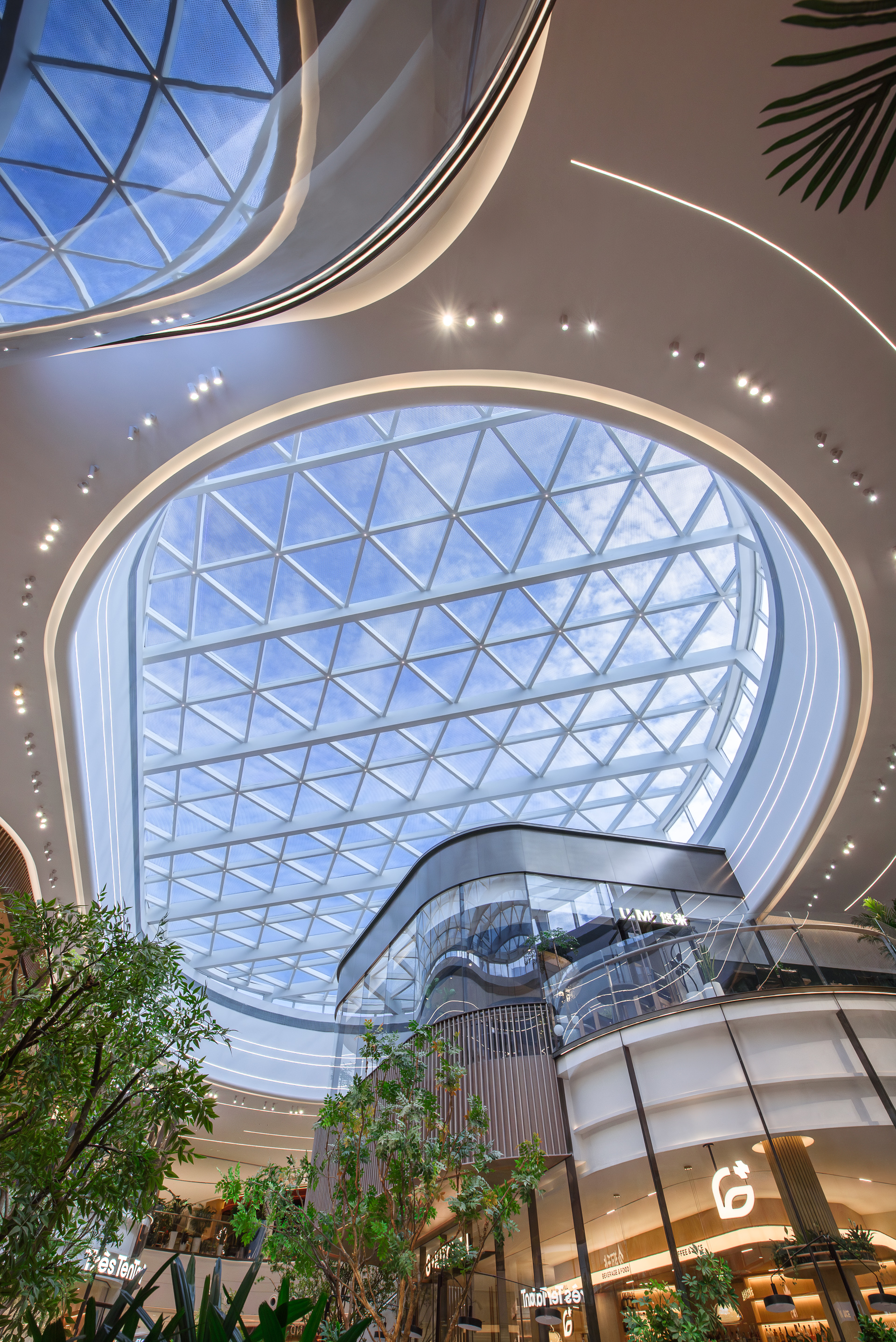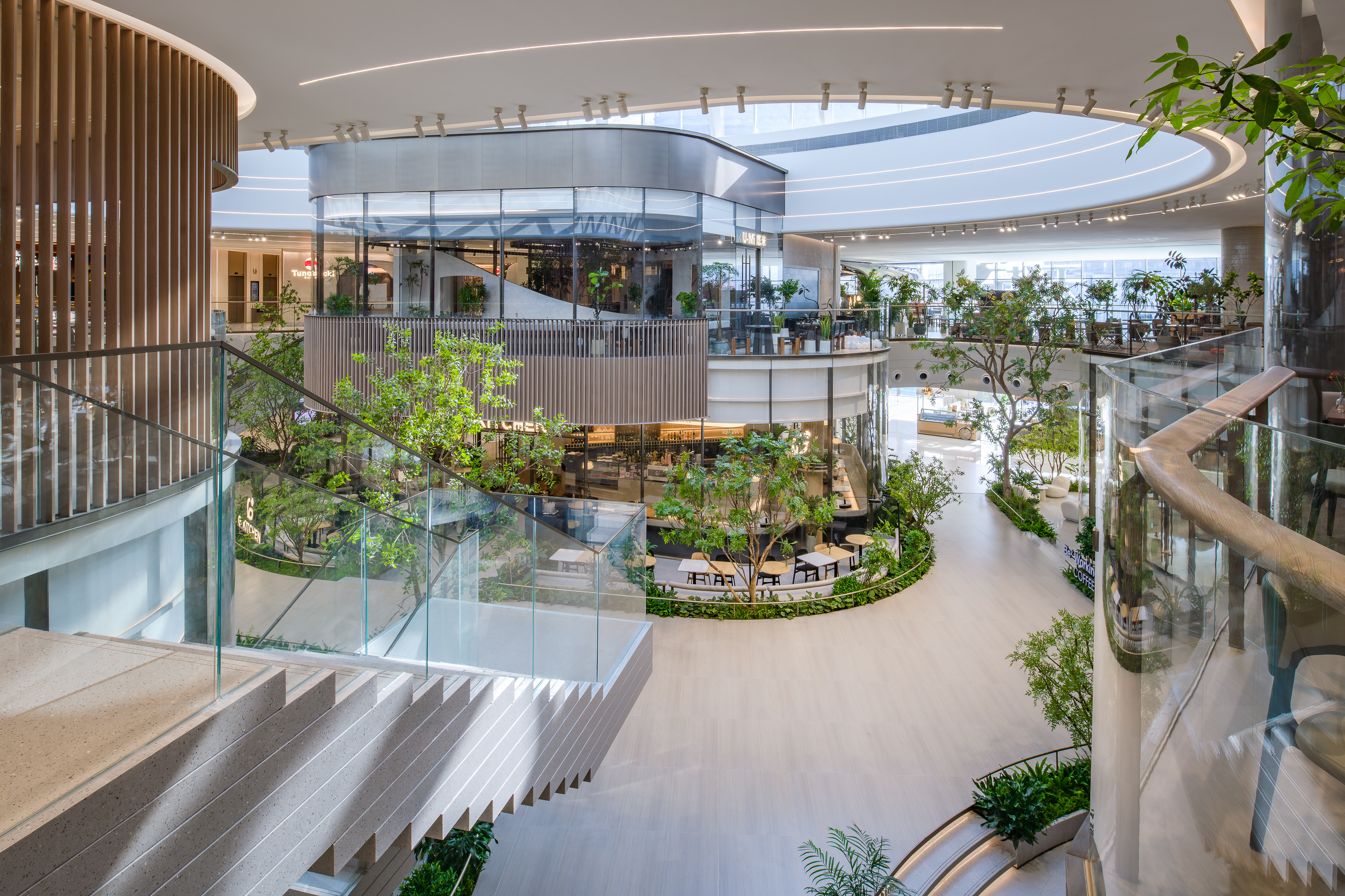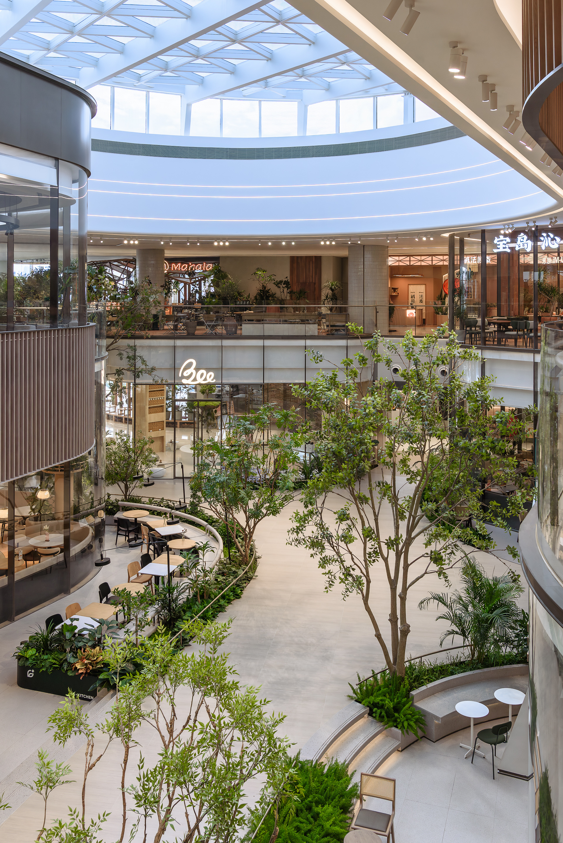 The challenge for the designers was to create a modern, eco-fashion shopping center in the classical garden city of Suzhou!The design of this project is inspired by “dancing waters in forested streams” running down valleys between mountains. Designer has envisioned the interior of this nearly 300-meter-long shopping center as a flowing tapestry of water. The essence of Suzhou’s water towns and classical gardens has been embedded into the design, incorporating elements of flowing water and mountain forests throughout the space. The water flows gracefully, creating rich layers of curves and undulations that transform into multifunctional areas. This arrangement integrates diverse business offerings and shared spaces within a circular flow, constructing dynamic scenes that leave a strong visual impact. Wandering through the center feels as though one is enveloped by the flowing water itself. Situated on levels L5-L6, the MEGA space called Moon Island is Suzhou's first cross-level urban "natural island," spanning over 3,000 square meters. This enclosed area mimics a forest island, featuring spaces that resemble islands sculpted by flowing water, varying in size and freely distributed throughout the space. The overlapping forms create shops, terraces, and courtyards, while sunlight pours through the glass skylights, breathing life into the vibrant, nature-inspired environment that fosters relaxation, socializing, and a connection to the outdoors. This island emphasizes the project's distinctive new social and experiential formats and offerings. Xiangcheng Paradise Walk elevates the urban quality of life by prioritizing sharing, social interaction, and experiential offerings. By enhancing the integration of key commercial areas, it boosts consumer engagement and vitality, unlocking spending potential and invigorating market activity. This strategy promotes high-quality development in regional commerce and increases the asset value of urban projects.