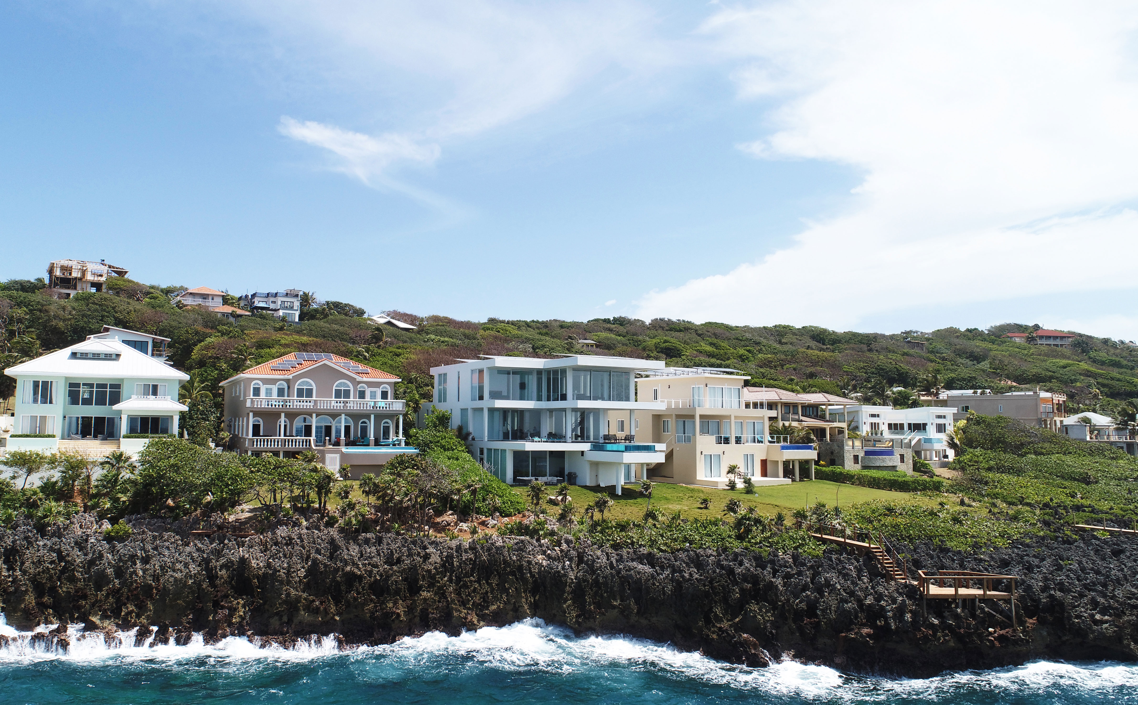 Villa in Pearl is an exclusive modern villa located on the beautiful Roatan Island in the Caribbean Sea. Situated on the northern coast of Honduras, it is the largest of the Bay Islands and is known for its stunning beaches, vibrant coral reefs, and diverse marine life. The project was designed with the objective of creating a luxurious, yet functional space that maximizes views of the turquoise waters of the Caribbean Sea. The villa is split into two parts - a living area and a rental area, providing a unique and flexible living experience for the owner and guests. Beach front residence sits on a 1120 m2 sloped plot, with the entrance to the main villa from the street level and the entrance to the rental villa from the lower ground floor. The design features big balconies and terraces, a cantilever infinity swimming pool, big open spaces, endless views of the Caribbean Sea, large ceiling to floor windows. The form and shape of the villa is elegant and contemporary, with clean lines and a minimalist aesthetic. After opening the doors, we are immediately greeted by an infinite water view and a sense of boundlessness. Moving further, a huge living space unfolds, designed across two floors. This space extends to a terrace, where we are welcomed by a hanging "infinity" pool that seamlessly blends with the endless waters of the Caribbean sea.