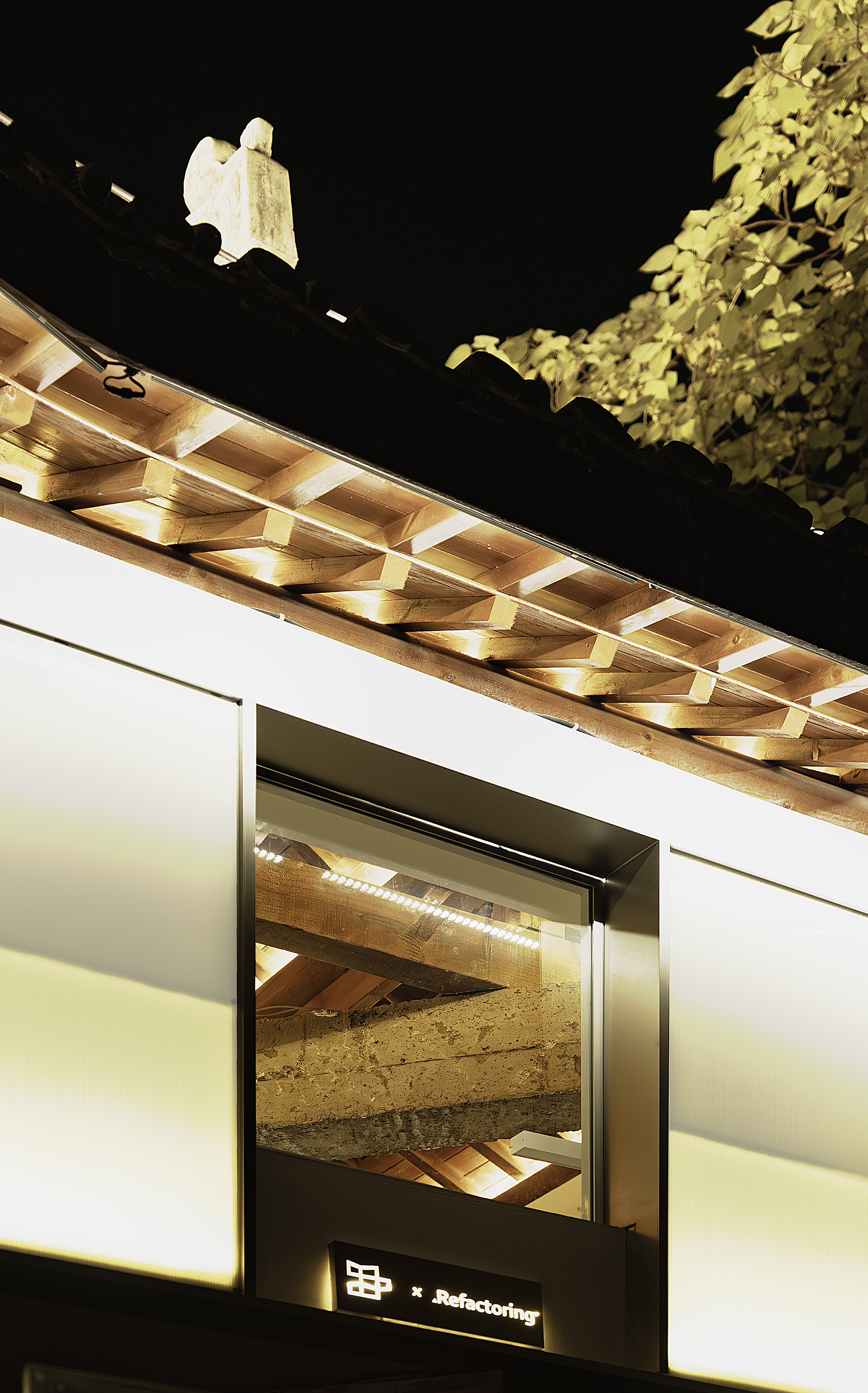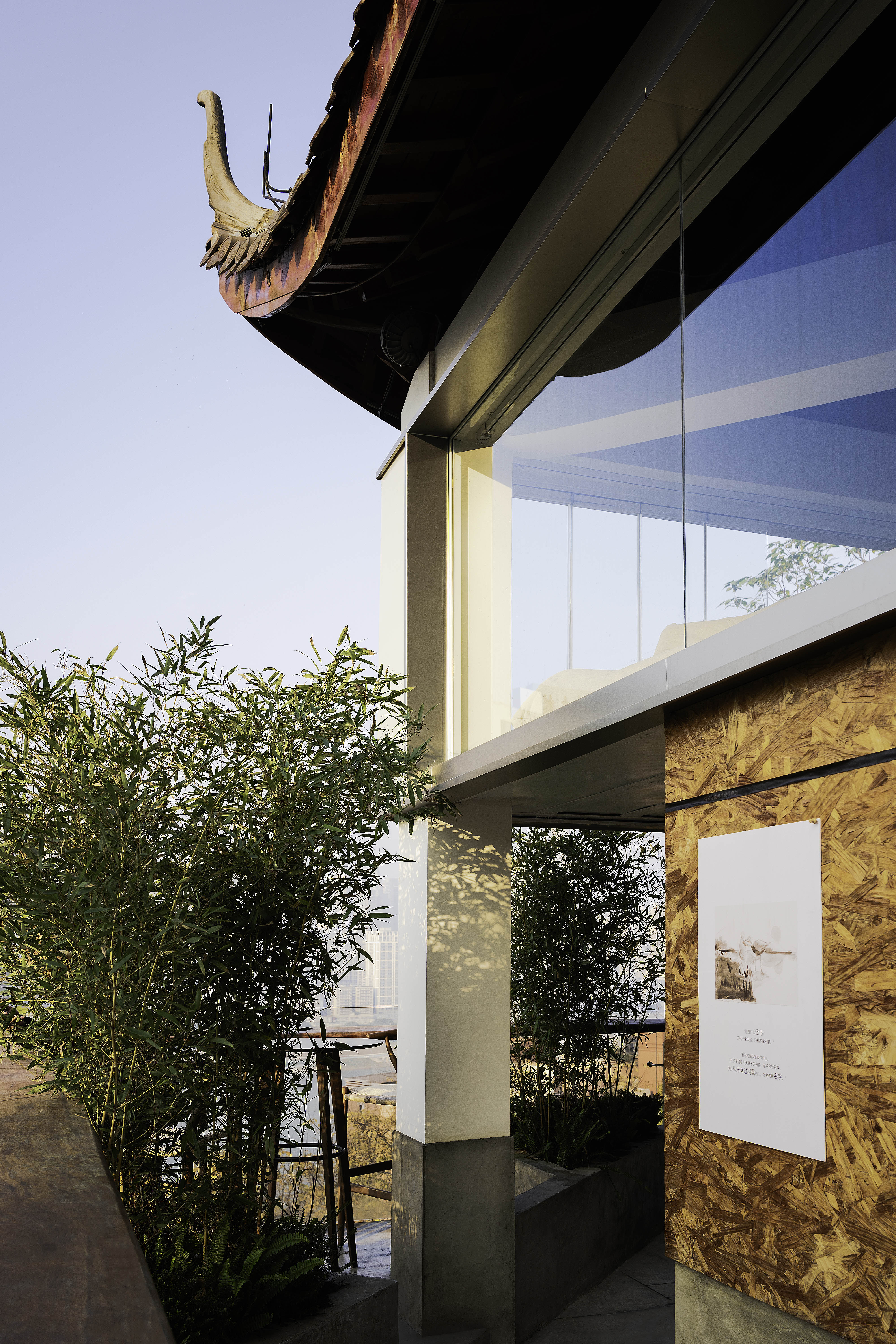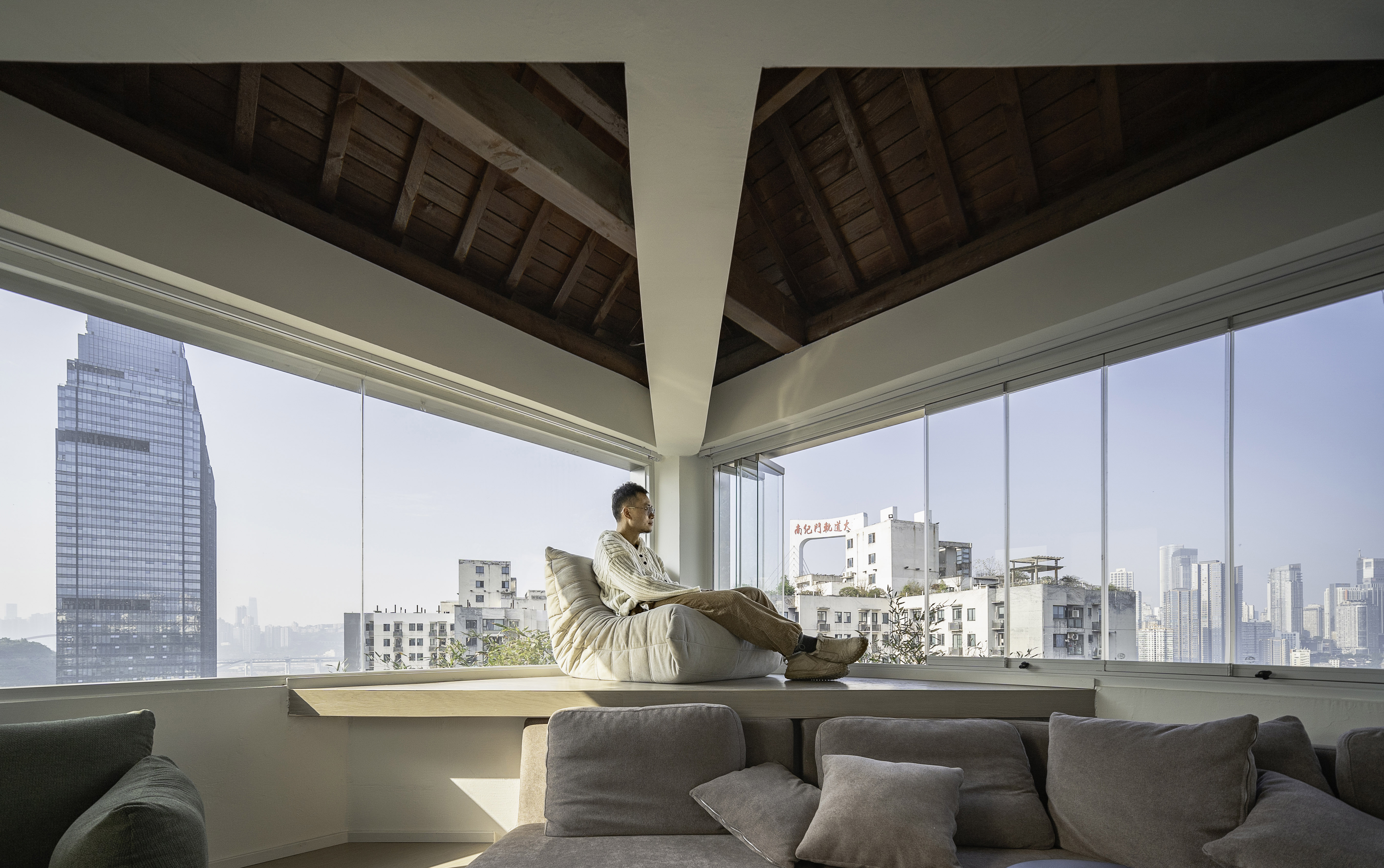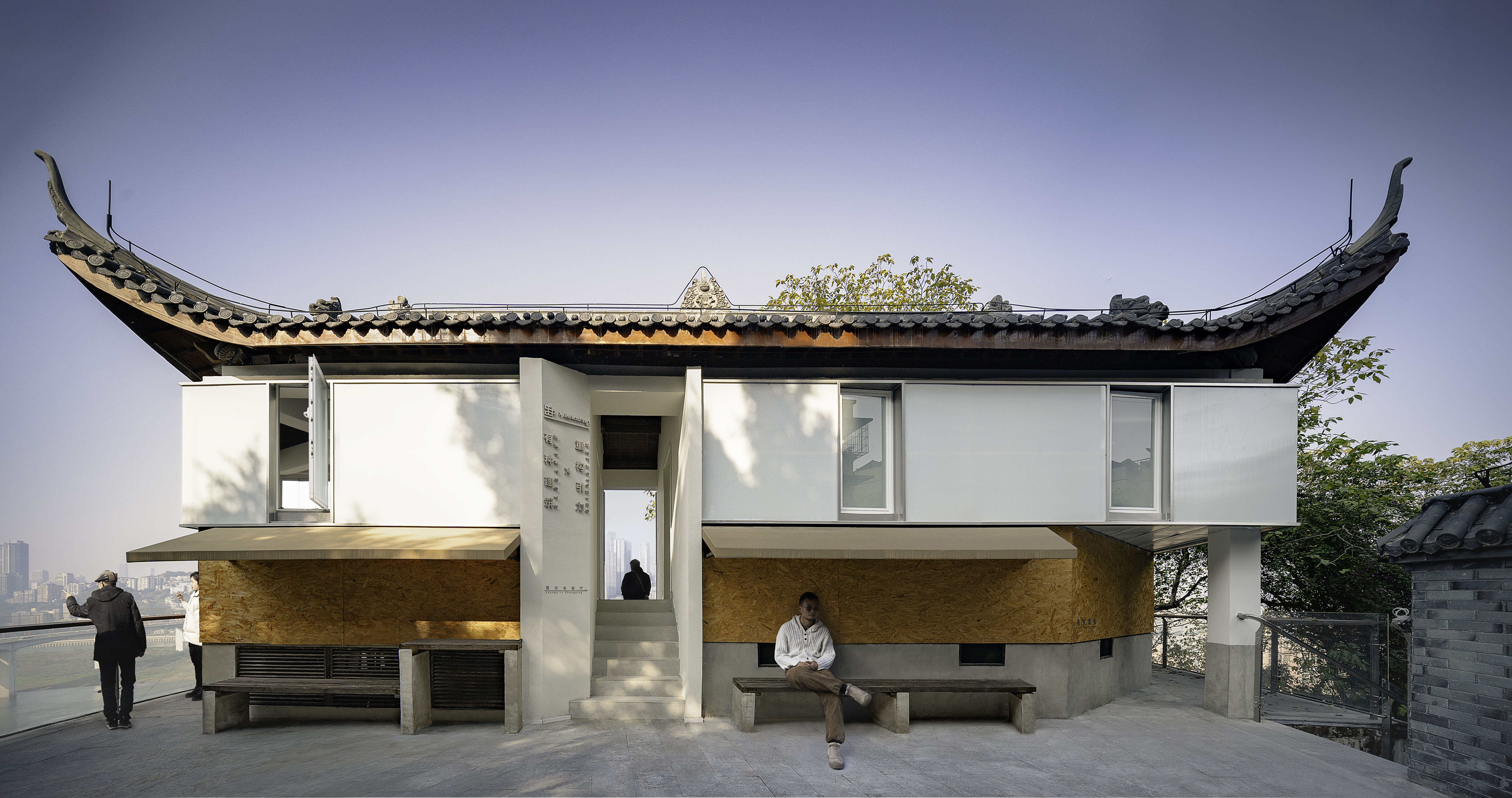 The new location of our design studio is in the pavilion on the second floor of the Houbao Promenade. After the renovation of the promenade, some shops have been added, sharing the community landscape with consumer tourists. As one of the shops, while meeting the needs of office and reception, we hope to reserve an open riverside space for the public. Therefore, the following operations were carried out during the design process: 1.1. One corner of the original pavilion was close to the railing, and a glass box protruded from the other corner, enclosing the cliff - side walkway into a private area. First, we cut off one corner of the building to make the walkway circular; and cut off another corner to leave an observation deck at the best position of the walkway. 2.2. In order for the studio and the walkway to share the river view without interfering with each other, we raised the indoor space by 1 meter. Coupled with the 1 - meter - high wall below the window, a 2 - meter - high exhibition wall is formed. It will be a nice experience to introduce the company to clients while overlooking the river. 3. A passage was cut in the middle of the building. It serves as both a staircase from the outdoors to the indoors and a window for the courtyard to view the river. The final state of the design organically combines indoor office work and public sightseeing in the same space, allowing both to share the river view while remaining independent of each other.
