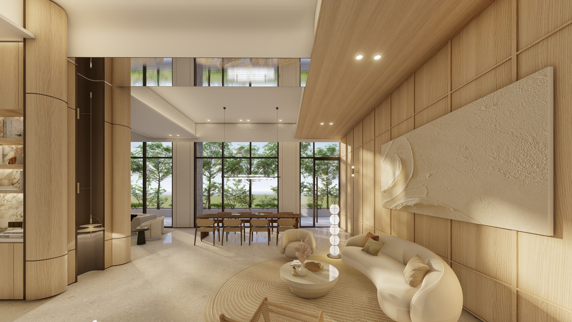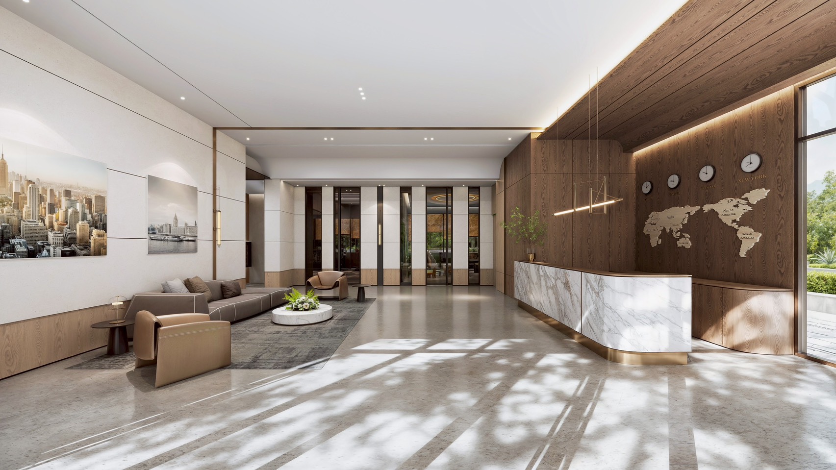 This project centers around the design of a residential building that beautifully embodies the neo-classical style. By skillfully integrating symmetrical proportions and elegant shapes with advanced public facilities, the design not only enhances the aesthetic appeal but also serves practical needs. Consequently, this creates a refined and inviting atmosphere for its residents. Furthermore, the dwelling aims to offer a comfortable and prestigious living experience, one that urban residents can truly treasure and confidently pass down through generations. Overall, this design aspires to blend timeless elegance with modern functionality, ensuring a harmonious living space for years to come. The overall design begins with a series of sequential lines and carefully proportioned arrangements, crafting a grand and imposing facade that commands attention. As one steps inside, the interior spaces reveal contrasting skirting boards in rich hues and elegantly curved ceilings, seamlessly blending to create a layered and tranquil atmosphere. This thoughtful combination not only enhances the visual appeal but also invites a sense of calm, making each area feel both sophisticated and welcoming. Upon entering, guests will be greeted by a stunning reception counter adorned with a vibrant mural of a world map and an elegant clock that showcases the current time in various countries. This striking design not only highlights the interconnectedness of people across the globe but also invites a fresh, global perspective on life. Adjacent to the atrium, the multifunctional lounge boasts a diverse array of seating options, thoughtfully designed to cater to residents’ needs for both social interaction and moments of solitude. Furthermore, the community is enhanced by the addition of a state-of-the-art gym, a well-equipped study center, and a delightful reading and playroom for children.