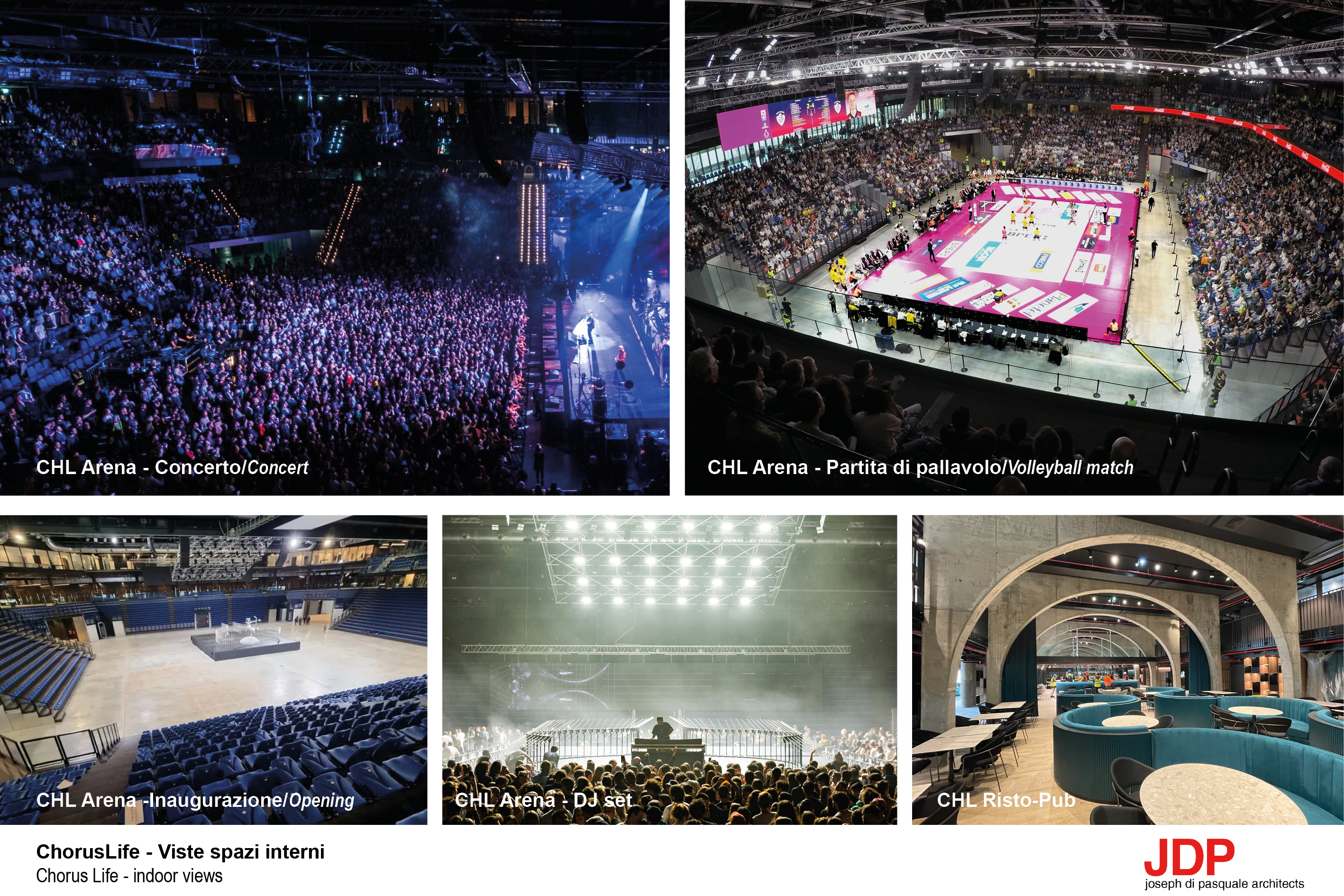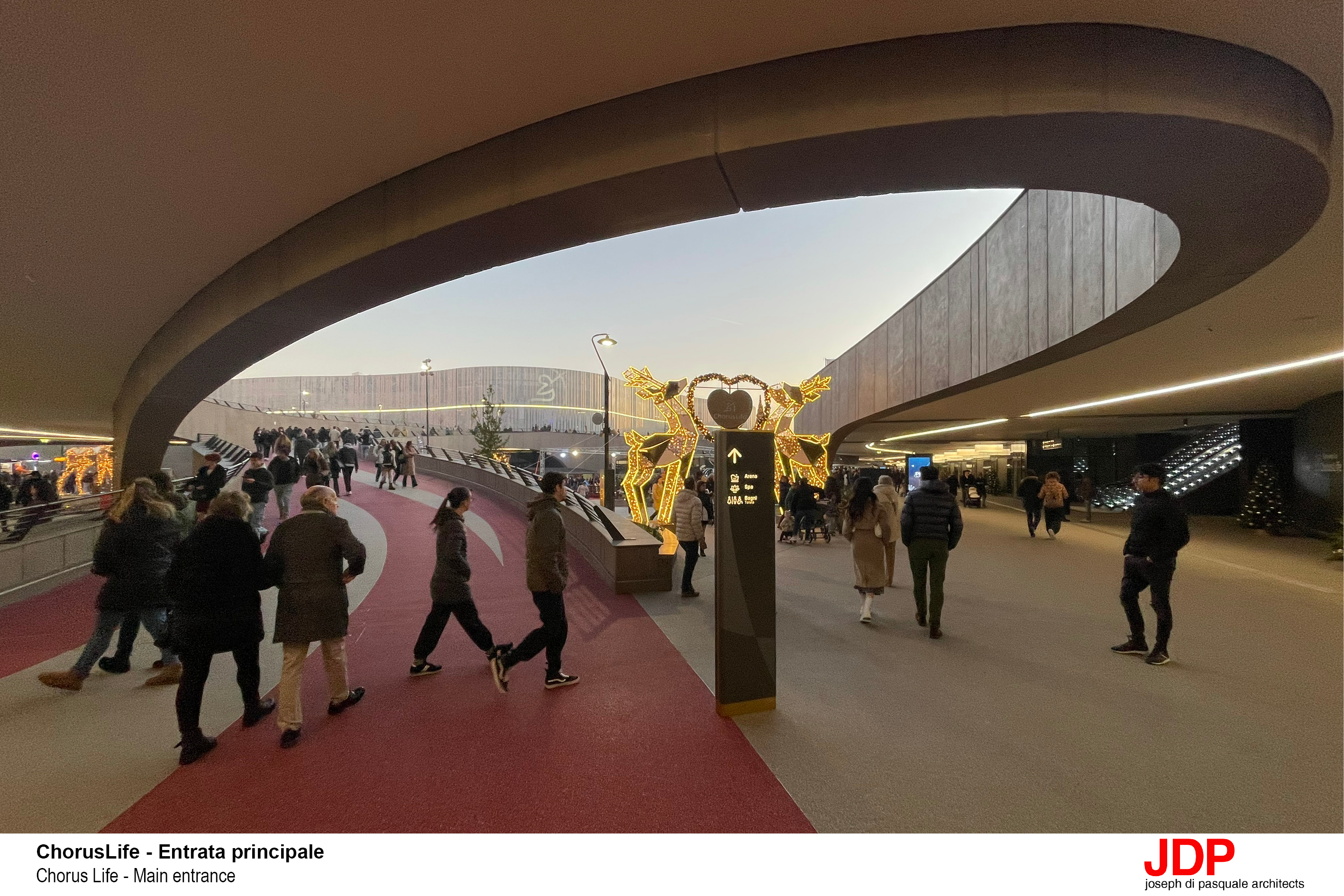 ChorusLife is an innovative urban regeneration project located in Bergamo, Italy, designed to rethink the relationship between architecture, space, and community. Unlike traditional projects focused on building volume, ChorusLife is guided by the principle of “void over volume,” which prioritizes open, social, and shared spaces rather than dense construction. This approach fosters stronger community bonds and promotes inclusivity. At the heart of the project stands the ChorusLife Arena, a multifunctional civic hub designed to host a wide variety of activities. It is not only a sports venue but also a space for concerts, conventions, and daily cultural events, making it a dynamic center of urban life. The Arena features a cutting-edge kinetic façade composed of wind-responsive aluminum tiles that react to environmental changes, creating a living dialogue between the building and its surroundings. Inside, the Arena offers full spatial transformability, enabled by advanced technology that allows the space to be easily adapted for different types of events and gatherings. This flexibility ensures that the venue can accommodate diverse community needs, from athletic competitions to large-scale performances or smaller, more intimate gatherings. Beyond the Arena itself, ChorusLife envisions a smart, connected district driven by a sophisticated digital ecosystem. This system manages public services, energy consumption, and event coordination, promoting sustainability and efficient urban management. The entire project emphasizes human-centered architecture, where buildings serve the people, fostering interaction across different generations and social groups. ChorusLife sets a new benchmark in urban design by transforming public space into a living platform for shared experiences and evolving urban identity. It exemplifies how architecture can be both functional and inspiring, creating vibrant communities grounded in openness, technology, and sustainability.