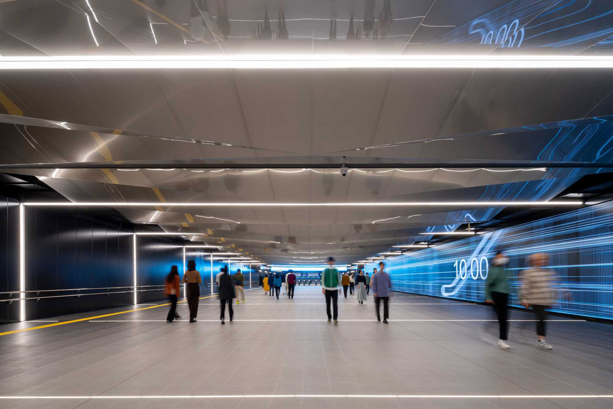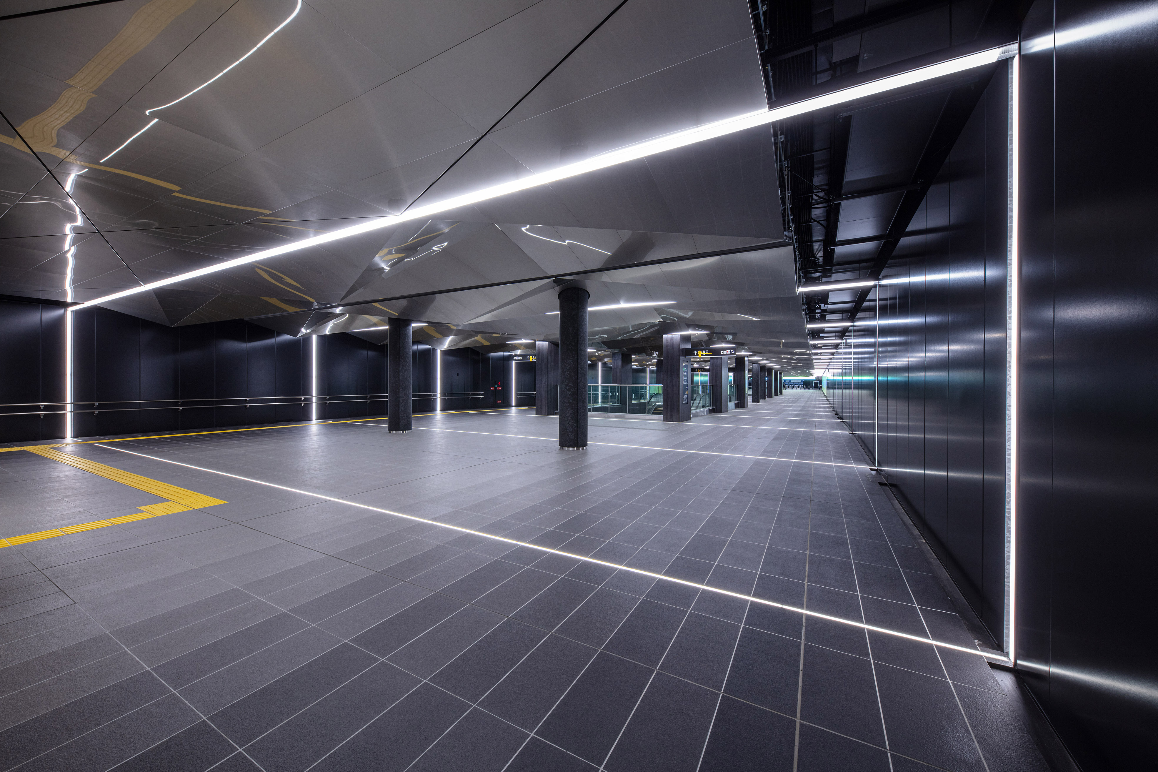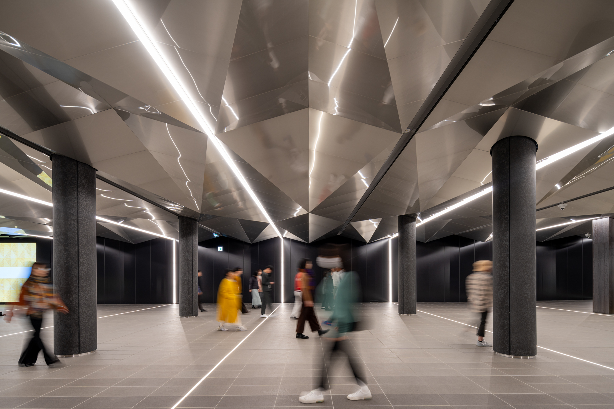 ♦Role and purpose: Aiming to create an exciting station Yumeshima Station is the closest station to the Japan International Exposition to be held in 2025. As a station for the future, we aimed to create a space that would be a destination in its own right, not just a means of transport, as an expression of the way stations and transport will be in the future, and as an exciting space that would be like visiting a pavilion. ♦Design concept: “ISEKAI-Theater” - A station that conveys the appeal of movement and the pulse of life With the theme of “movement”, we have created a variety of theatrical scenes based on five pillars of design rooted in Japanese culture: “origami ceilings, reflective surfaces, flickering lights, authentic materials, and operation and direction”. ♦The “light” that invites you to a different world, the “lit” that illuminates the theater, the “glitter” of life that beats A traditional Japanese gate-shaped lighting expression that connects different spaces and creates symbolism at the boundary. The ceiling, which is made from traditional origami, which represents the spirit of Japanese hospitality, is based on the motif of a “train operation chart” that represents the accuracy of Japanese railway technology. The origami ceiling, which reflects the movement of light and people, becomes a momentary work of art. Just like a theater where people can be led to scenes depicting a variety of Japanese culture and technology and appreciate the various stories, we offer visitors an experience that can only be had here. In order to make people feel the flow of time outside while they are underground, we have adopted a lighting time schedule that takes into account the circadian rhythm. We have also planned the lighting to match the time of day and are working to save energy.