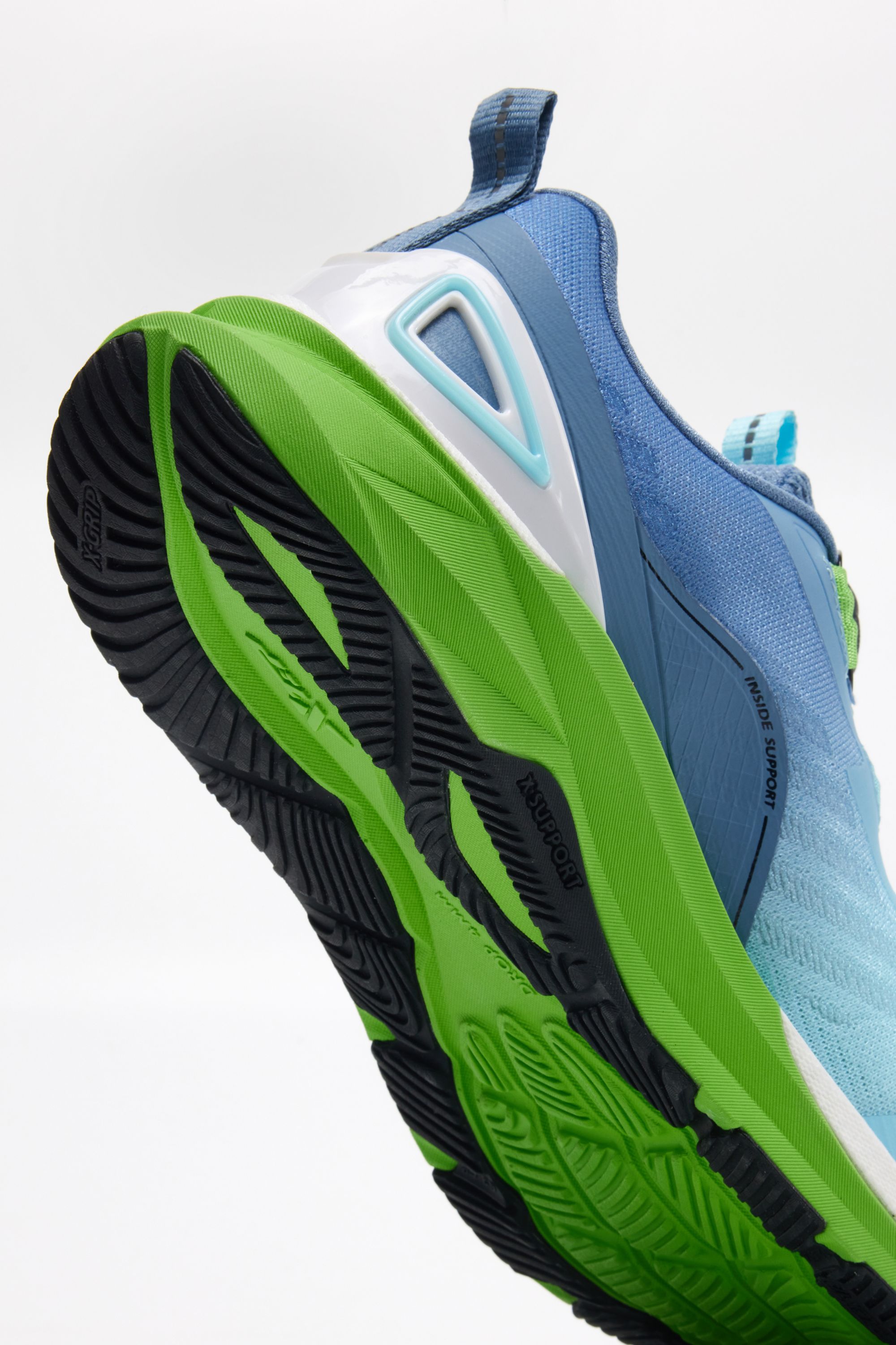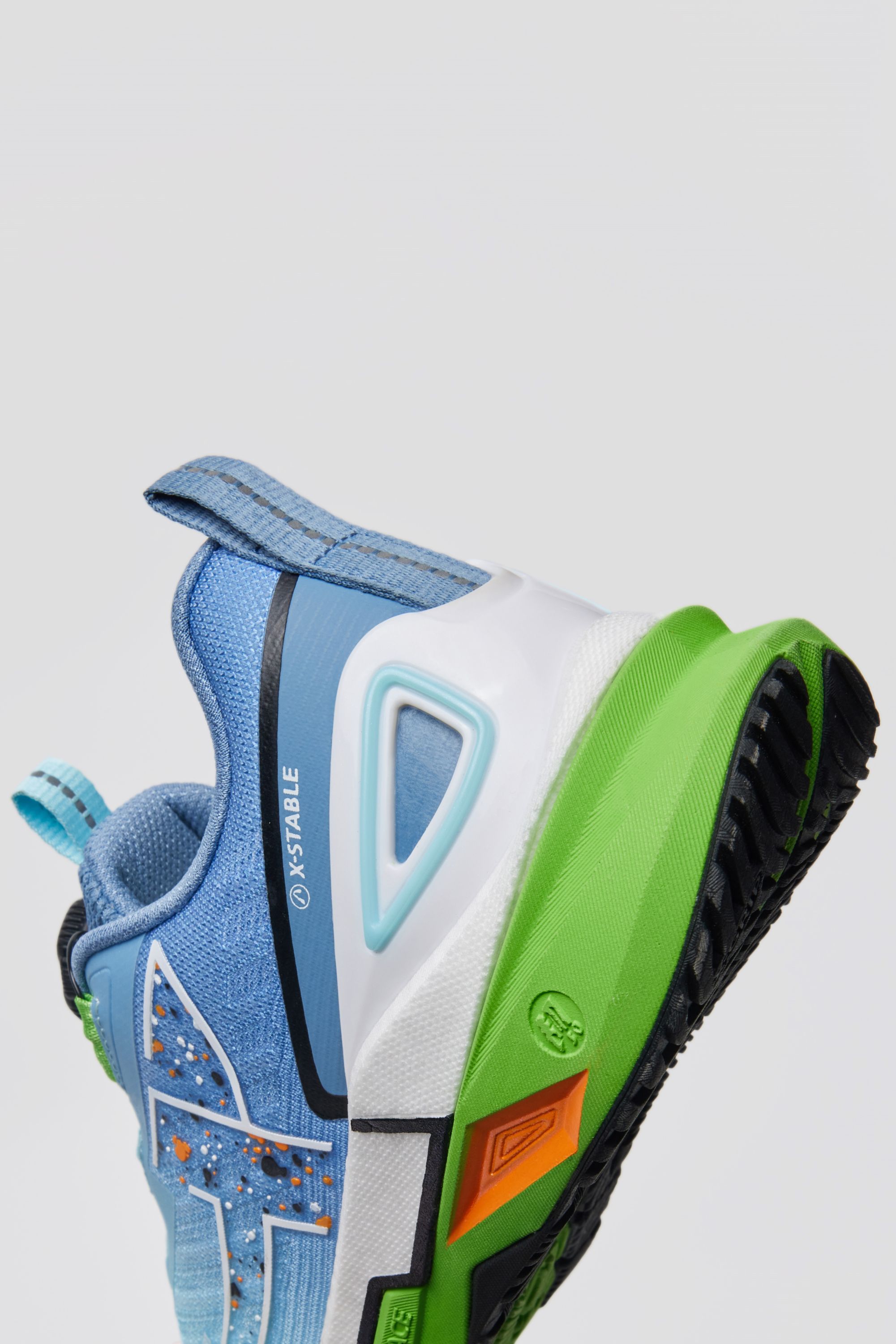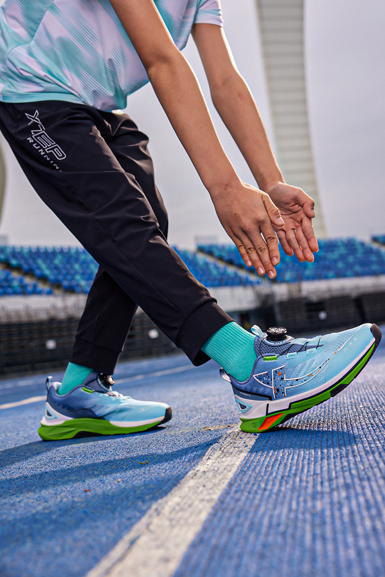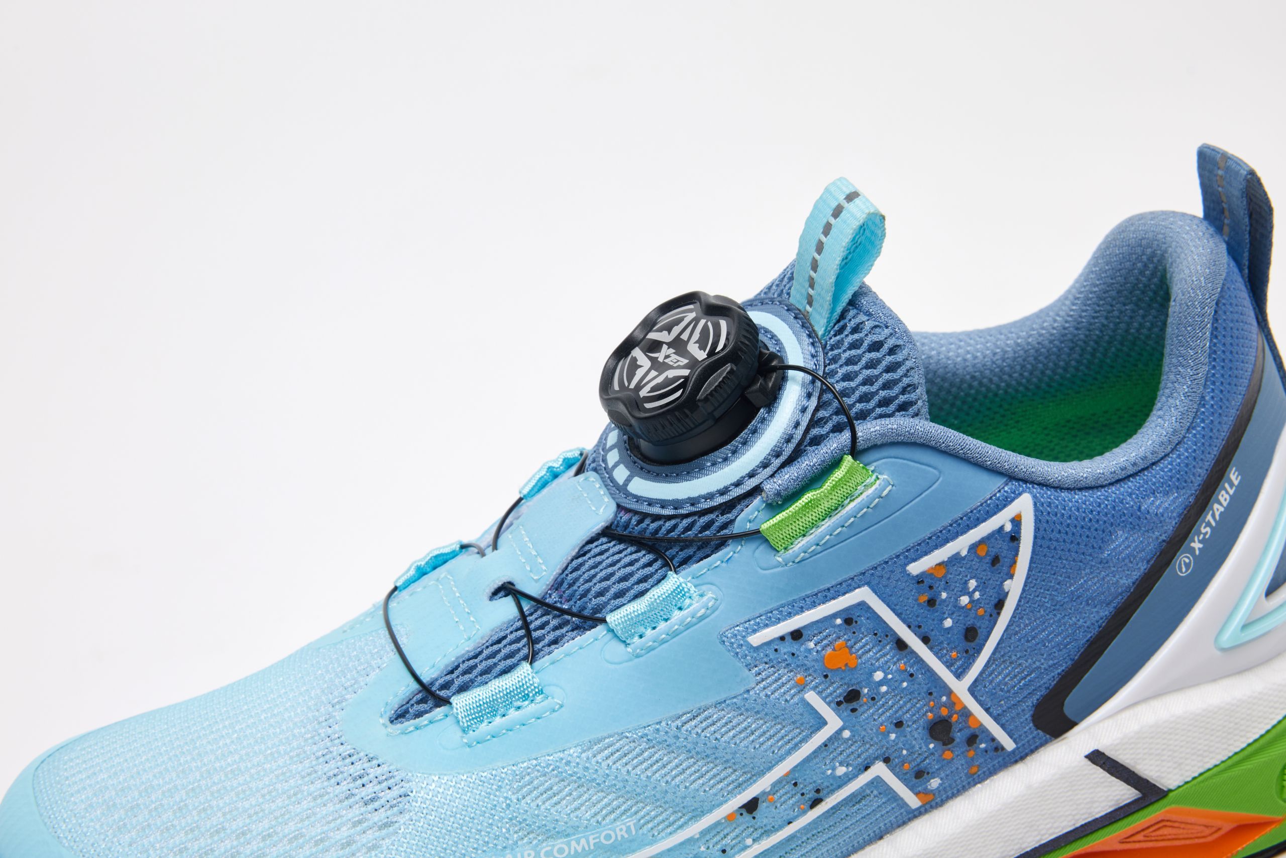 This pair of running shoes is meticulously crafted to align with the developmental characteristics of children’s feet, catering to the diverse needs of different age groups for comfort, stability, and flexibility. From structural design to material selection, every detail reflects professional consideration. The midsole features the brand’s self-developed XTEP-ACE technology in its upper layer, a breakthrough achieved through advanced supercritical foaming to provide exceptional cushioning and energy return. This innovation is complemented by a 360° stabilization frame underneath, which provides additional support and enhances overall stability with every step. The forefoot is ergonomically designed with a wide last that provides ample space for toes and reduces the risk of hallux valgus, thereby enhancing overall comfort. The radiating flexion pattern from the first to the fifth metatarsophalangeal joints mimics a natural gait pattern, helping promote healthy arch development. In the heel area, a 270° wrap-around TPU structure, combined with a bilateral expansion design, creates a three-dimensional support system that enhances ankle stability, evenly distributes foot pressure, and reduces the risk of sports-related injuries. Additionally, the 4mm drop between the heel and forefoot simulates a barefoot experience, improving walking comfort while reducing stress on the ankles and knees for more natural and healthier foot development. Environmental protection and safety are also key priorities in the design. The integration of an advanced physical foaming process avoids the release of harmful gases and chemical residues. This thoughtful choice of production not only safeguards children’s health but also reflects XTEP’s commitment to green manufacturing.
