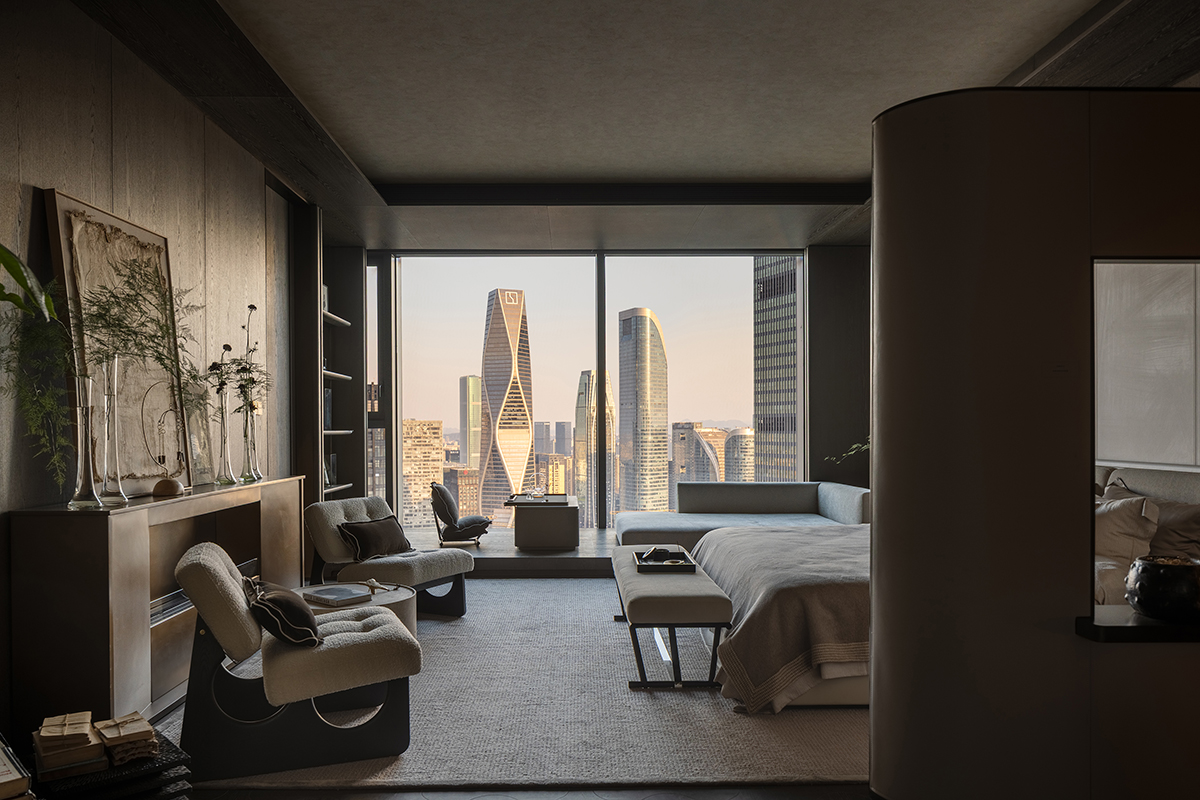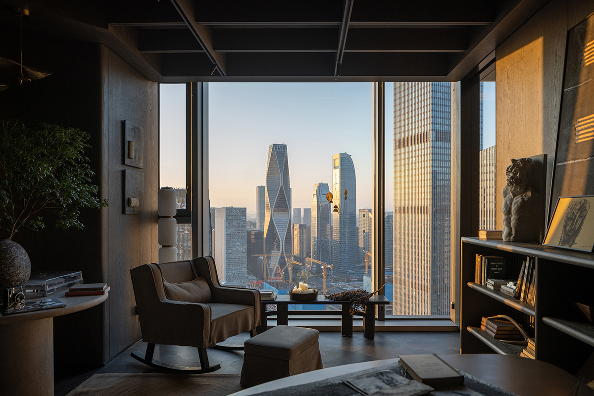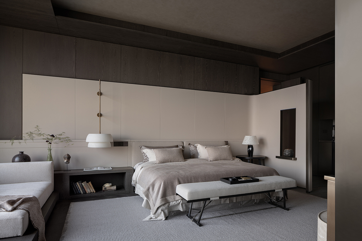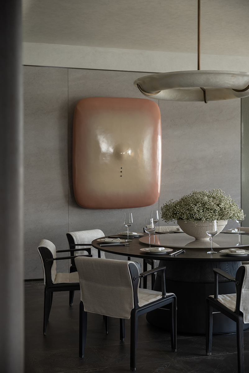 Perched atop the urban skyline, the 730㎡ residence at ESSENCE, Hangzhou, crafted by Nature Times Art Design under the theme "Returning to the Isle," embodies the philosophy of tranquil living in each inch of the space. An ideal home seamlessly merging culture and art with luxury, it offers a spiritual sanctuary within the bustling metropolis. Inspired by the concept of “Returning to the Isle,” this residence evokes the imagery of a solitary boat gracefully navigating the surging tides of the Qiantang River. Integrating the Eastern philosophy of tranquil living into the space, it imagines an ideal home where culture, art, and a luxurious lifestyle converge. Through fluid storytelling and artistic material expressions, life here transforms into a contemplative dialogue between self and space-time, offering an unrestrained spiritual retreat in this fast-paced, efficiency-driven world. This project aims to craft a tranquil sanctuary, where the soul finds repose and the heart takes root in the rhythm of the city. Upon entering, a calm wash of gray wood tone unfolds throughout the home, where the gentle motion of opening and closing doors lies a rhythm of order and understated luxury. A 21-meter glass curtain wall stretches like an unfolding scroll, framing the Qiantang River’s view from sunrise to moonset as the living room’s ever-changing backdrop. Here, Eastern and Western cultures converge in harmony, weaving an unseen narrative through space. On the south side of the corridor lies a private haven for both body and spirit. Spanning nearly 100㎡, it features a thoughtfully curated circulation loop, from an elegant wardrobe to a jade-accented bathing sanctuary that soothes both body and mind. The project evokes a ritual return to the essence of the Eastern spirit, creating more than just a superior physical space, but a poetic retreat for the soul.