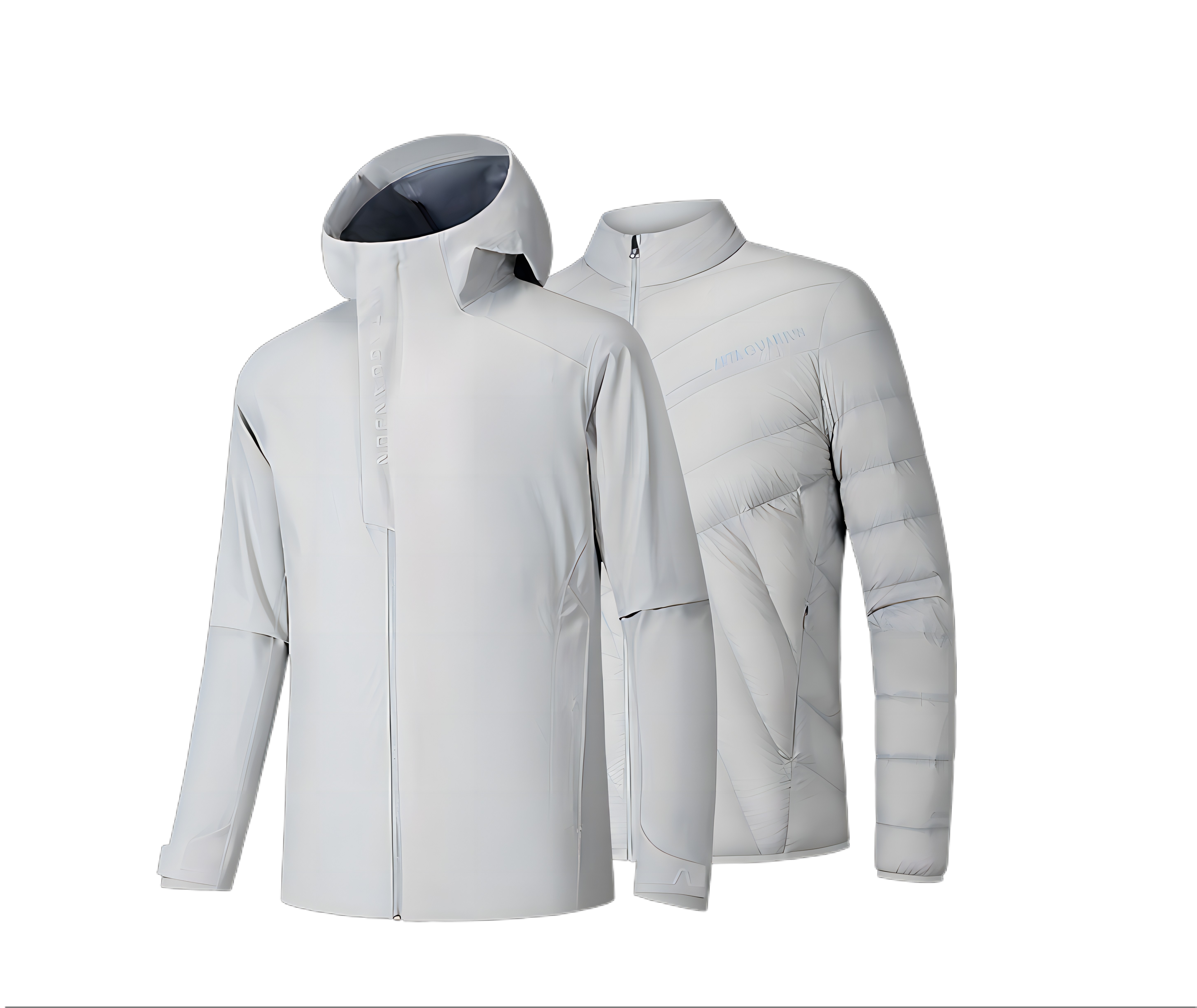 Oriented to urban elite such as commuters and casual outdoor enthusiasts, Anta Guanjun AG-Lite Thindown Series cleverly integrates cutting-edge technology commonly used in gear for national teams with elements from cities and nature. By virtue of minimalist designs and high-tech materials, it strikes a perfect balance among technology, nature, and man. Aesthetically, this down jacket series stands out with exceptional ingenuity. It replaces traditional stitches with a one-piece structure that incorporates the smooth silhouette of the National Ski Jumping Centre, leading to an integrated, harmonious style full of architectural strength and modern minimalism. Functionally, the product takes the world’s first true down fabric—Thindown—at its core, transforming natural down into layered sheets. This innovation breaks away from traditional filling methods, and achieves efficient heat retention in an ultra-lightweight integrated form. Compared to conventional down, Thindown delivers superior down-proof performance and structural stability; at the same time, it is machine washable, uneasy to deform, and resistant to down shifting, facilitating convenient maintenance and enhancing long-term durability. The outer shell, crafted from a woven composite consisting of 70D nylon and spandex, features excellent wear resistance and elasticity for unrestricted movement. A DWR (Durable Water Repellent) coating, coupled with a PU film, ensures outstanding wind-resistant, water-repellent, and waterproof properties, as well as high moisture permeability, helping to create a microclimate regulation system for the wearer. Moreover, the down jacket series are certified by OEKO-TEX STANDARD 100, practicing green production to minimize chemical pollution. It also boasts a thoughtful zoning design: considering that warmth needs vary across different parts of the human body, material type and thickness are strategically adjusted, significantly improving localized thermal efficiency and overall heat retention. Anta Guanjun AG-Lite Thindown Series, powered by advanced technology and philosophy of nature, offers urban elite a comfortable, high-quality wearing solution.