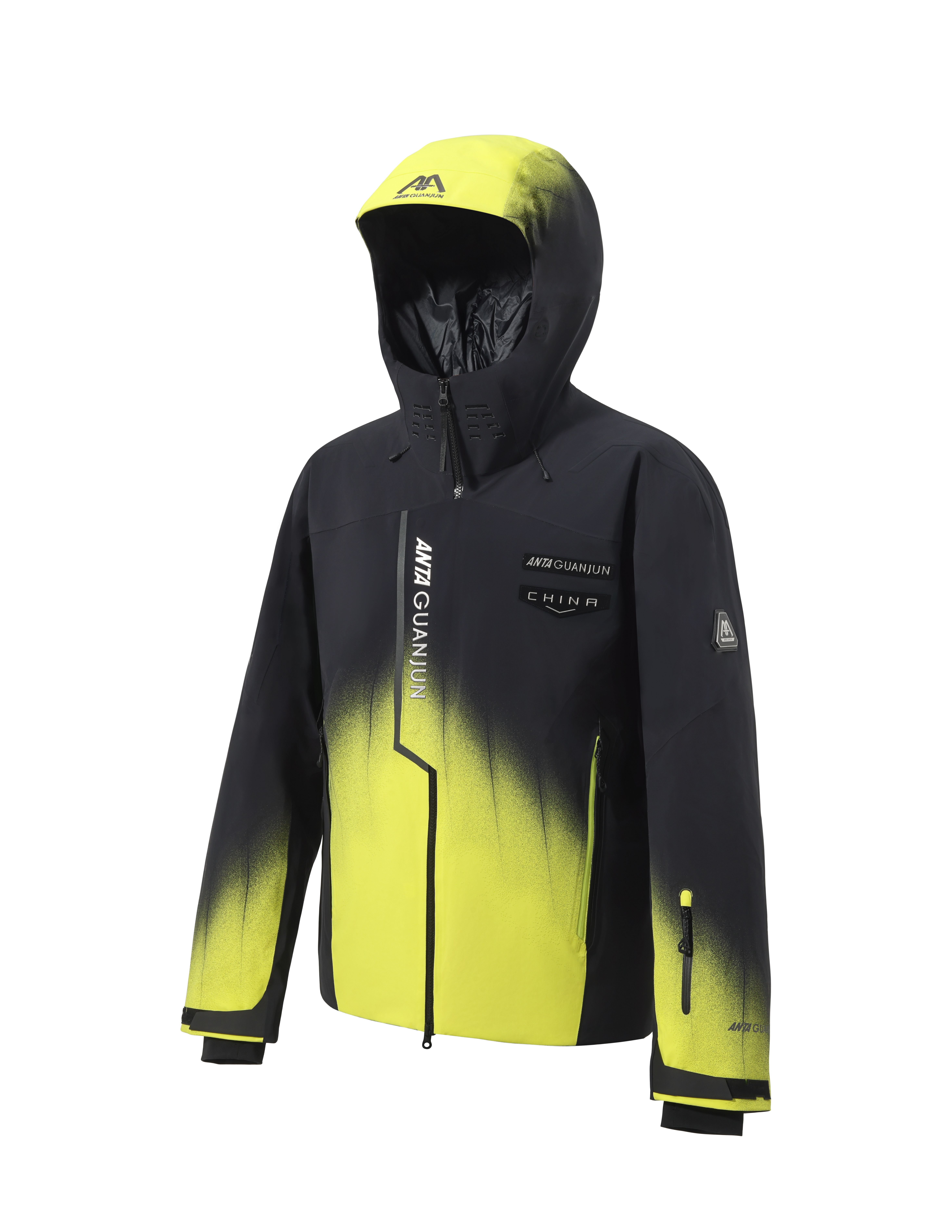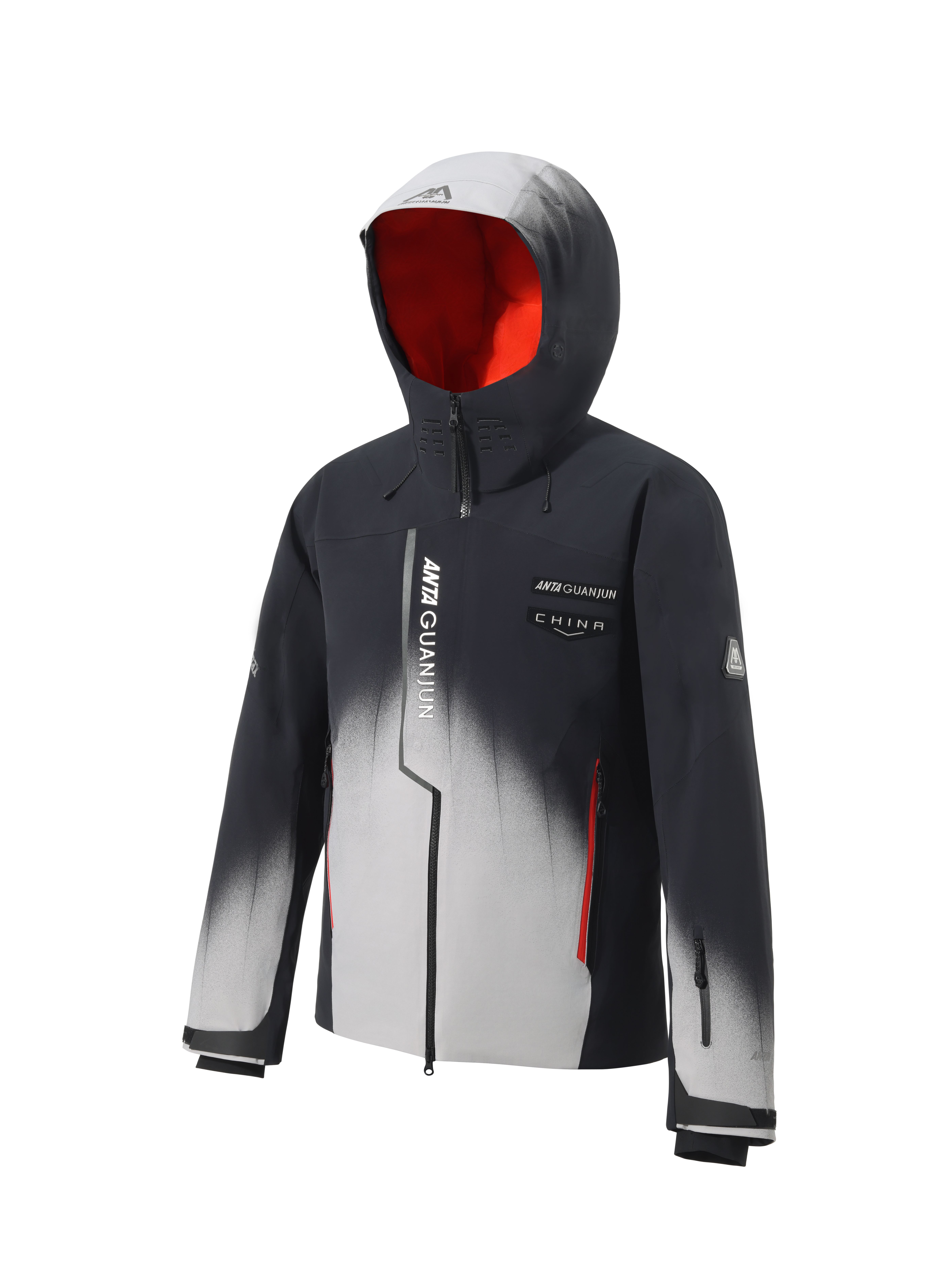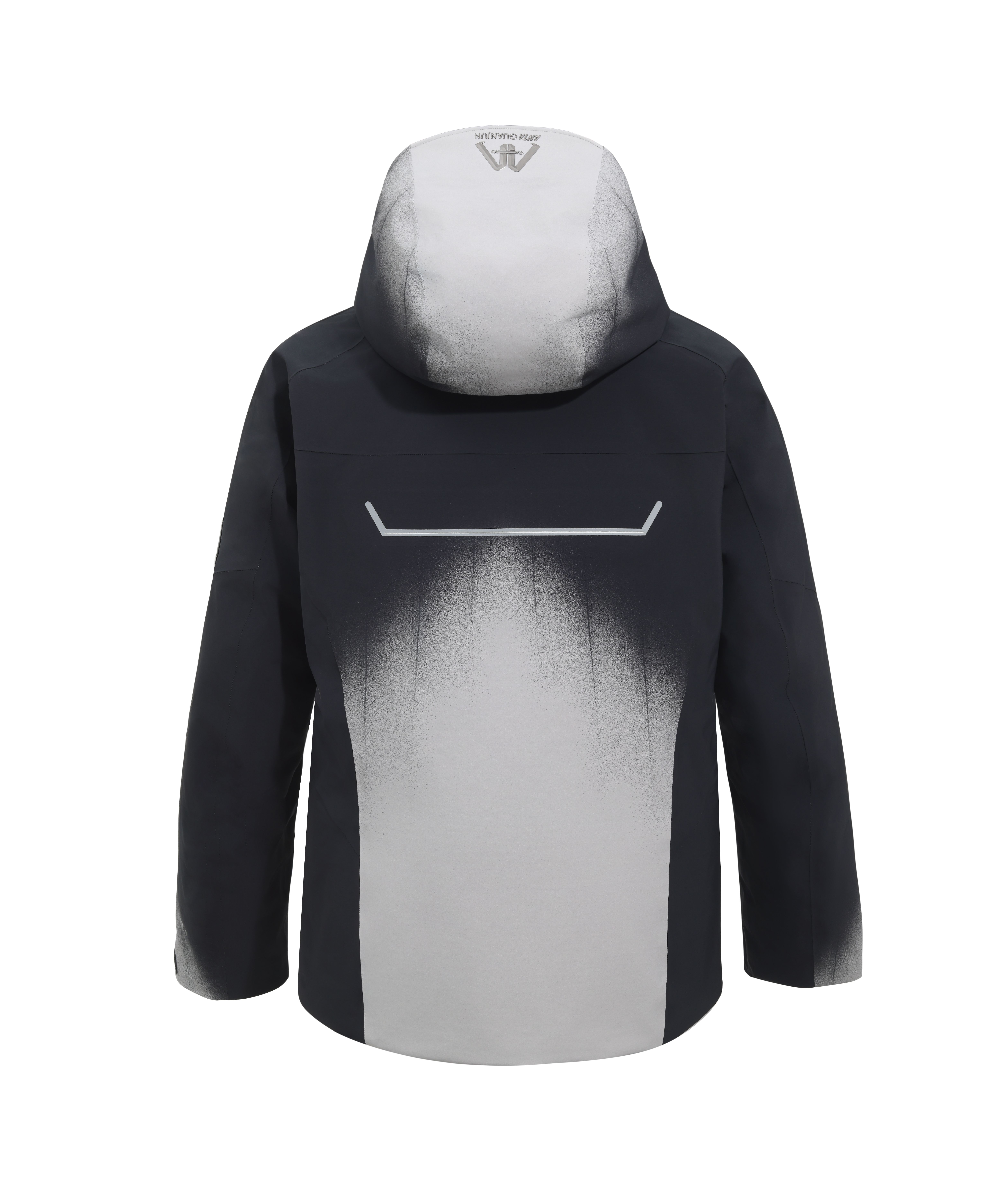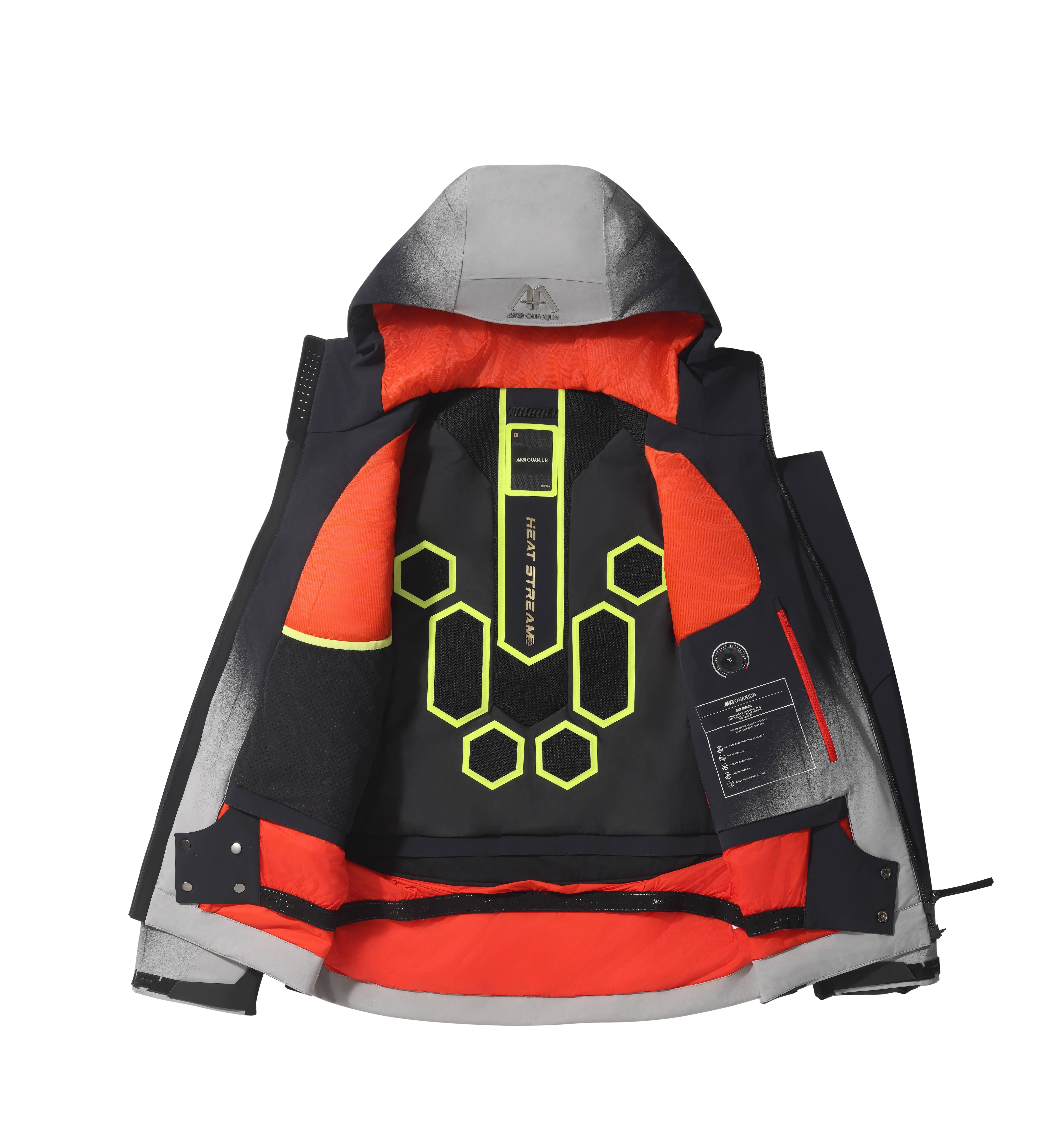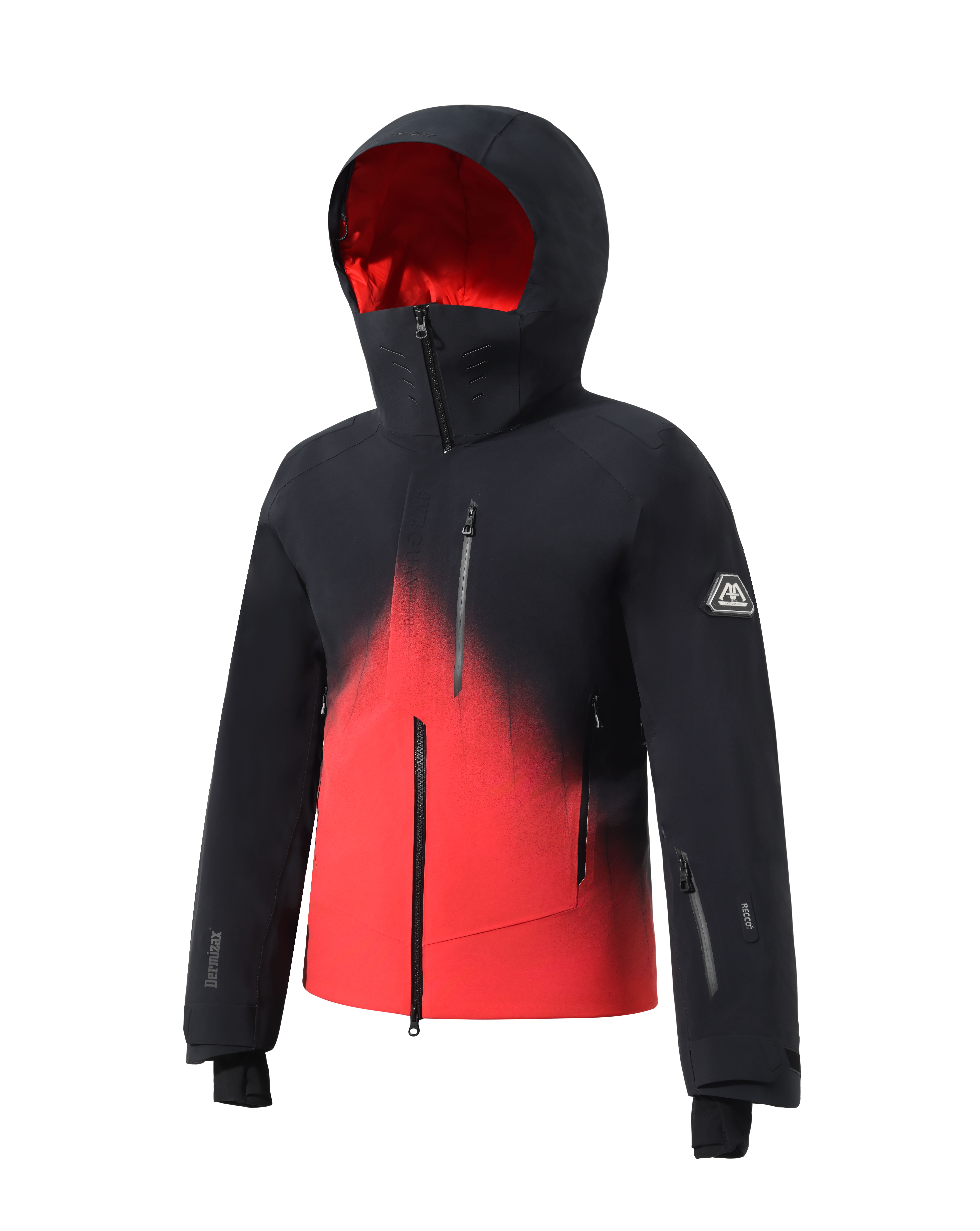 This ski jacket is designed for extreme skiing environments. Drawing inspiration from the Northern Lights, its “chasing the polar lights” color scheme translates nature’s enchanting hues into a distinct gradient print that embodies the brand’s signature style. The ski jacket delivers stable, predictable microclimate management for a comfortable wearing experience. It features a Dermizax® composite outer layer, offering a hydrostatic pressure resistance of up to JIS 20,000 mm and a Moisture Vapor Transmission Rate (MVTR) of 10,000 g/m²/24 h. This ensures effective protection against external water penetration while allowing water vapor molecules to escape. During activity, sweat vapor condenses upon contact with the membrane, is instantly absorbed, and efficiently released—preventing stuffiness and interior condensation. Even under wet or freezing conditions, the fabric remains soft and stretchable. The ski jacket’s inner layer is equipped with HeatStream® 3.0, the same advanced technology adopted by the national ski team. It delivers 3D breathability that channels heat throughout the garment for even distribution. A one-piece molded honeycomb breathable cotton layer, combined with a hollow mesh layer for thermal circulation and moisture-wicking quick-dry lining, keeps the core area of the body warm, breathable, and dry. It is insulated with 3M™ Thinsulate™ high-performance thermal cotton, an aerospace-grade material that is 30% thinner than conventional filling, providing twice the thermal insulation. A cross-laid layering technique creates a stable air-trapping structure, balancing loft and rebound with efficient moisture absorption. Attention to detail further elevates performance: the outer layer features a three-dimensional embossed structure that provides durability and support when carrying skis, while the inner layer integrates sandwich mesh panels to relieve shoulder pressure and enhance all-day comfort.