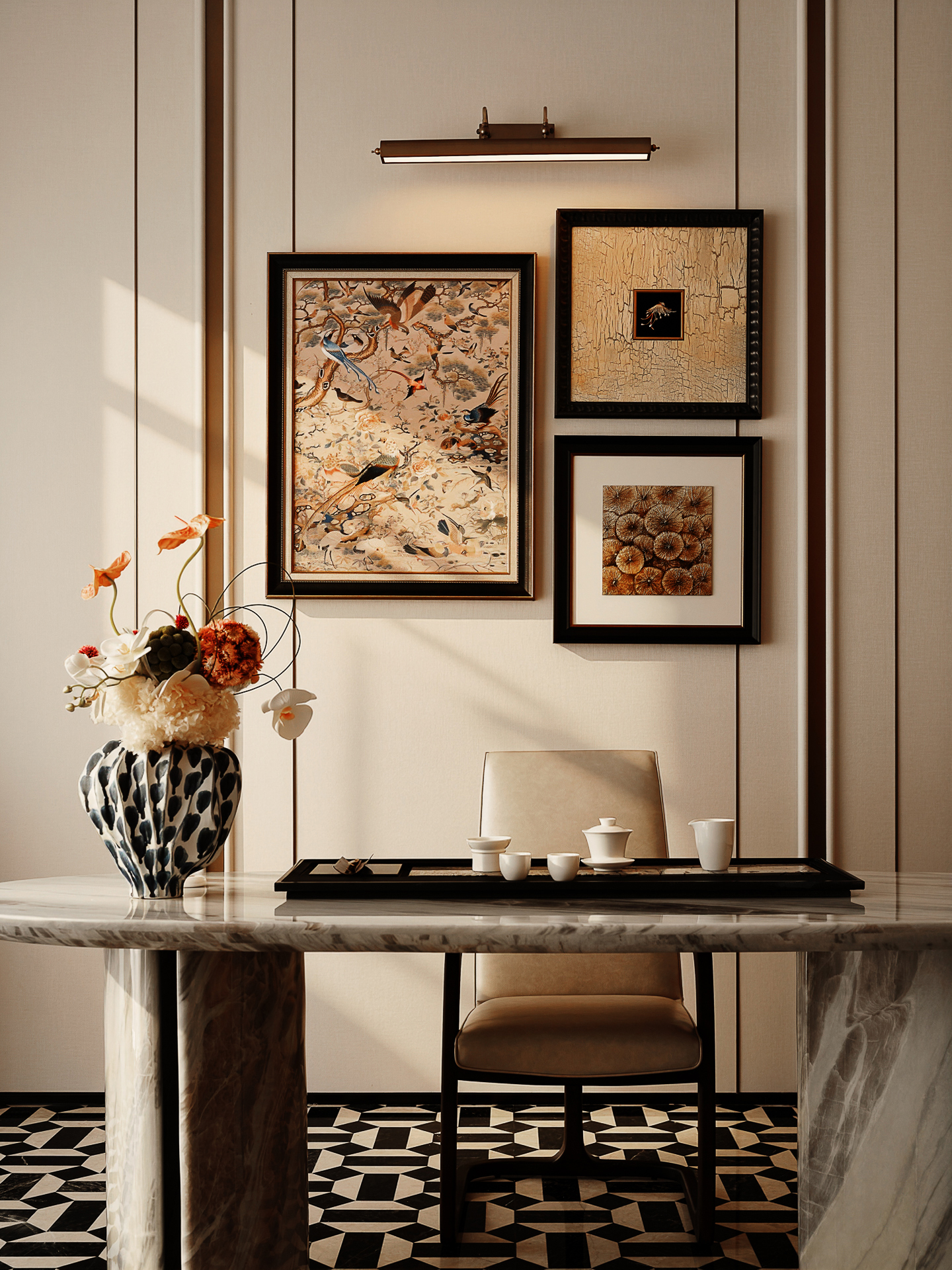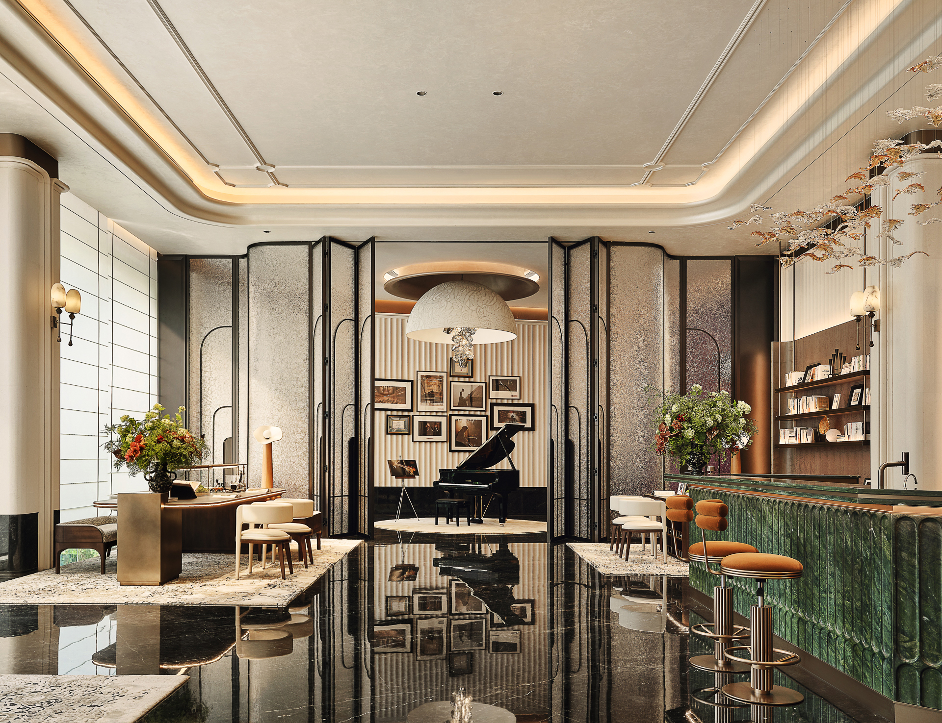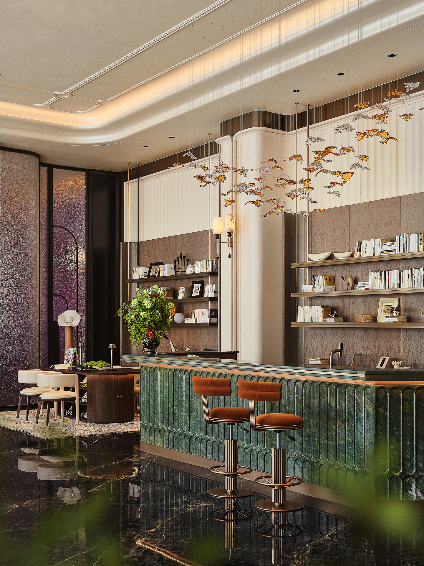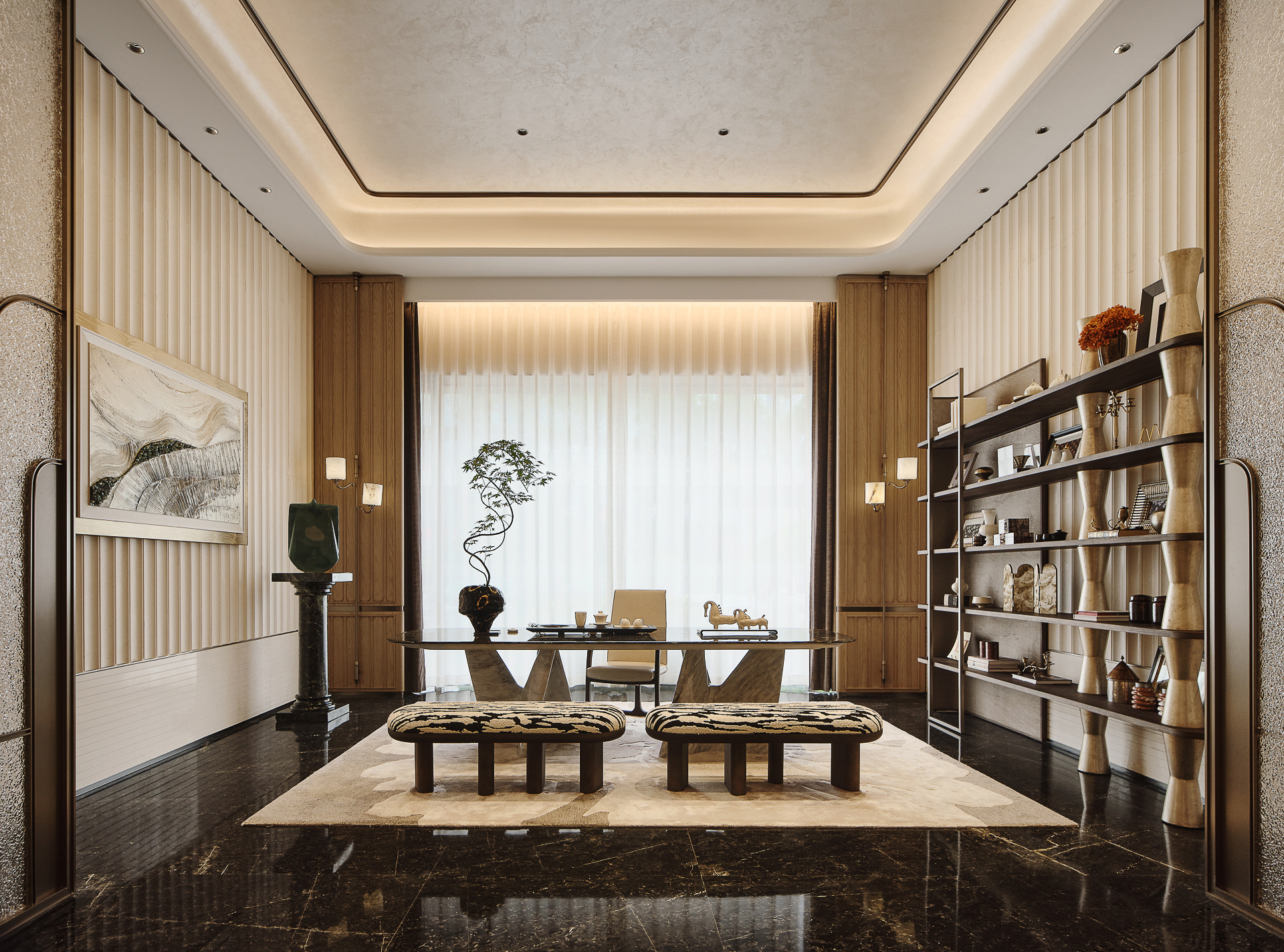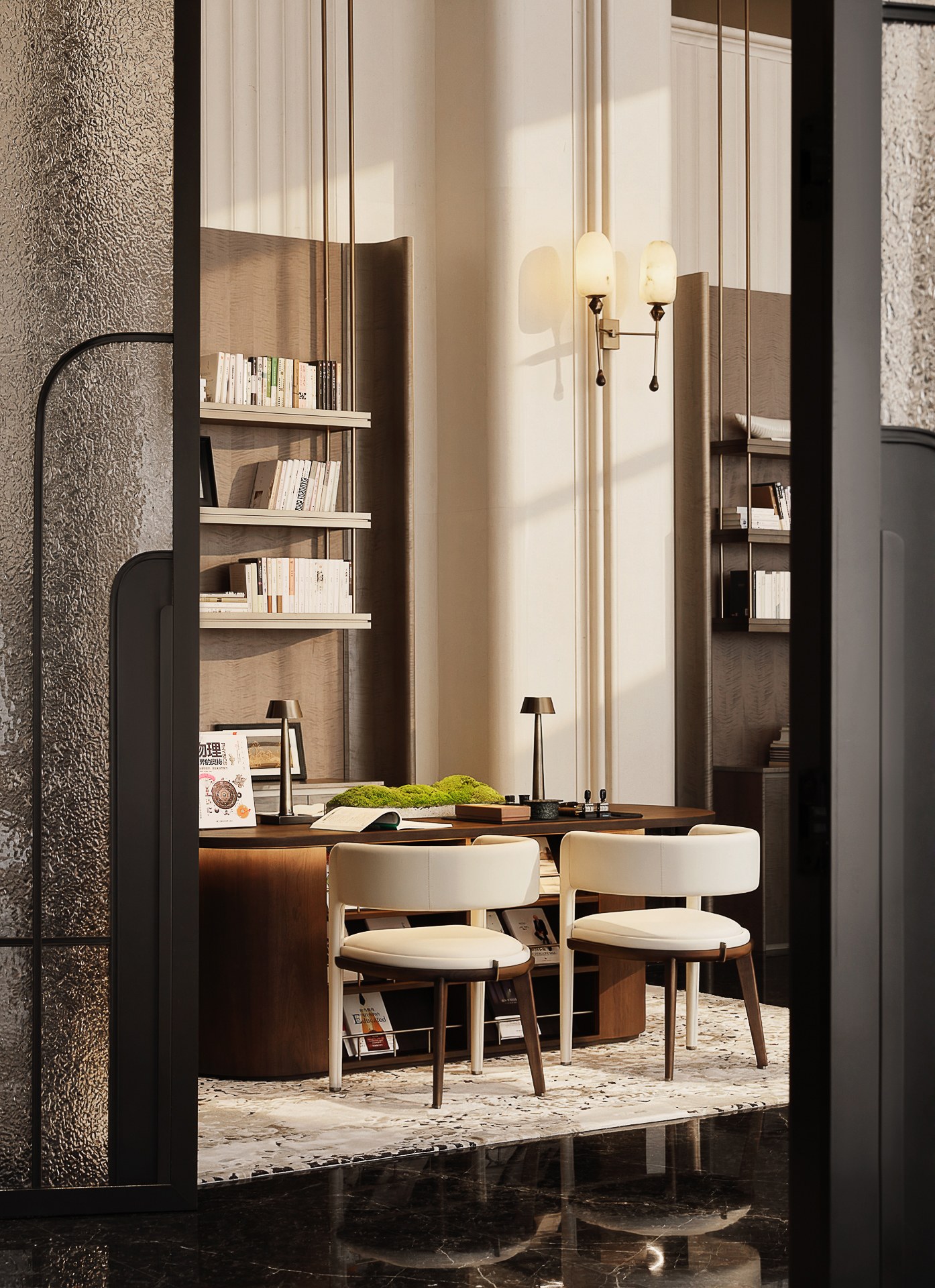 Zuo Hai Elegant Jade Sales Center embodies a harmonious fusion of Eastern aesthetics and international vision, creating an interior space that emphasizes humanistic art and cultural sophistication. Inspired by the timeless heritage of Min culture, the design cultivates a refined and artistic community atmosphere. The ground floor introduces innovation in spatial layout and artistic expression, ensuring that each area reflects the overarching thematic concept. The clubhouse breaks away from the conventional sales center model, offering immersive experiences. The piano area combines artistic installations with a small concert ambiance and a photo wall depicting future usage scenarios, creating a narrative-rich and memory-filled space. The library and bar areas feature luxurious stone countertops and a branded triangular piano, enriching tactile and visual layers. A warm, soft beige palette forms a serene base, accented by metallic details and dark wood finishes, creating sophisticated contrasts that remain balanced. Furniture and accessories are carefully selected for their natural textures—including stone, woven fabrics, wood, and metal—enhancing spatial depth and sensory engagement. Overall, the design merges modern aesthetics with natural warmth and artistic taste, presenting a subtly luxurious, tactile, and visually rich contemporary lifestyle. https://youtu.be/jktfYRFONoA https://mp.weixin.qq.com/s/7SqNwsstTlwrNtjeHqfdxA