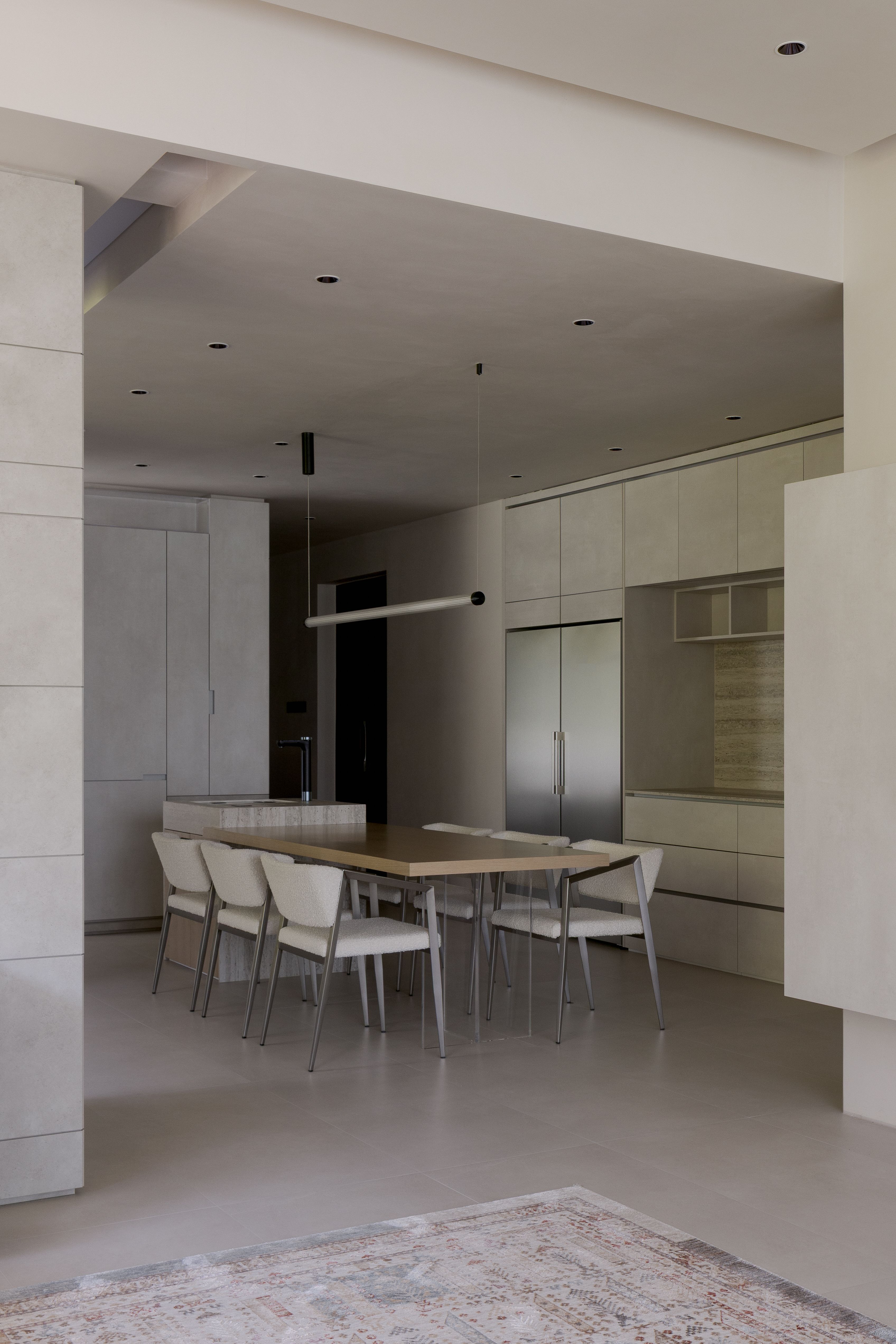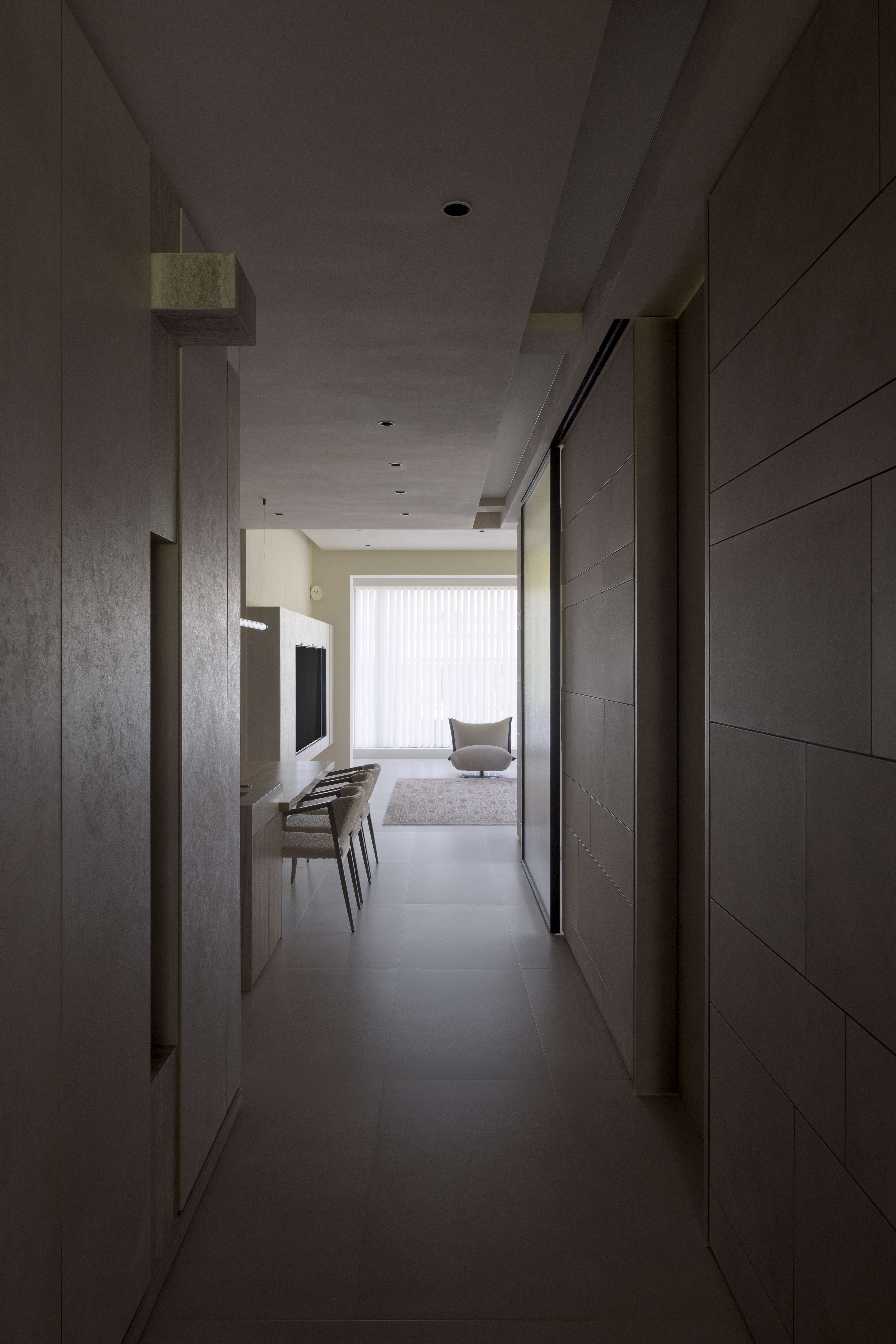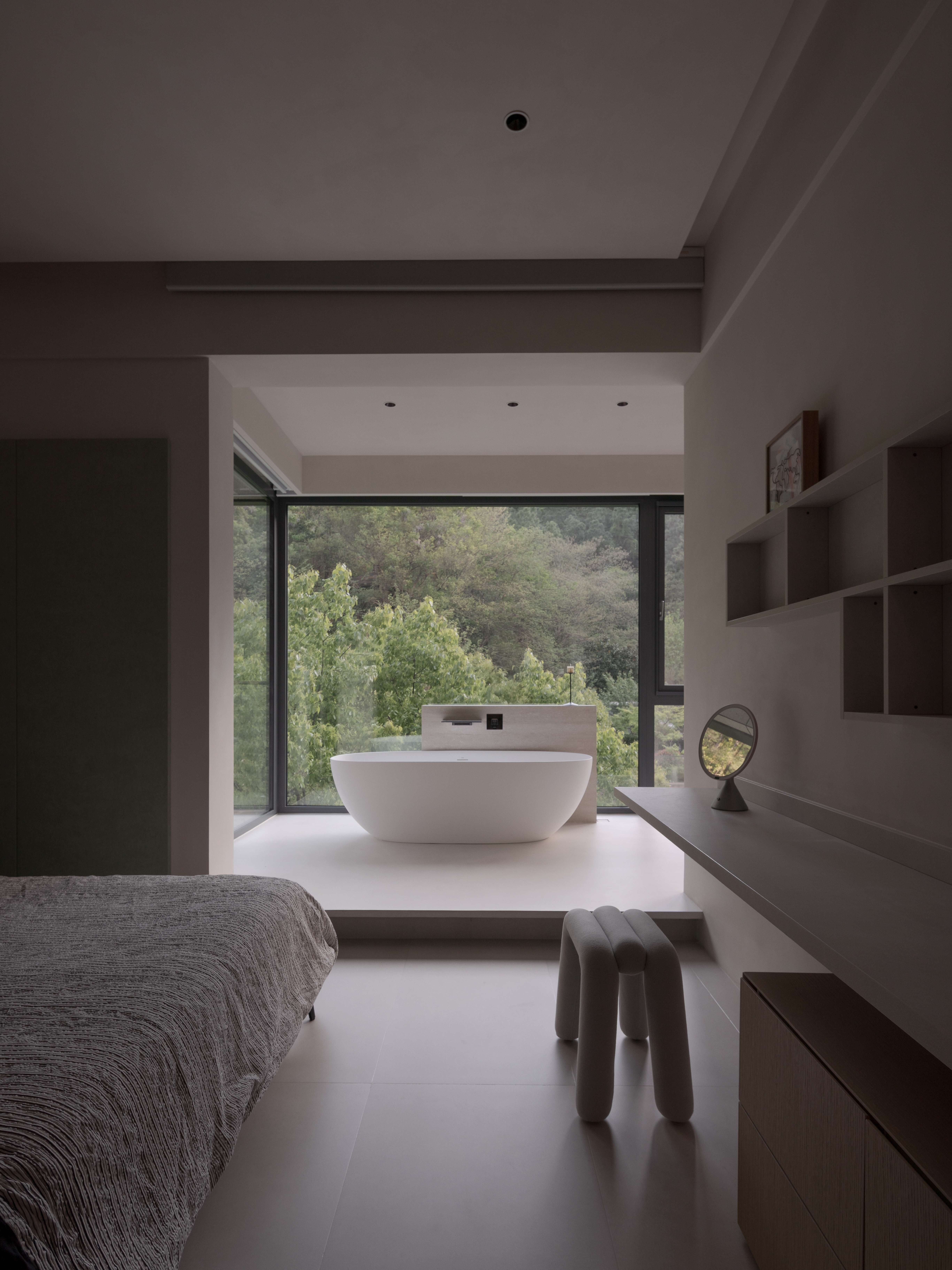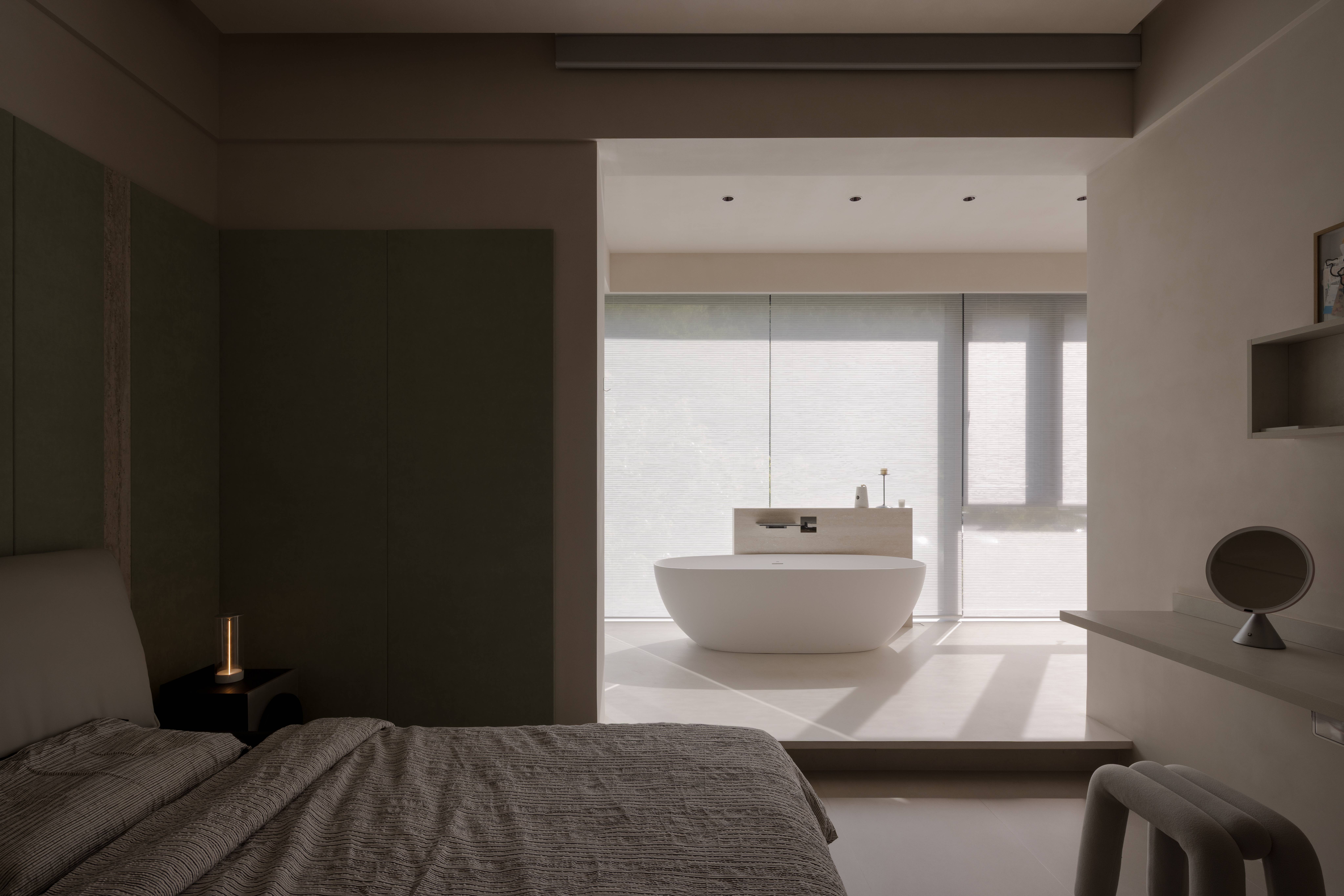 This design, grounded in earth tones, integrates nature into the space. The rustic hues and raw material textures harmonize like a mellifluous poem. The designer believes that “perception surpasses all,” framing the work as a tender experiment in sensory awakening that transforms dwelling into a poetic reconciliation with both the self and the world. 01 Earth Tones From the entrance, earth tones exude warmth, like land awakening at dawn. Wood veneer and micro-cement textures guide the senses toward awareness. 02 Circulating Flow Custom cabinets define a dual circulating flowing through the home like a stream. Daily movements become fluid, and natural interactions transform the house into a theater of life. 03 Light and Shadow Light gives the structure vitality. Preserved beams and ceiling gaps allow daylight to cascade in, creating a ritualistic atmosphere of return. 04 Restrained Elegance A unified palette builds layered aesthetics. Light and shadow act as brushstrokes, shaping rhythm and depth. Shifting daylight unveils restrained elegance. 05 Internal and External Symbiosis The master suite continues the dialogue of earth tones, with headboard and cabinetry forming an embracing haven. Bedroom, study, and balcony connect seamlessly, while the terrace bathtub opens to nature, turning bathing into a ritual across seasons. Here, perception evolves from awakening to symbiosis. The serenity indoors and the vitality outdoors achieve perfect harmony, offering a spiritual refuge within the city. The designer’s philosophy—“physically indoors, spiritually outdoors”—is fulfilled: the body rests in comfort while the soul revels in nature, composing an eternal ode to life.