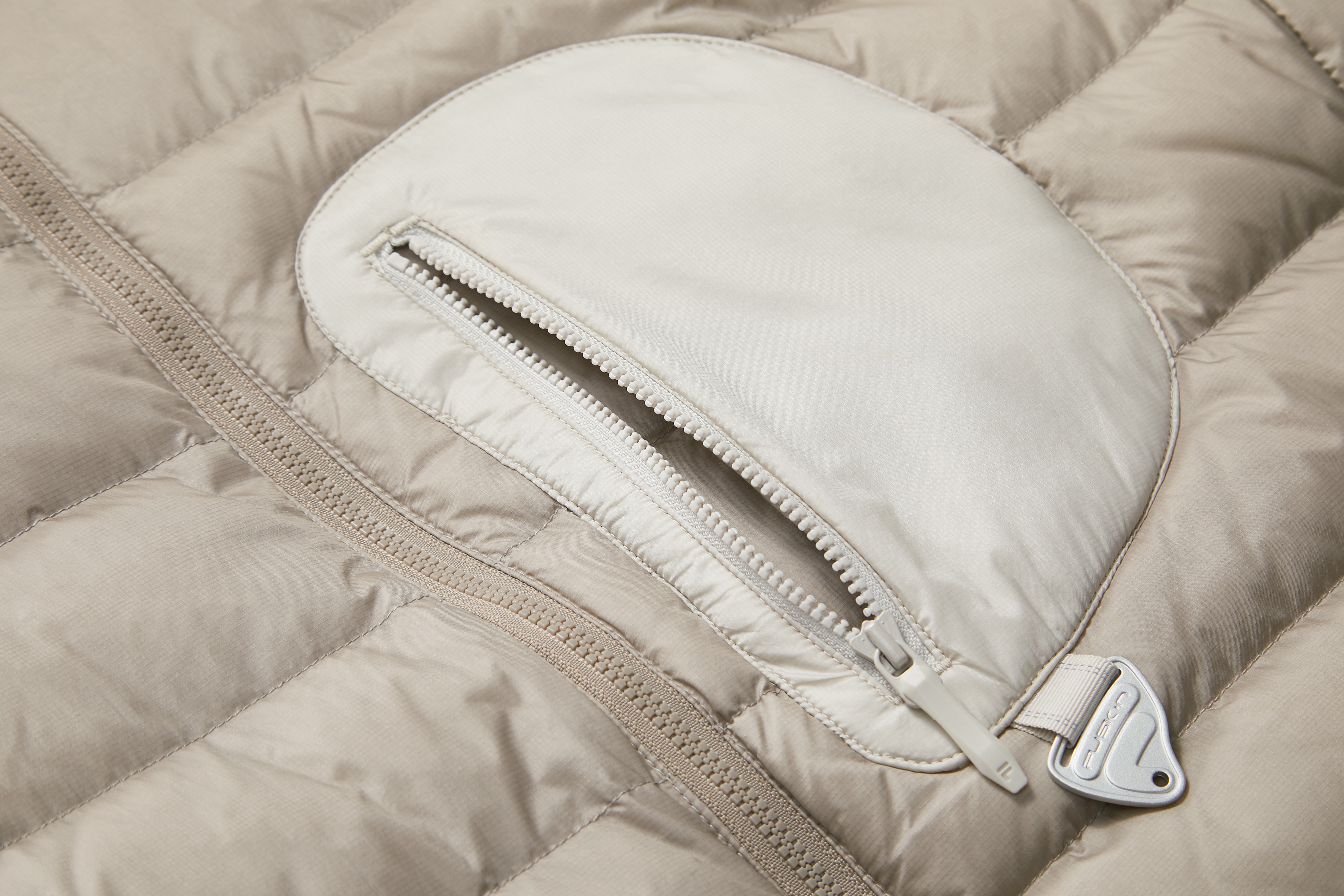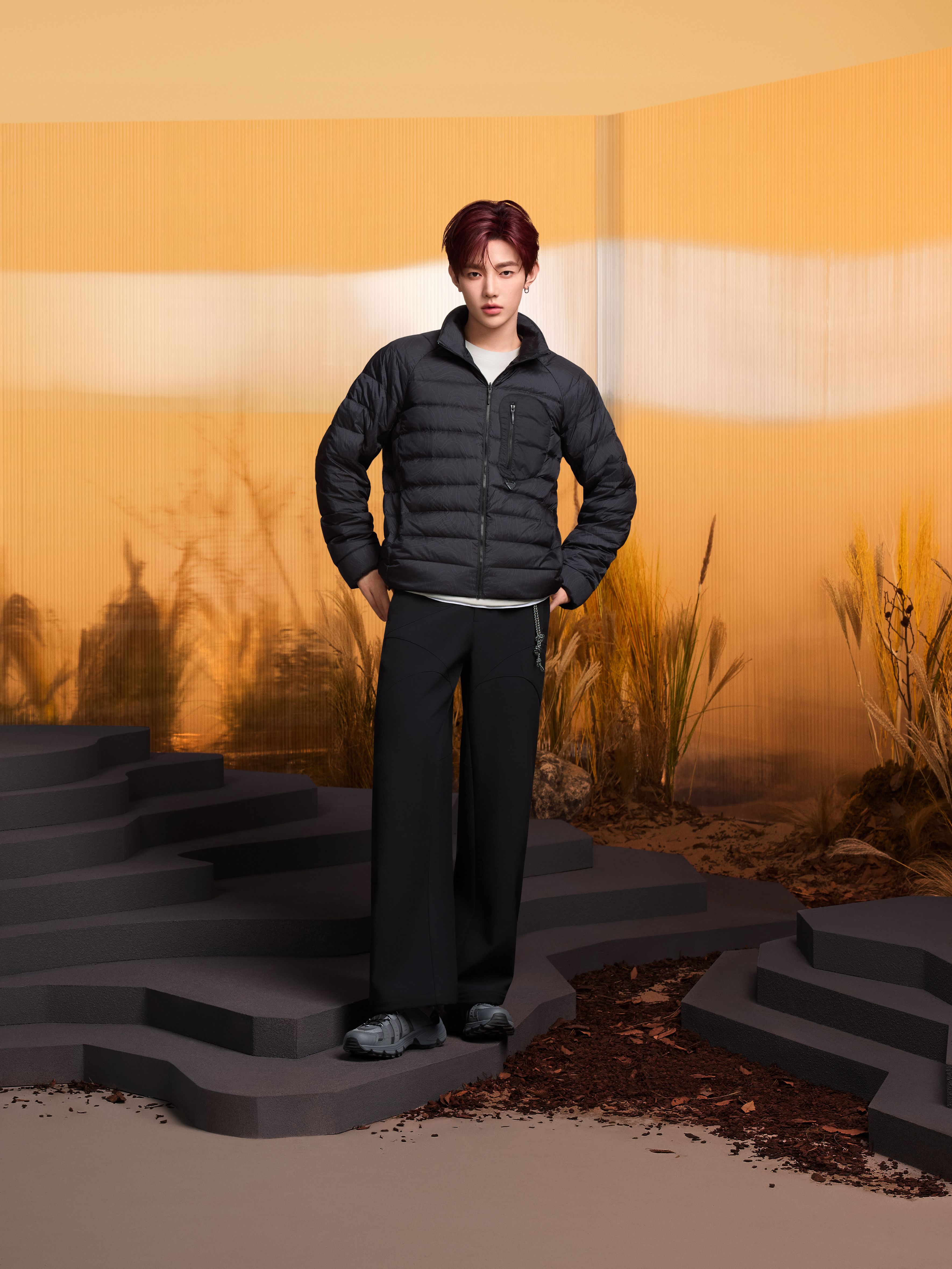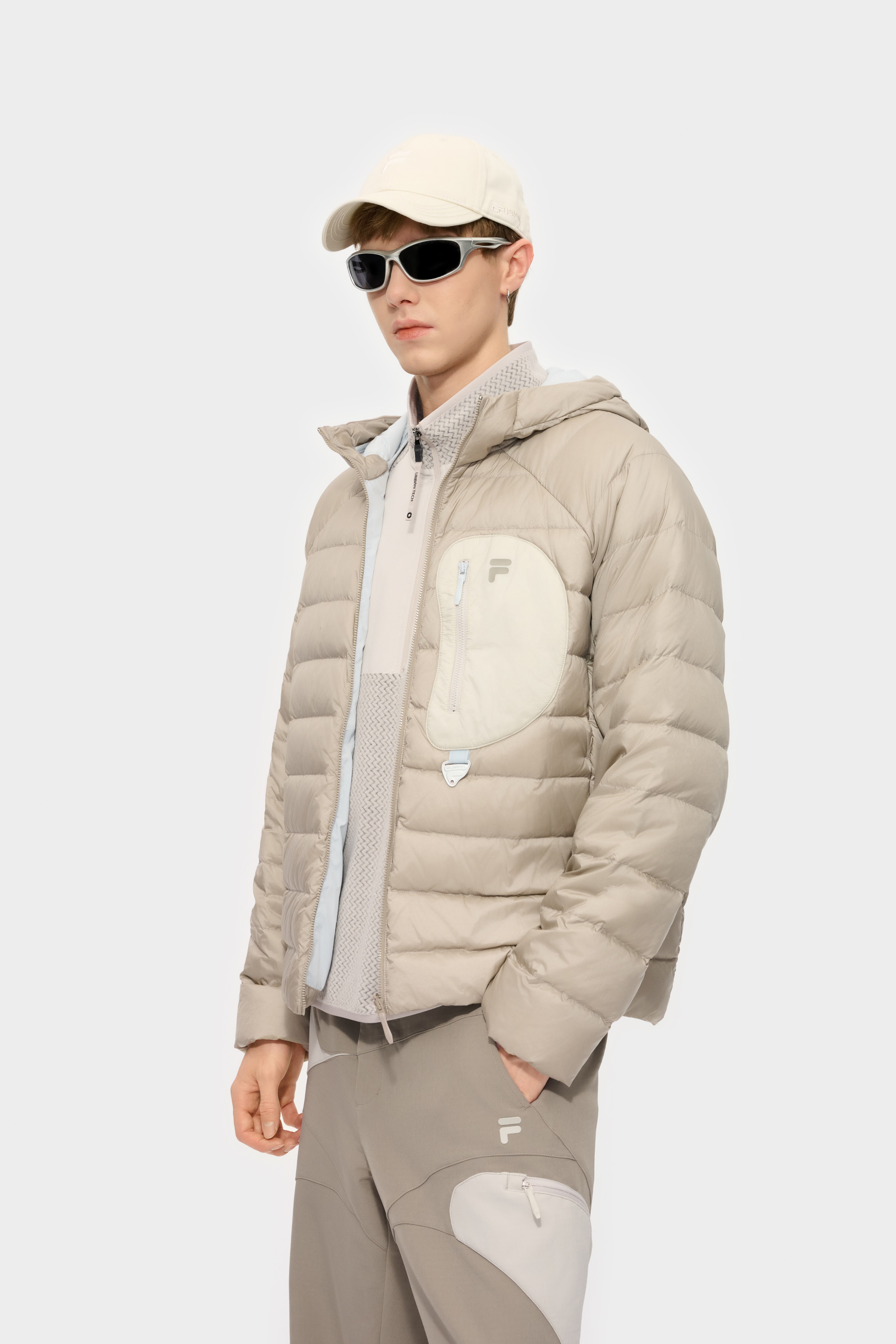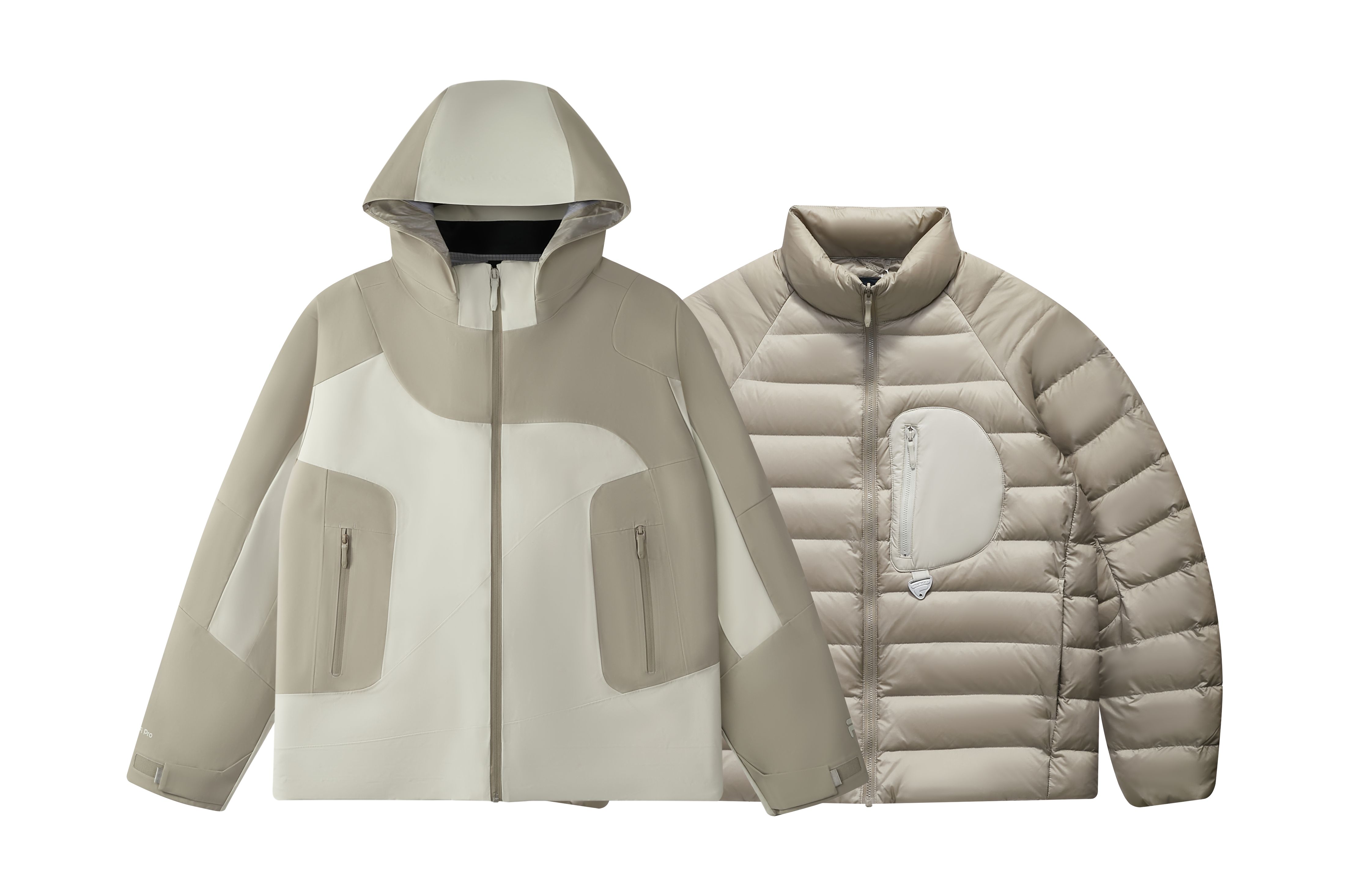 The Perfect Guard is designed to suit both city life and outdoor adventures. It meets the diverse needs of 18-35-year-old “micro-adventurers” across different scenarios, while cleverly incorporating elements inspired by nature to combine practical functionality with cultural symbolism. This series features a systematic three-in-one design. The detachable outer layer made from performance fabric with six protective functions and an inner RDS white duck down jacket allow users to wear them separately, layered, or mixed according to different occasions. It incorporates six protective functions—waterproof, stain-resistant, oil-repellent, windproof, tear-resistant, and abrasion-resistant—meeting the need for both city living and outdoor adventure. In everyday use, the water-, stain-, and oil-resistant properties make it easy to handle spills and dirt, enhancing practicality and convenience. In outdoor environments, its outstanding windproof, tear-resistant, and abrasion-resistant performance, along with reliable water pressure resistance, provides dependable protection against wind, frost, rain, and snow. The choice of materials subtly expresses the tension between urban and natural environments. The CORDURA® transparent diamond-patterned PU coating provides high abrasion resistance, symbolizing the solidity of city infrastructure, while the lightweight and soft 20D nylon micro-grid offers an airy feel. Metaphorical structural details add a unique touch: the drawcords evoke “forked paths,” symbolizing multiple routes of exploration, and the integrated stand-up collar with hood mirrors the layered outlines of city skylines and mountain ridges. The 3D quilted down forms embossed patterns reminiscent of contour lines, seamlessly blending geographic landscapes with the jacket’s shape. Adhering to sustainability principles, the three-in-one design reduces consumption frequency and resource waste, extending the jacket’s lifecycle. The single-material detachable structure uses hot-melt adhesive instead of traditional stitching, facilitating recycling and reuse at the end of the product’s life.