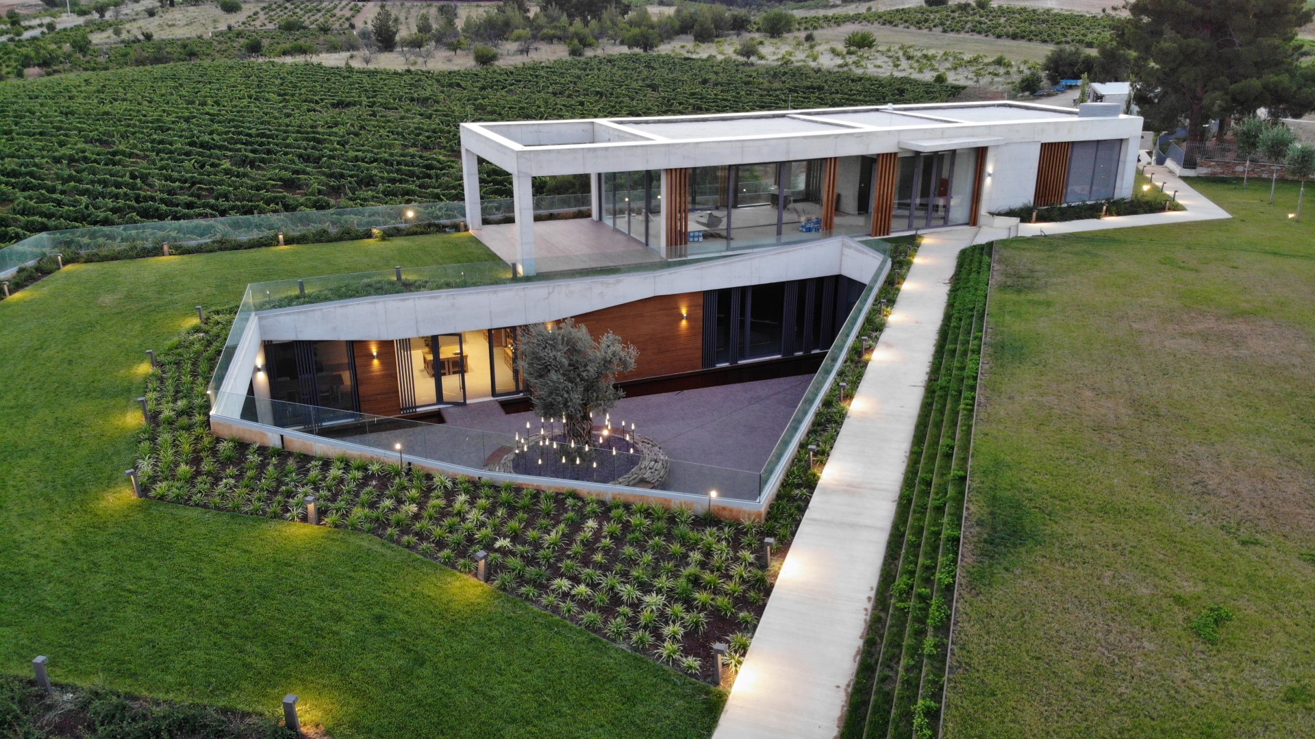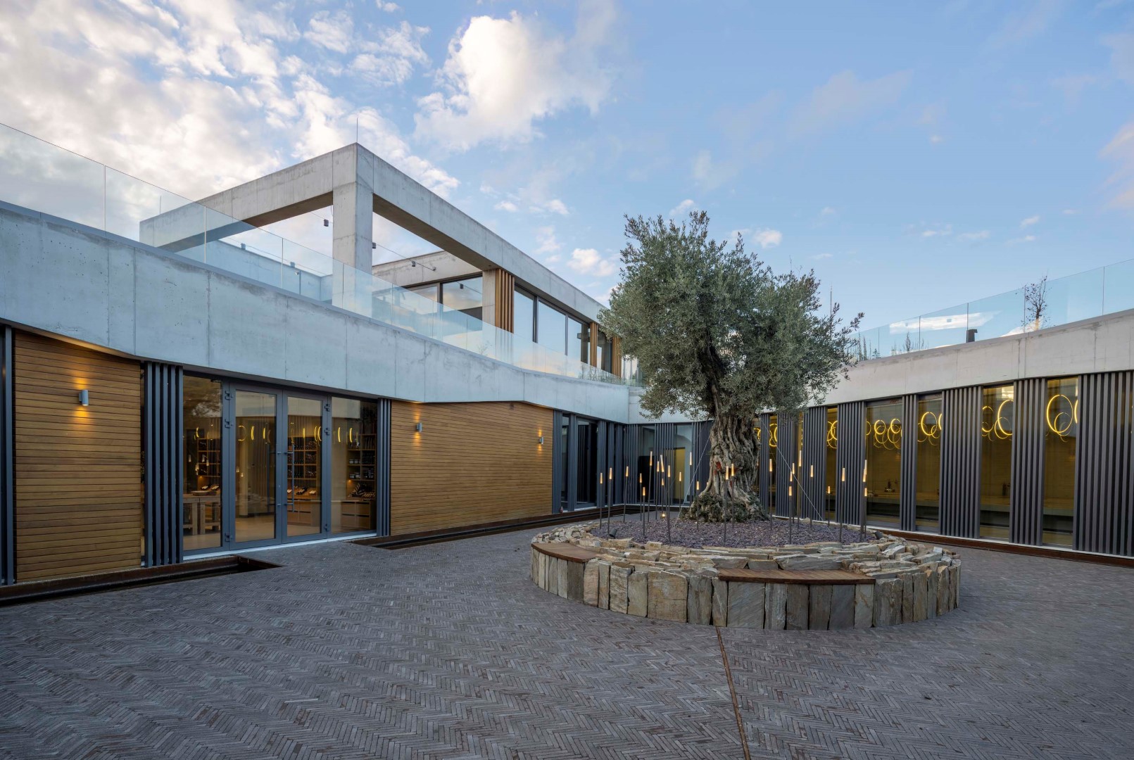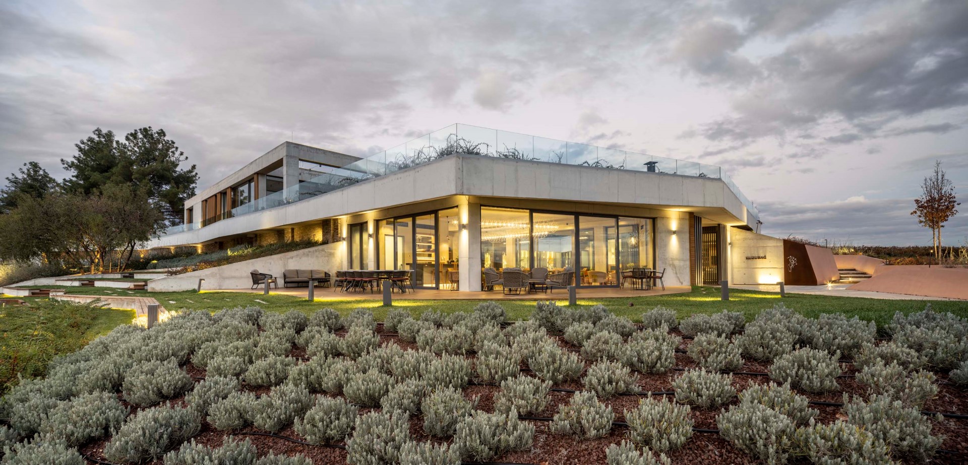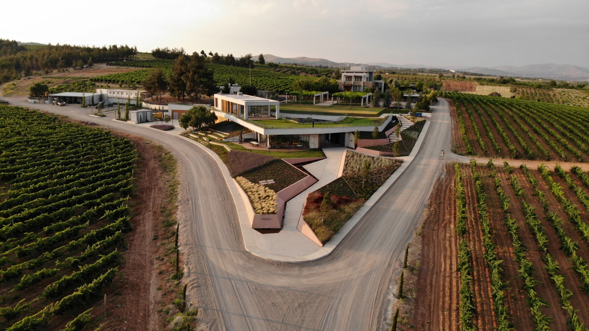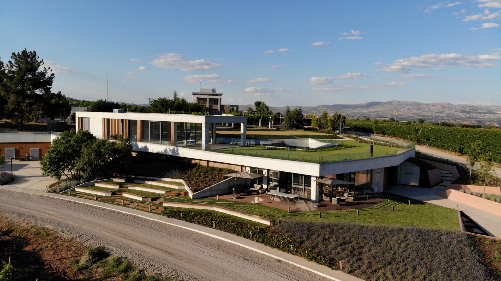 Around 40% of Turkey's wine production is sourced from Denizli’s Çal Region. Kuzubağ Wine Facility is the strongest candidate to be the leader of the Çal Winery Route with its exclusive location and exquisite wines. The project's main motivation comes from the extraordinary landscape in between the geomorphologies and the surrounding textures. Our landscaping project has crowned Kuzubağ's architecture and the unique geomorphologic properties of the region. Visitors are guided to the entrance from Vineyard Road – Cypress. A tectonic topography was created between the entrance, courtyard, amphitheater, and the terrace with the help of the landscape elements. Along the pathway, where the plants of the region are located, textures, colors, and smells give visitors an indigenous experience. The use of soil, concrete, and soil colors resulting from treatment in concrete; this pattern is matched with indigenous occlusive elements, and the latter rise to the upper part of the building, thus, creating its path, view, and activity areas. It also allows us to see all the connectivity involved in the pattern. The sense of “belonging” can be felt over the site and the building with the help of the landscaping, which became one with its surrounding. It influences the building and blends in with the context, not drawing unnecessary attention to itself. The upper elevation of the facility can be reached by following the water element as a representation of the irrigation system in the vineyards and circulates the courtyard. Courtyard's material selection and the olive tree in the middle are a manifestation of the user returning to earth with a reflection of light, and a single tree is a very special ground texture. In addition to the use of local materials, the whole composition links the building to the characteristic of Çal’s geomorphology.