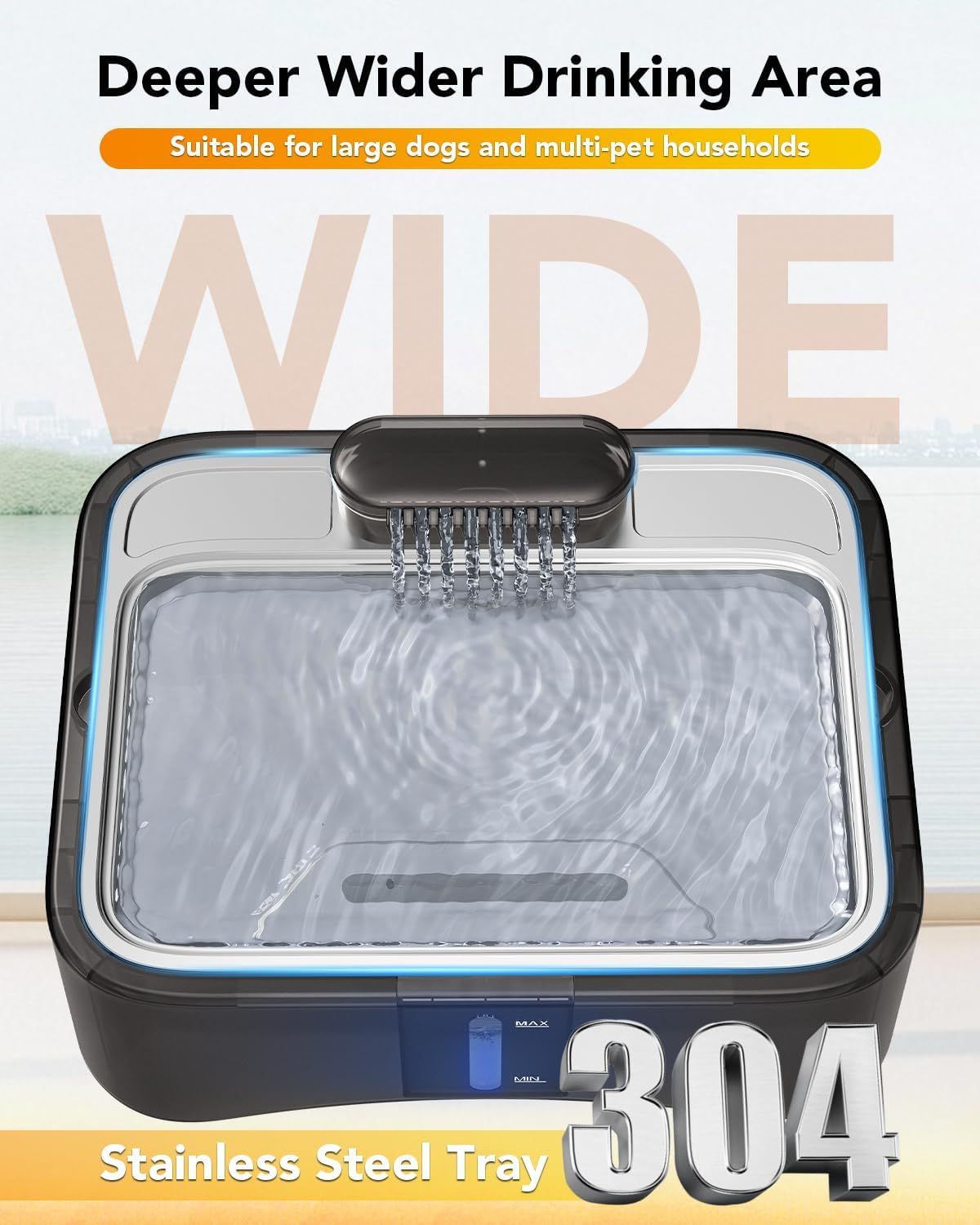 This pet water fountain transforms hydration with an innovative combination of adjustable heights and constant water circulation, providing a healthier, more comfortable drinking experience for different pet sizes and life stages. After extensive research into pet hydration, a critical flaw was discovered in traditional fountains: their one-size-fits-all height simply doesn’t work for pets of all sizes and ages. Puppies and small breeds are forced to stoop uncomfortably, while larger and older dogs must repeatedly lower their heads and strain their necks with every sip. This not only compromises comfort but also leads to long-term joint and cervical issues. The solution draws inspiration from an unexpected source: the ergonomics of height-adjustable desks. This innovative approach creates an elevated fountain for true pet comfort. With four adjustable height settings from 5.9 to 14.4 inches, this product effortlessly caters to the perfect drinking posture for every pet—from puppies to seniors, and from small to large breeds—effectively promoting better spinal and joint health. Beyond comfort and health, the 8.5-liter large-capacity tank easily keeps up with the demands of multi-pet homes or large breeds, which means fewer refills and more convenience in daily life. Every detail is designed for a worry-free experience. The multi-layer filtration system incorporates non-woven fabric, activated carbon, and ion-exchange resin to effectively remove pet hair, odors, and heavy metals, keeping water clean, fresh, and safe. The ultra-quiet pump operates below 25dB, so it won’t disturb your pet’s nap or your quiet moments at home. The 304 stainless steel water tray is built to last and easy to clean, with a wide opening that prevents splashing when pets drink eagerly, helping to keep your floors dry and mess-free. And when it’s time to tuck it away, the foldable telescopic legs collapse neatly, making storage simple and space-efficient.