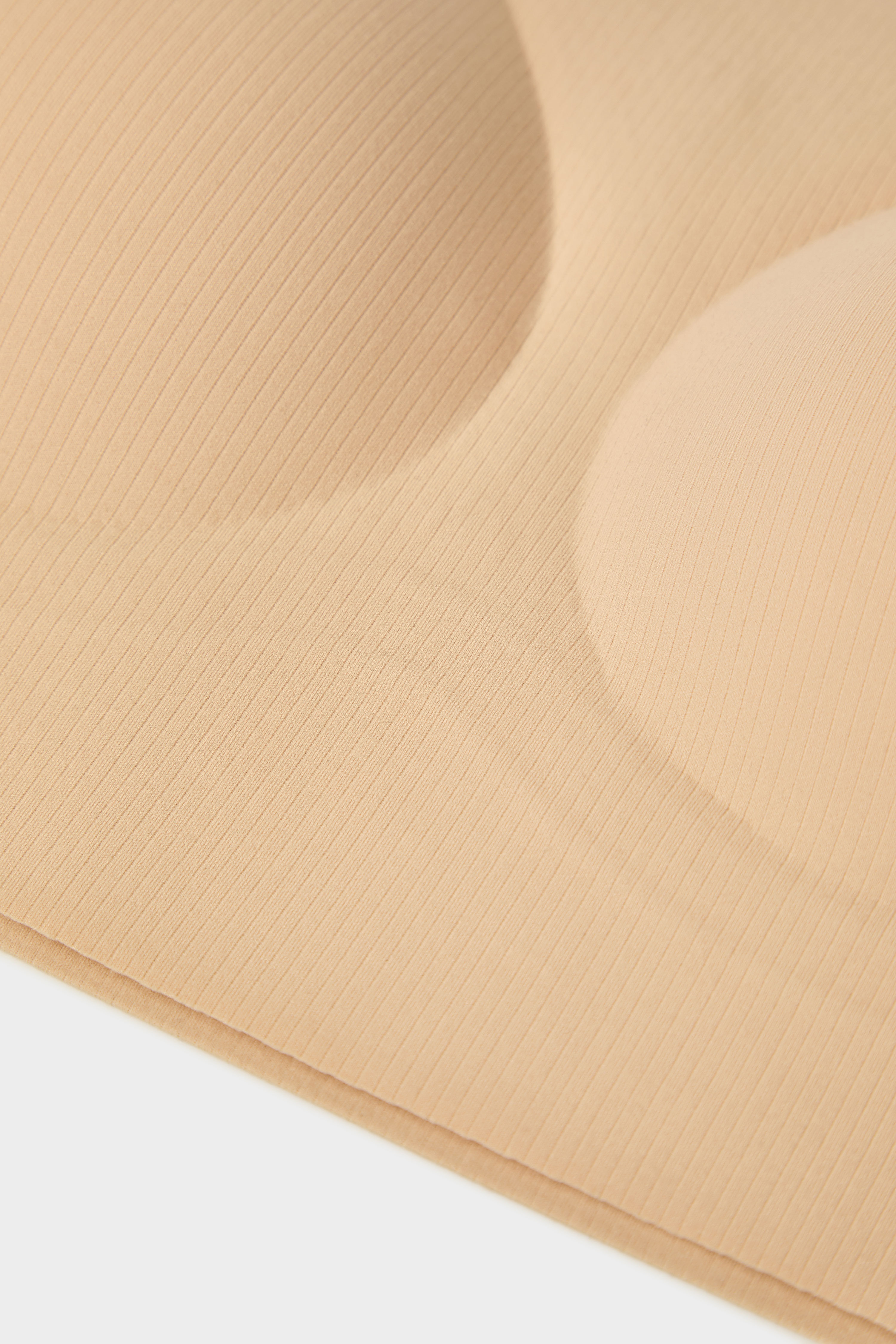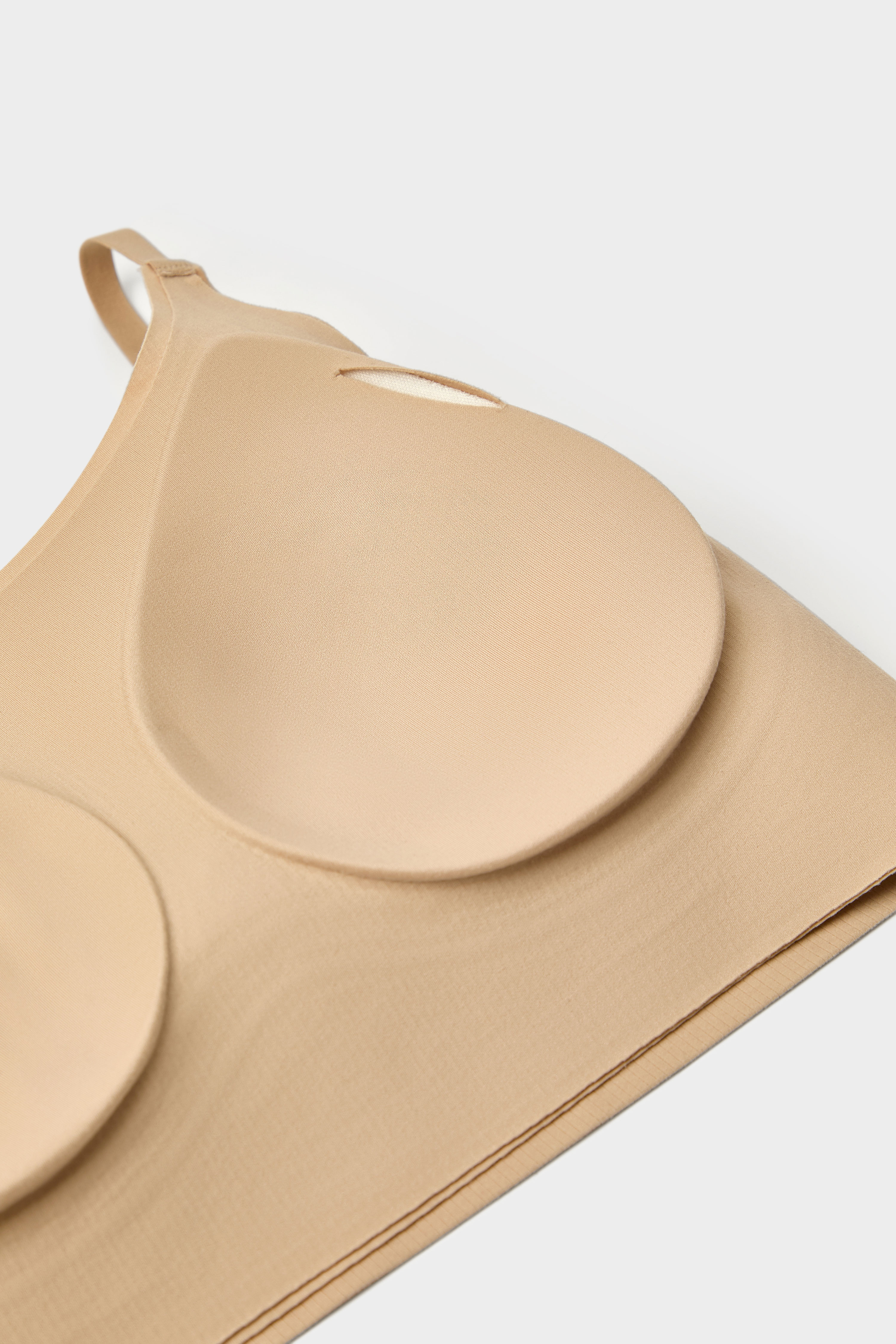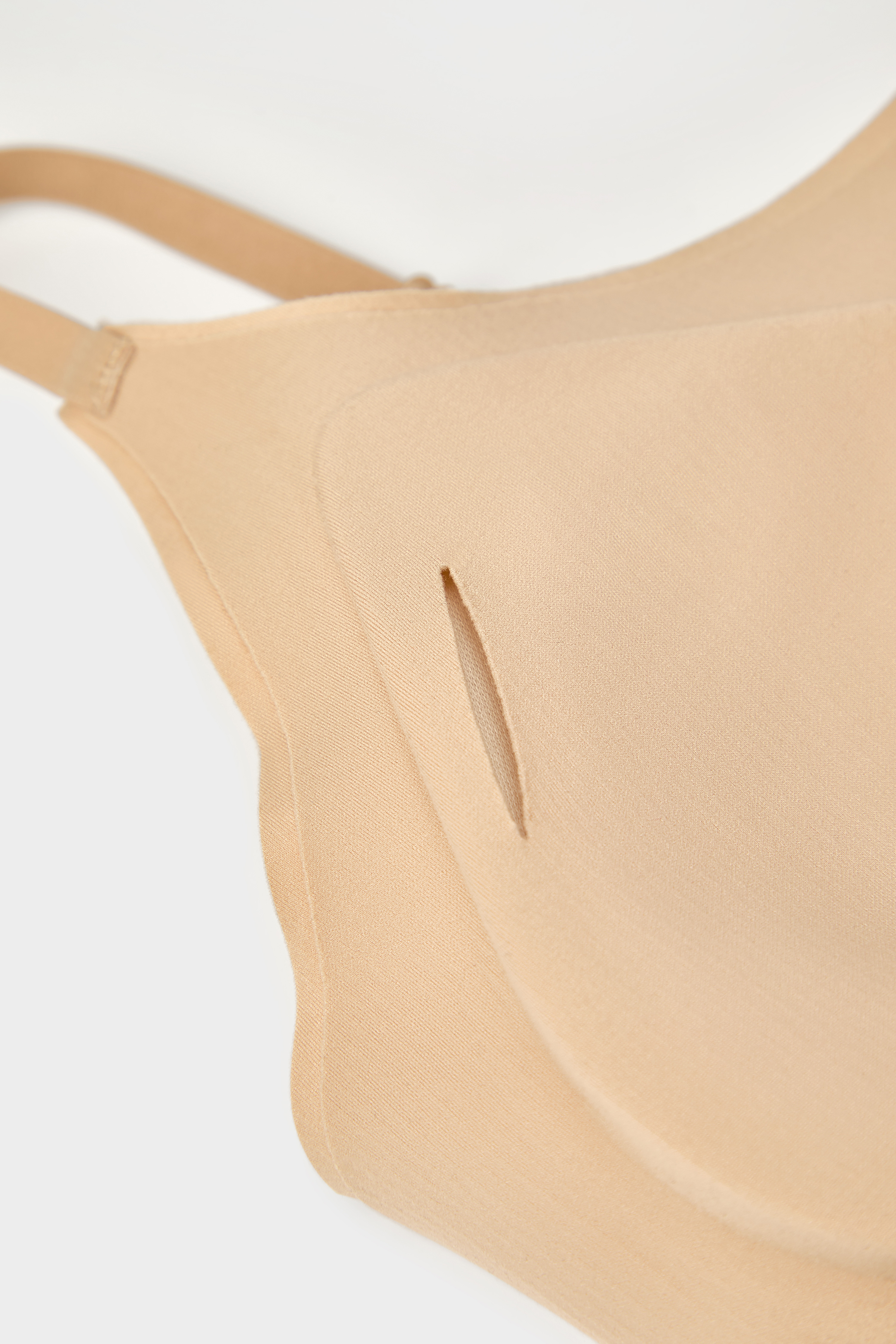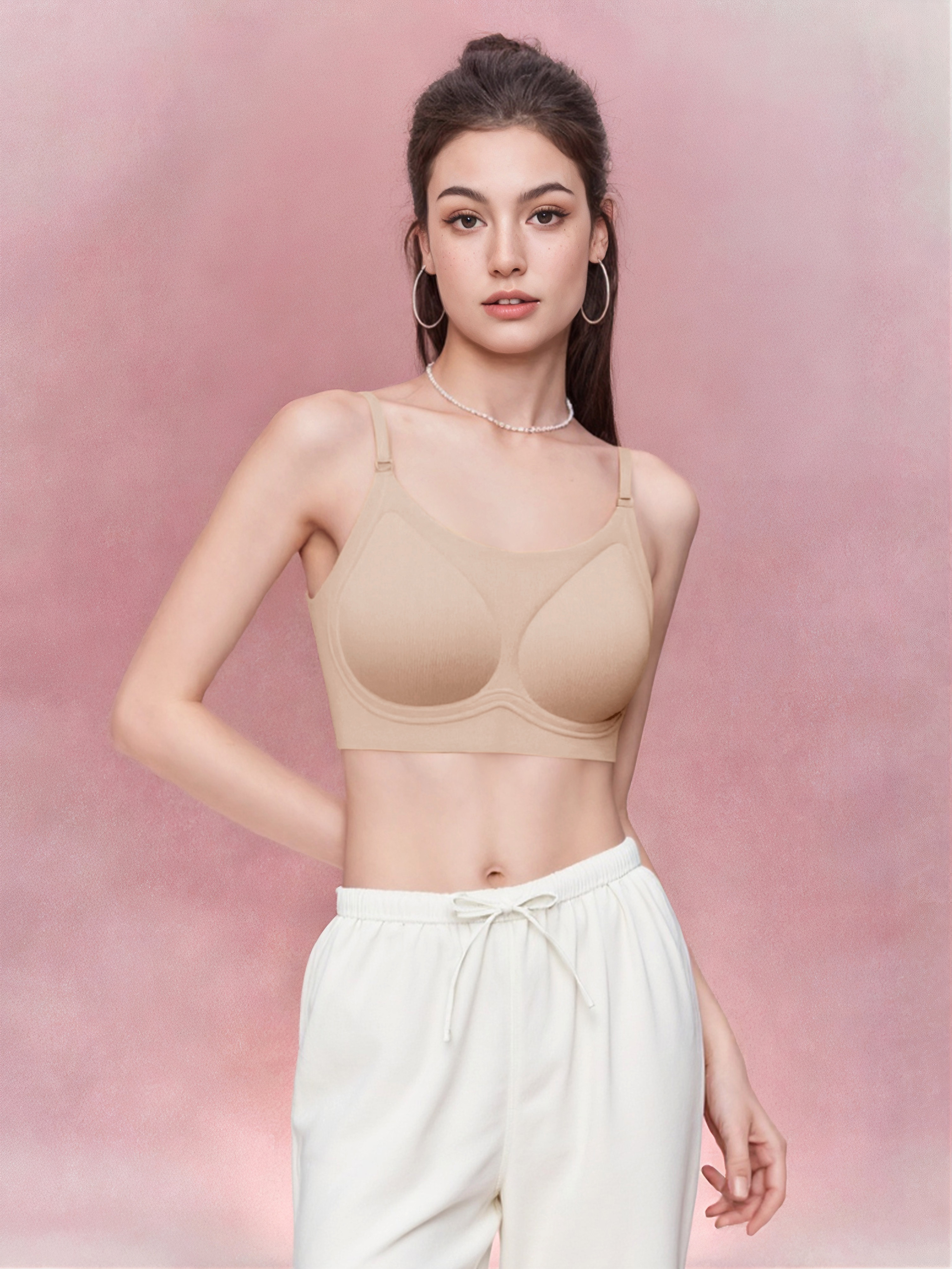 With an innovative thermal fabric and scientifically engineered support structures, the JIANDANPAI thermal bra is designed to provide women with warm, comfortable, and non-restrictive bra-wearing experience during cold winter days. Drawing on the dense structure and heat-retention mechanism of cat fur, the design team developed a biomimetic “cat-fur” fabric. Its fine, air-trapping surface significantly enhances thermal insulation while delivering an exceptionally soft, skin-friendly handfeel, reminiscent of stroking a cat’s belly. Using a high-density, fluffy knitting technique, the fabric forms a stable air-trapping thermal layer that effectively blocks cold air, providing lasting warmth in chilly environments. Meanwhile, it remains lightweight and breathable, preventing sweat buildup and achieving a perfect balance of warmth and comfort. Structurally, the bra features a dual W-shaped adaptive soft support structure with a three-point scientific force distribution design, providing stable support while preventing shifting even during intense movement. Key areas—including the bust, side wings, and underband—are reinforced with full-area gluing, while the raised side wings dynamically conform to the breast, smoothing out the side bulge and preventing rolling or shifting. The molded cups are designed based on breast shape data from millions of Chinese women, creating a push-up structure that is thinner on top and thicker at the bottom, naturally fitting the bust while shaping a rounded, full breast shape. The bra uses a micro-compression seamless technology to eliminate seam friction against the skin. Its specially formulated nude tone blends with your natural complexion, making it discreet and virtually invisible under clothing. The ultra-thin, one-piece molded design reduces thickness by over 50% compared to conventional thermal bras, delivering a snug, seamless fit that visually slims and lightens the figure. The F size accommodates individuals weighing 40-70 kg, suitable for a wide range of body shapes and sizes.