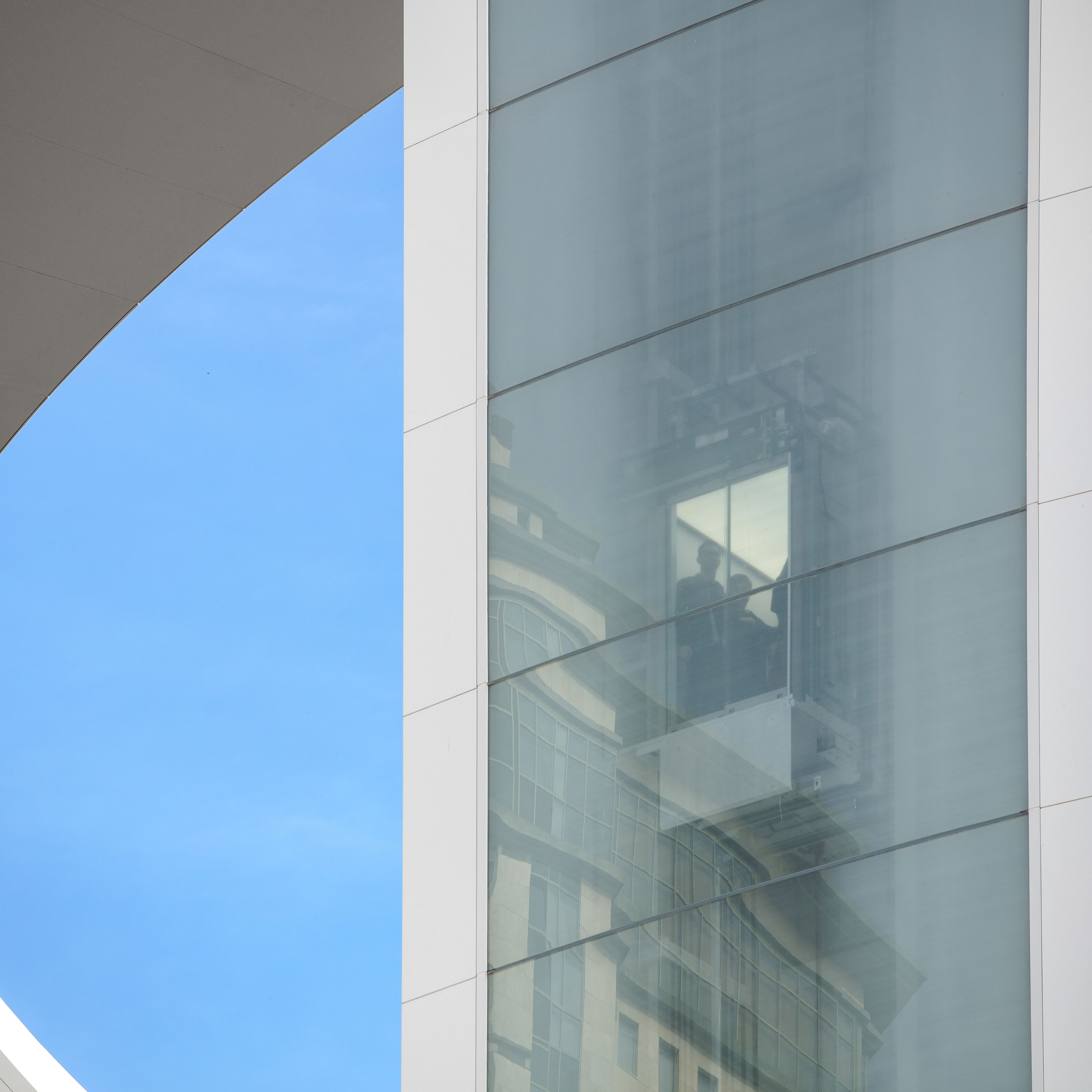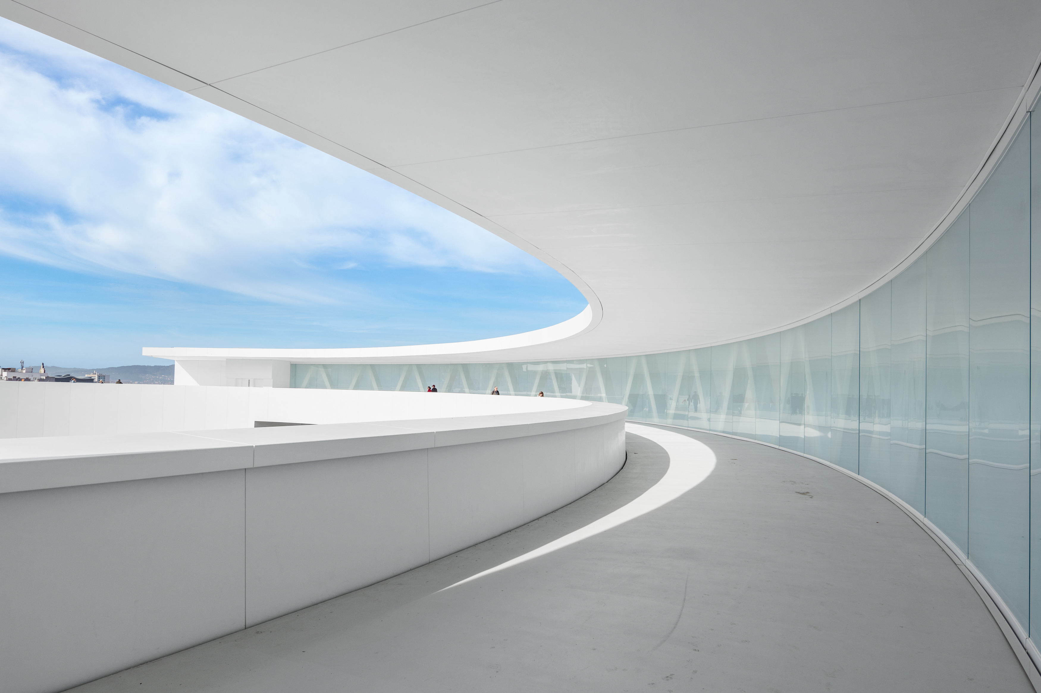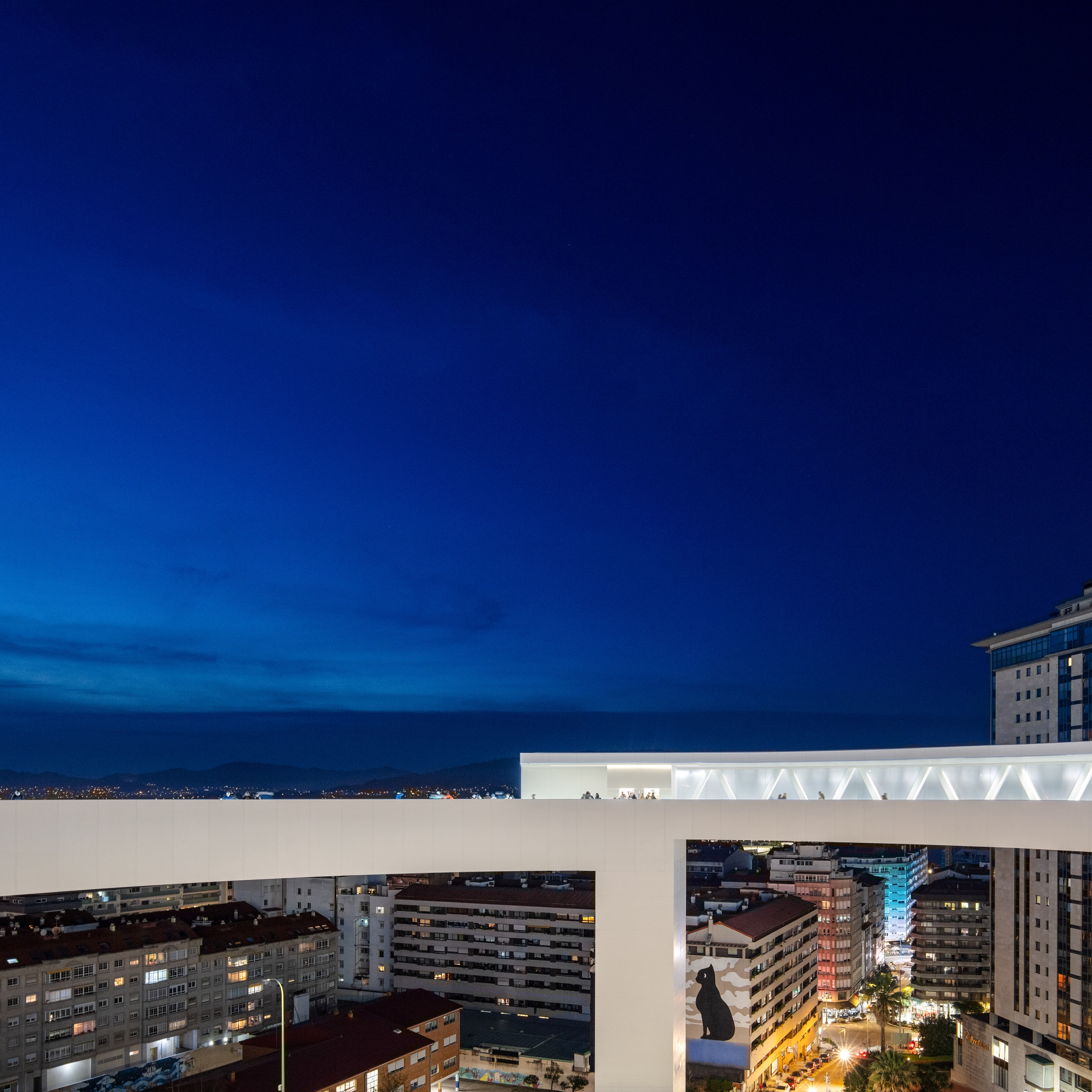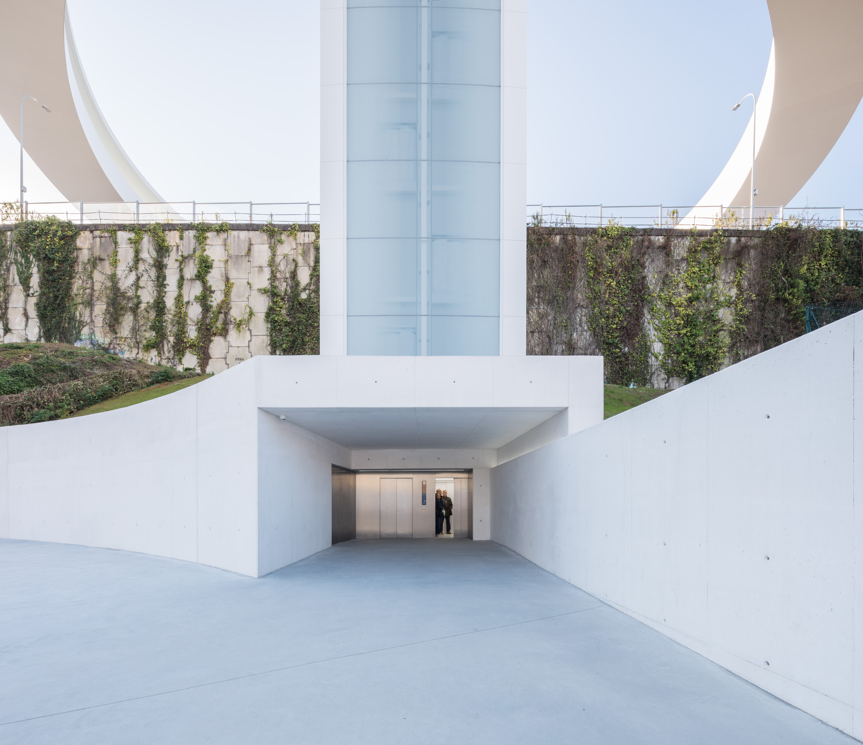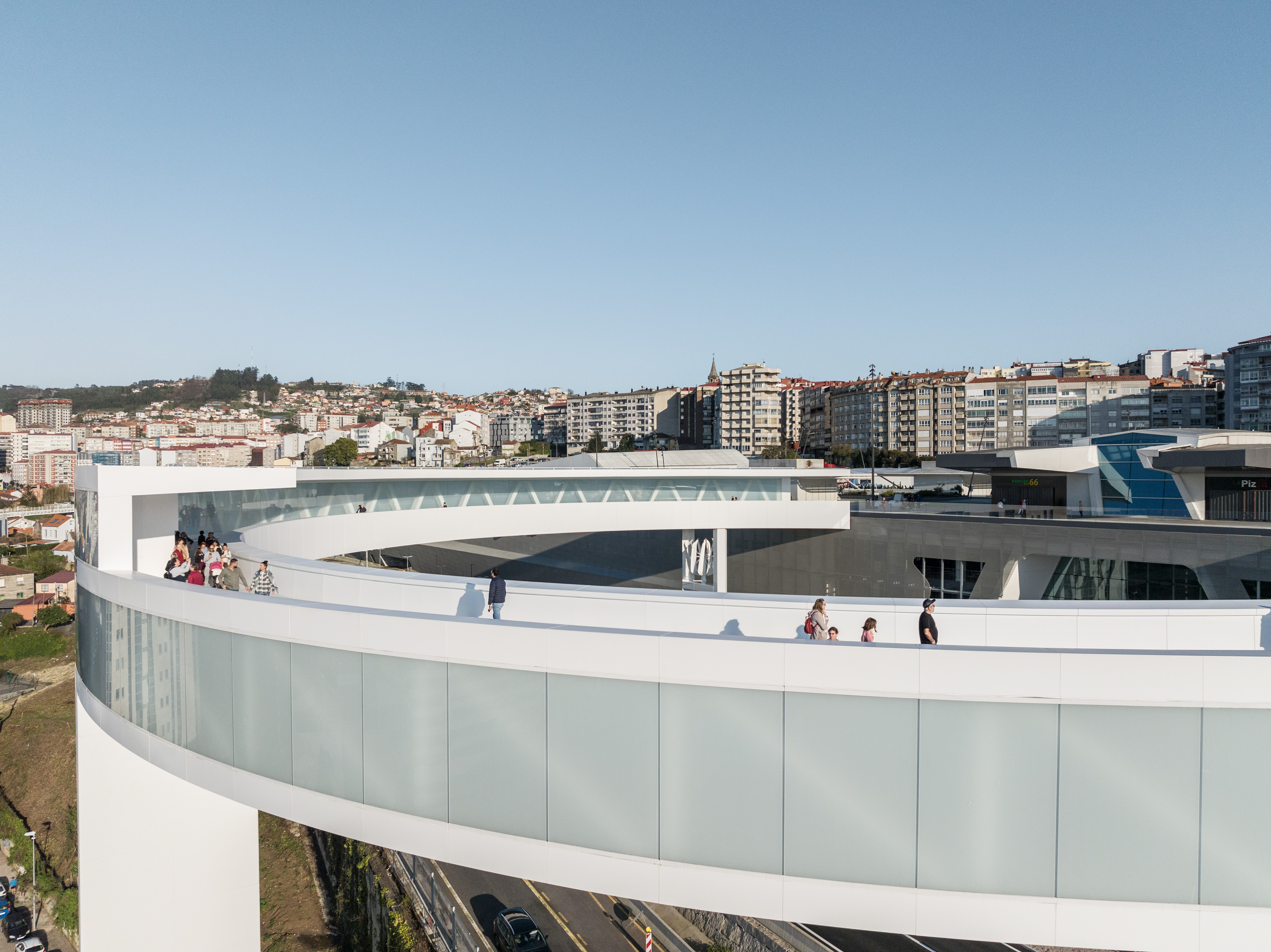 HALO was born as the result of many slopes, hills and level differences of Vigo. Multiple solutions for vertical connectivity and mobility have been developed for the city as part of the Vertical Vigo connectivity programme. Halo, the largest and most ambitious of these solutions, aims to solve a vertical level difference of over 40m between the lower and upper parts of the city. The new structure will connect neighbourhoods as well as provide access to the public square located on the rooftop of the intermodal high-speed railway train, that includes bus station, car parking and a shopping mall. The footbridge crosses over the highway, the main access point to the city, over a horizontal separation above 70m in length. The main elements of the Halo structure are an elevator shaft tower and a footbridge with a diameter of 84 meters. The tower stands on the top of Serafin Avendaño Street, pointing the street's axis and attracting the attention of the citizens in the maritime port area. The tower, with approximately 6 x 6 meters, to host two elevators, each with a capacity of 17 people. At the top of the tower, pedestrian access to Thom Mayne’s intermodal station is divided into two arches, forming the ring. Each arch is supported on either side of the glass volume of the panoramic central atrium, emerging from the Morphosis building. The northern promenade is covered and protected along its entire outer face, providing comfort throughout the year. It is less transparent and less panoramic; its milky translucent glass surface ensures privacy for residences along Calle García Barbón. In contrast, the western arch is an open-air walkway offering panoramic views of the city and ocean, making it especially appealing to tourists.
