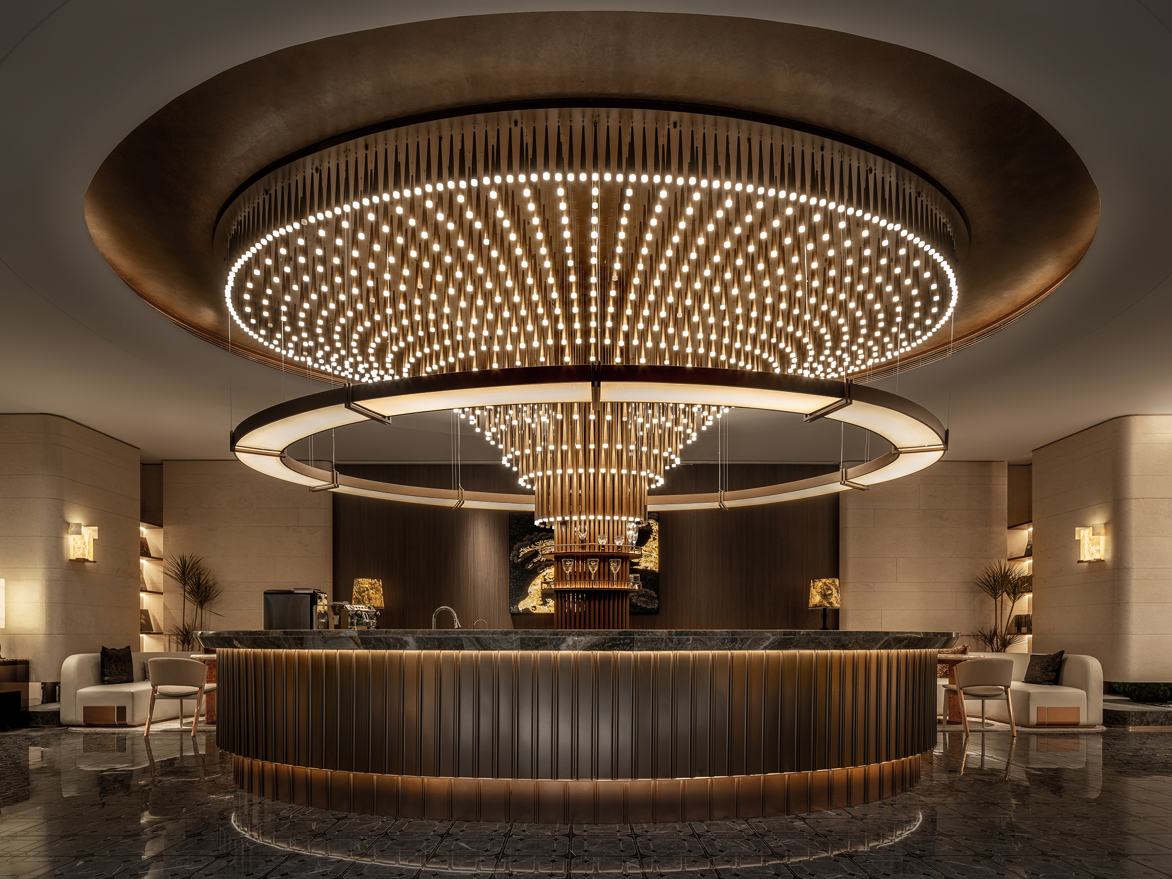 Reshaping a new paradigm for international urban cultural centers, The Eminence Land clubhouse in Beijing’s Fengtai district merges Oriental luxury brushwork with contemporary design. Rooted in the historical depth of the capital’s central axis, the project balances the city’s traditional cultural genes with its evolving urban spirit. PSQUARED² leads the interior design, abandoning conventional zoning and instead weaving a flowing spatial narrative that integrates business, leisure, culture, and wellness. The design concept centers on cultural empowerment, scene symbiosis, and natural infiltration. Drawing inspiration from Beijing’s heritage, elements such as the pavilion rooflines of the Forbidden City and the geometric rhythms of the Temple of Heaven are abstracted into modern artistic language, forming subtle cultural symbols that enrich the spatial experience. A restrained palette of wood, stone, glass, and warm light creates layered atmospheres that harmonize with light and shadow. Highlights include a lobby with laminated glass recalling jade fans and screens, a circular hall centered on an amber sculpture under a dome embedded with constellations, and multifunctional areas where community, family, and business needs converge. Spaces for tea, negotiation, reading, parent-child interaction, and fitness are fluidly connected, supporting both collective engagement and individual retreat. Natural greenery and open French windows blur the boundary between indoors and outdoors, creating an immersive environment. The project responds to contemporary aspirations that move beyond material accumulation toward cultural depth and spiritual fulfillment. By bridging tradition and modernity, dissolving generational divides, and cultivating both function and meaning, The Eminence Land establishes itself as a cultural landmark. It reflects humanistic care, international perspective, and Oriental aesthetics, offering the tower-top community a paradigm of refined, poetic living within Beijing’s historic and ecological foundation.