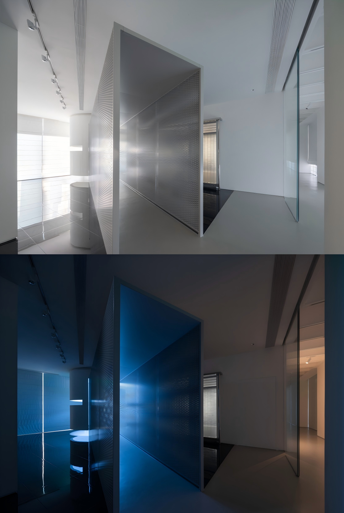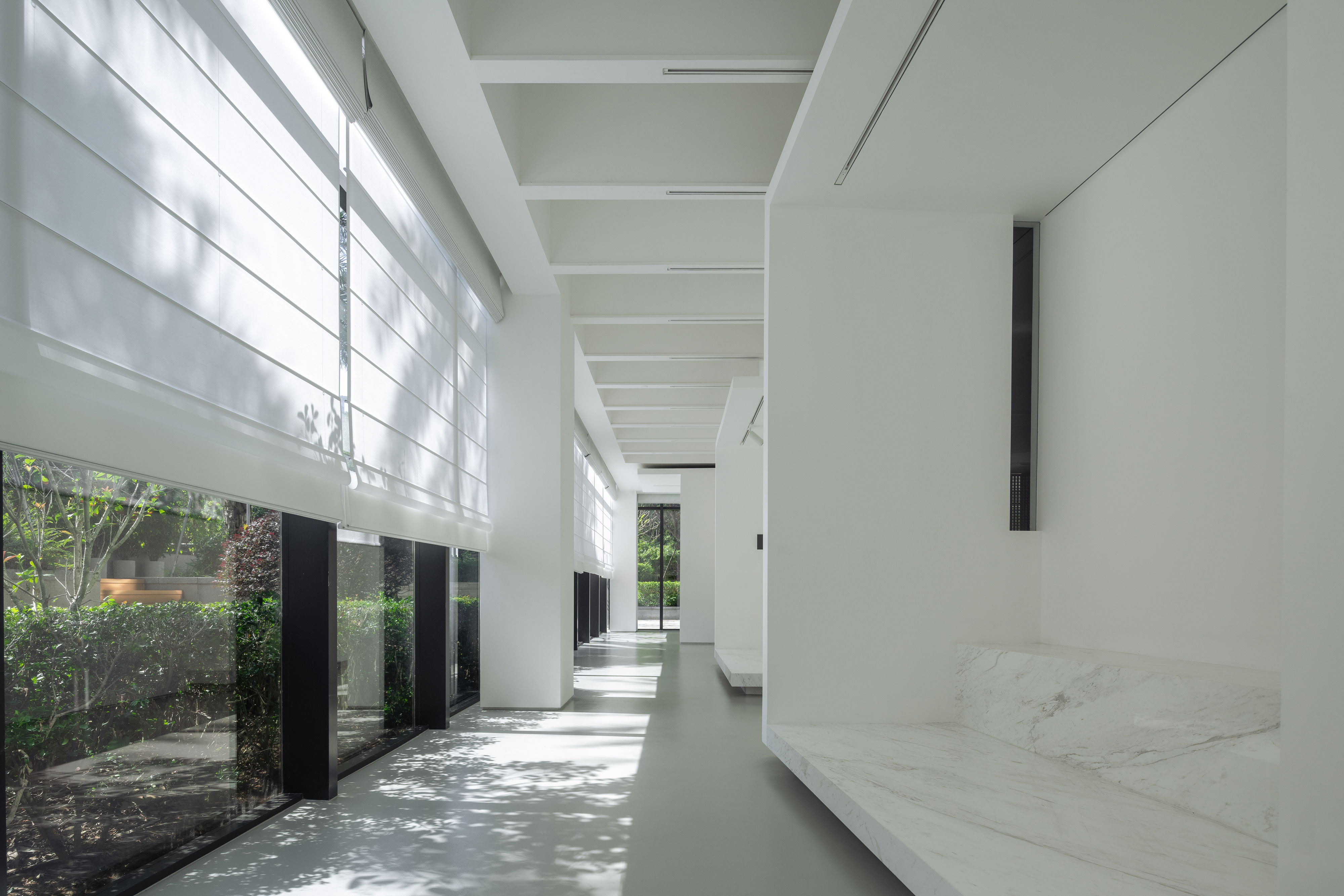 This space was originally a gym and was transformed into a community art space during an economic downturn. Amid the saturated fitness sector, what will the future urban and cultural life of Shenzhen residents be? This mission-oriented thinking gave the project exploratory value. Concept: The Inner Nature—An Insight from Outward to Inward Learning from nature begins with truly seeing it. The nature expressed here is perceived through the heart. The first dimension is seeing oneself—in the open outer corridor, time leaves fleeting impressions, and the passage becomes the exhibition. The second is seeing one’s heart—the enclosed interior glows like the heart’s chamber, inviting stillness. This narrative—from outside to within—creates contrasts of light and shadow, reflecting nature’s duality and offering each visitor a unique experience. Generative Spatial Design Strategy 01-Break the Routine The space has no front desk but offers installations of light and shadow. Two turns remind us to change perspectives—first to purity, then into the hall where time flows like a painting. 02-Step Back The recessed area becomes an external exhibition path. Strolling through, visitors feel light flow freely, returning nature to itself. 03-Transition Folding transforms straight lines into progression and rhythm. As you walk slowly, you notice accidental light—understanding that everything is a landscape and time is precious. 04-Slow Down Stillness breeds wisdom. Slowing the body harmonizes the mind, awakening inner awareness. 05-Light Leaks Cracks are where light enters—life’s fractures become understanding that brings illumination. 06-Heart The “mystery box” is a multifunctional hall—blind yet perceptive. Closing one’s eyes enhances inner strength. The axis ends in the “heart,” symbolizing harmony and the unity of body and mind.